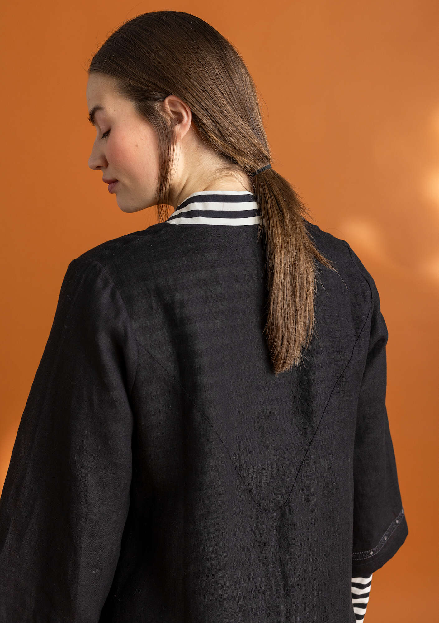 • 100% linen. The linen is dew-retted, a natural, eco-friendly process in which the sun and dew handle the work without chemicals and with minimal water use. The entire production chain is certified to be environmentally friendly. Machine wash warm, delicate cycle. Medium iron. Shrinkage 2-3%. Made in Kundli, India.