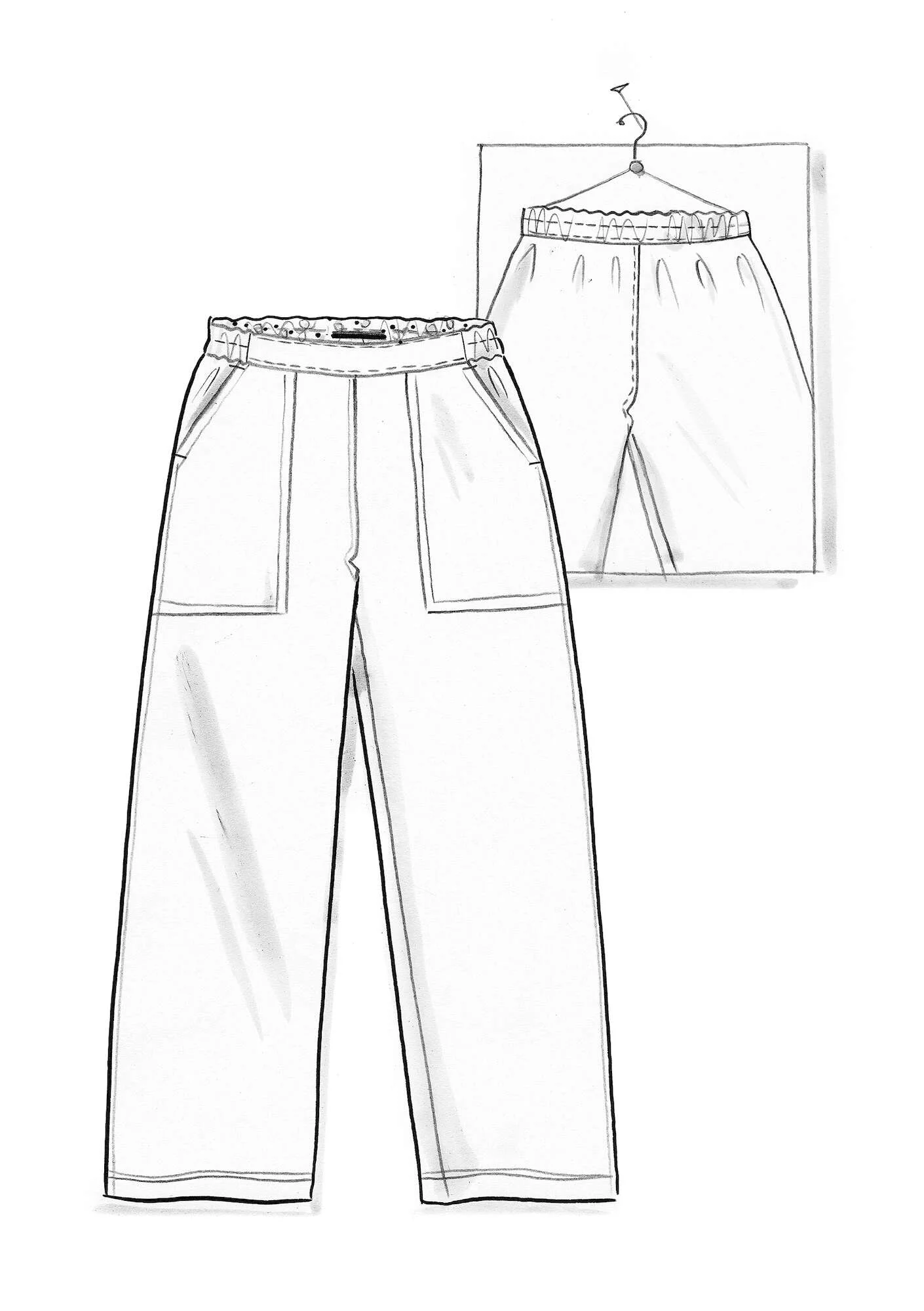 - Full-length trousers with handy pockets. Neat triple needle stitching on the side seams. Bar tacks on the pocket add accent colour. Comfortable elastication at the back and printed detailing inside the waistband.