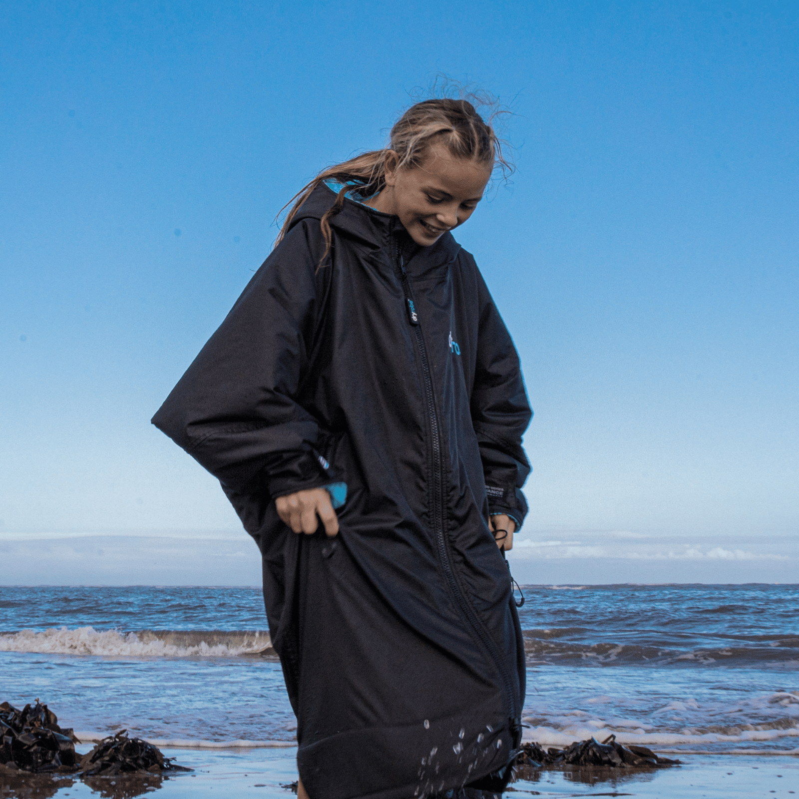 The original weatherproof changing robe, dryrobe® Advance is designed to let your kids get active outdoors, whatever the weather. Its iconic design combines a durable waterproof outer with a super-warm inner that will protect your child from the elements, whilst giving them enough space to change in and out of a wetsuit, swimwear or sports kit. The unique quick-drying fleece lining allows the dryrobe® Advance to be used multiple times throughout the day, over wet kit, without the need for drying between uses. The long-sleeved design provides extra warmth and is ideal for when your child is waiting to compete or watching sporting events. The versatility of the dryrobe® Advance makes it the perfect piece of kit for any weather, anywhere, with no limitations to its uses. Have fun and stay warm.
