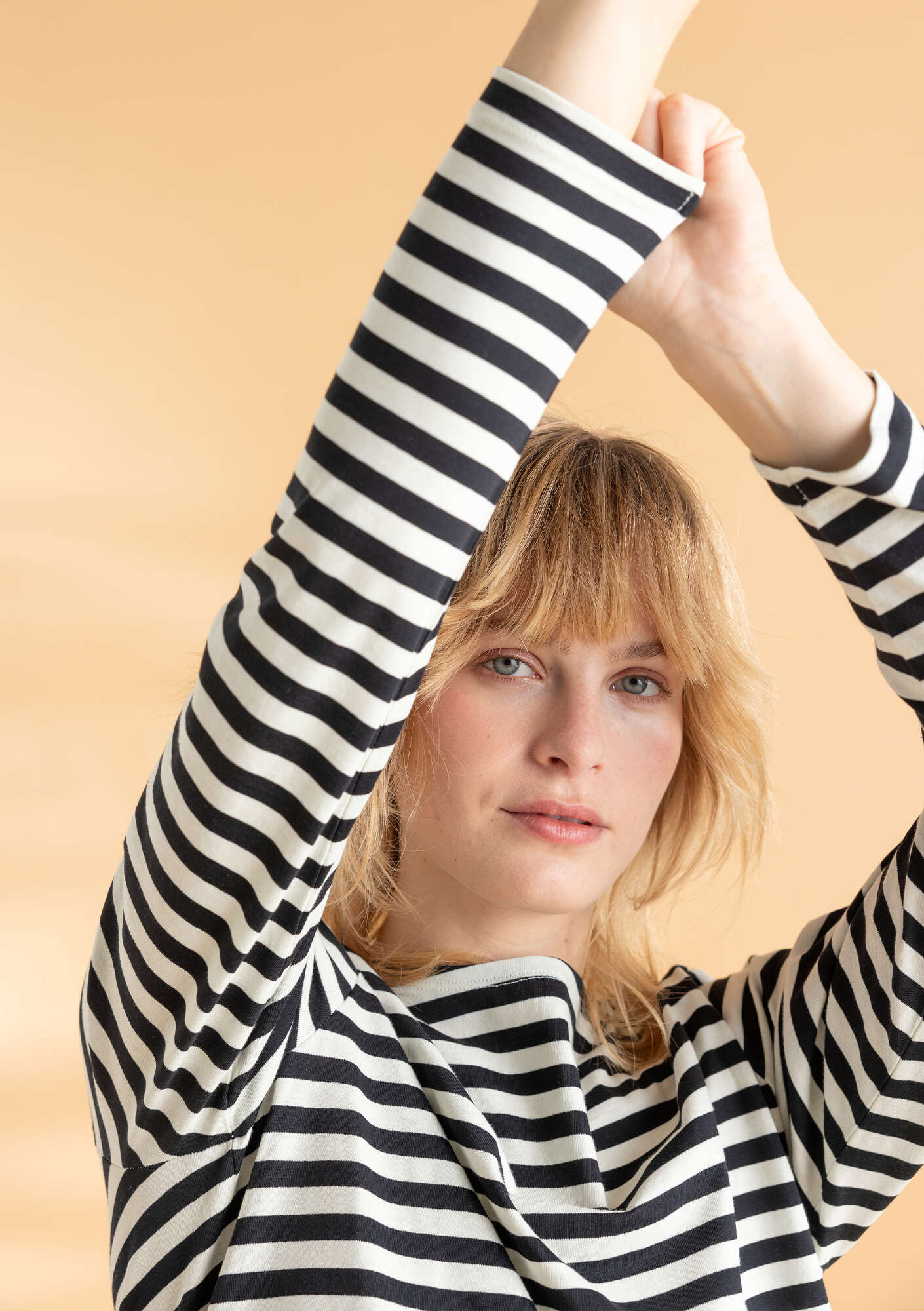 Yarn-dyed stripes in our classic, simple style. Full-length sleeves and a boat neckline.