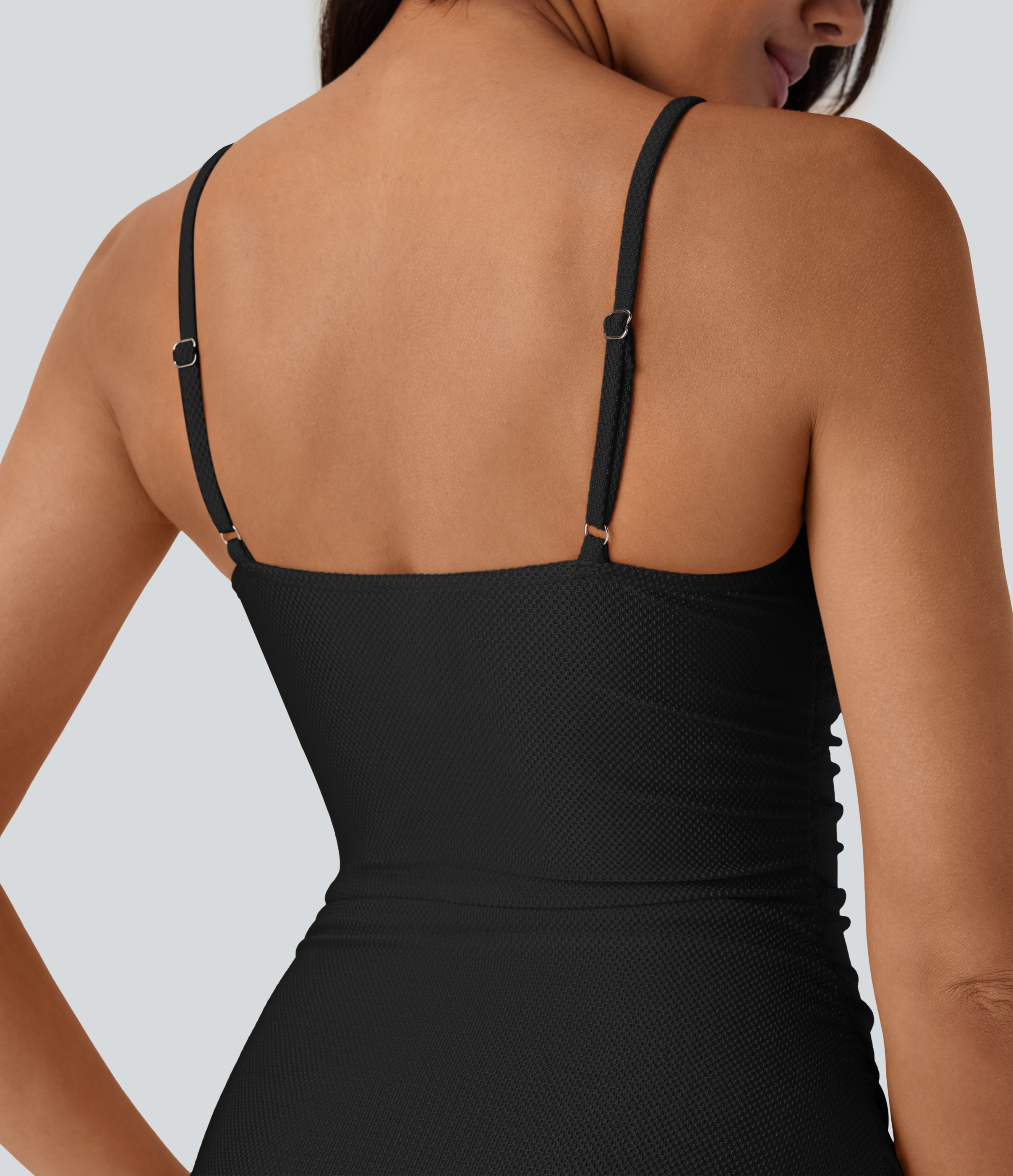 - Designed with sheen fabric that adds a bit of glimmer and sparkle, and also features body shaping.