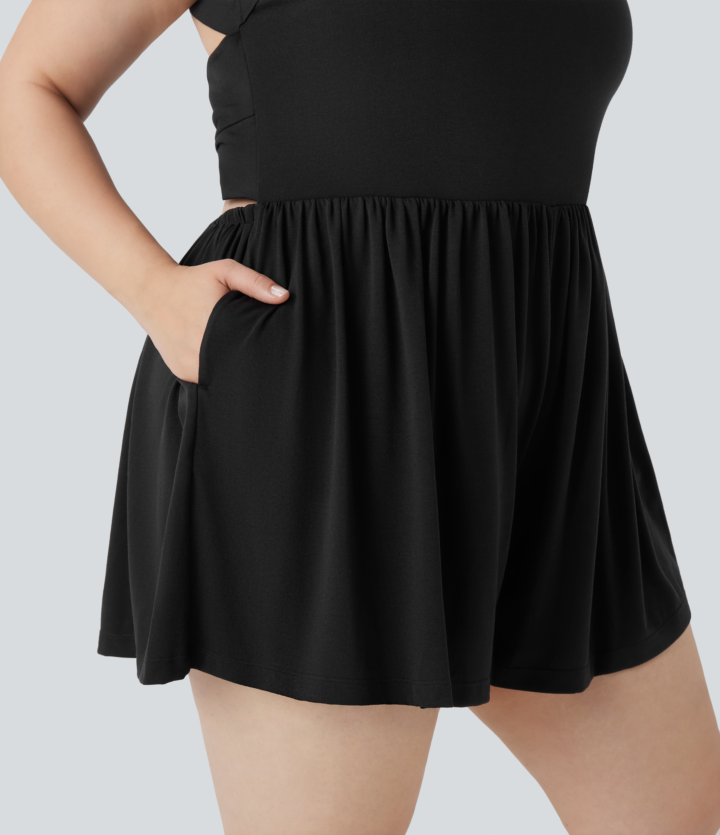 - Built-in shorts with open back waistband for easy peezy bathroom breaks.
