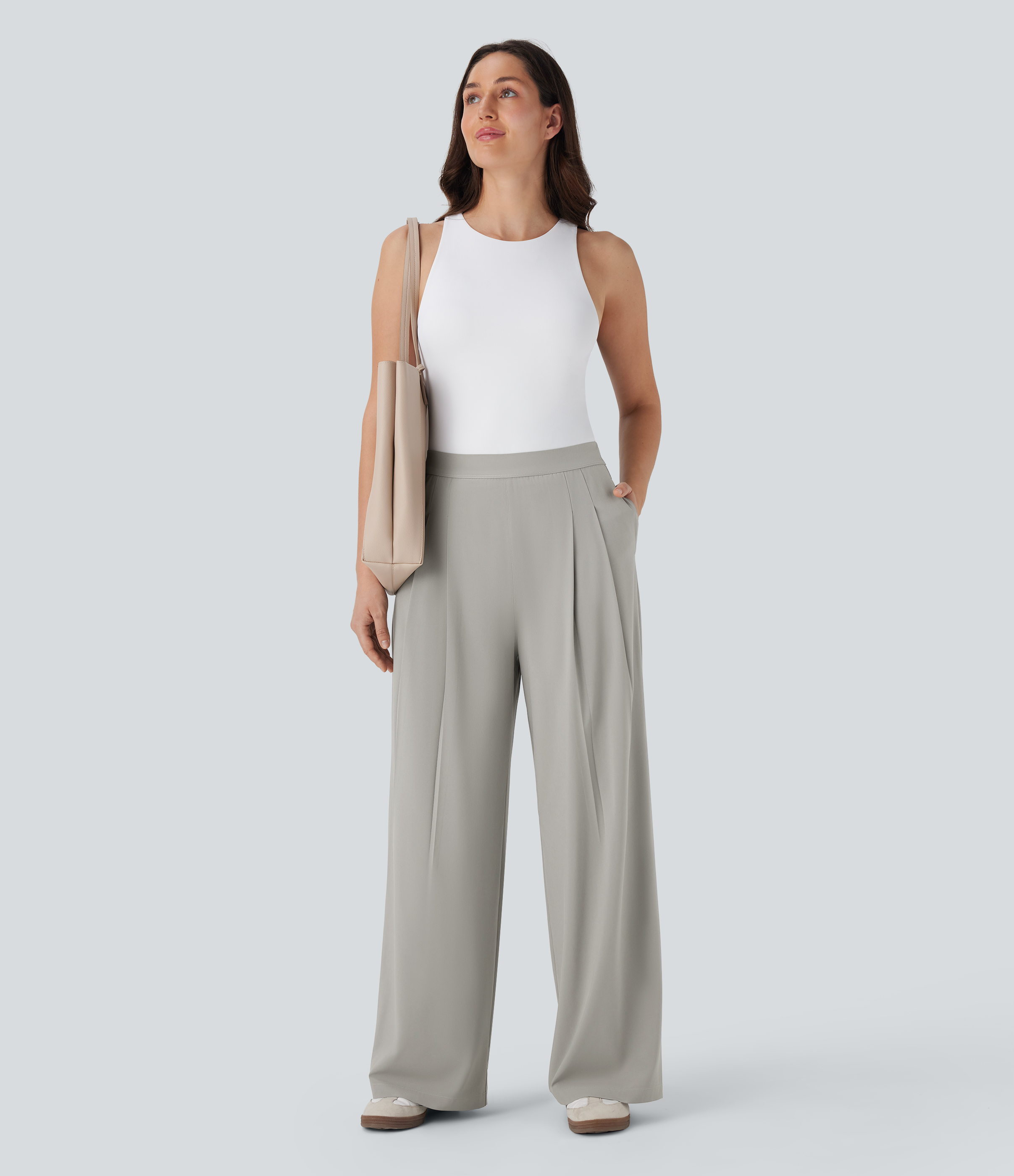 - Wide leg style gives a timeless look, while providing comfortable wear.