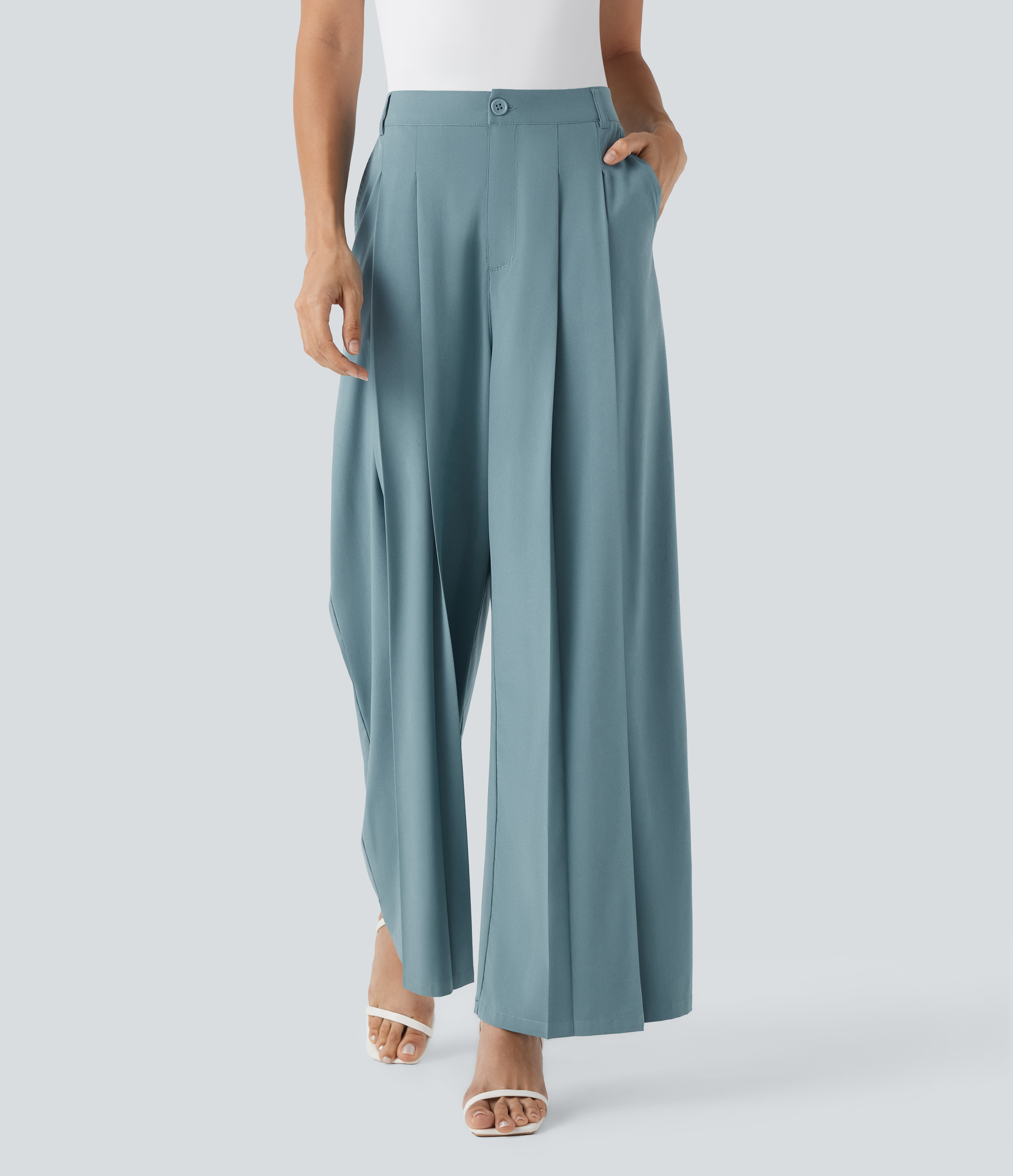 - Wide leg style gives a timeless look, while providing comfortable wear.