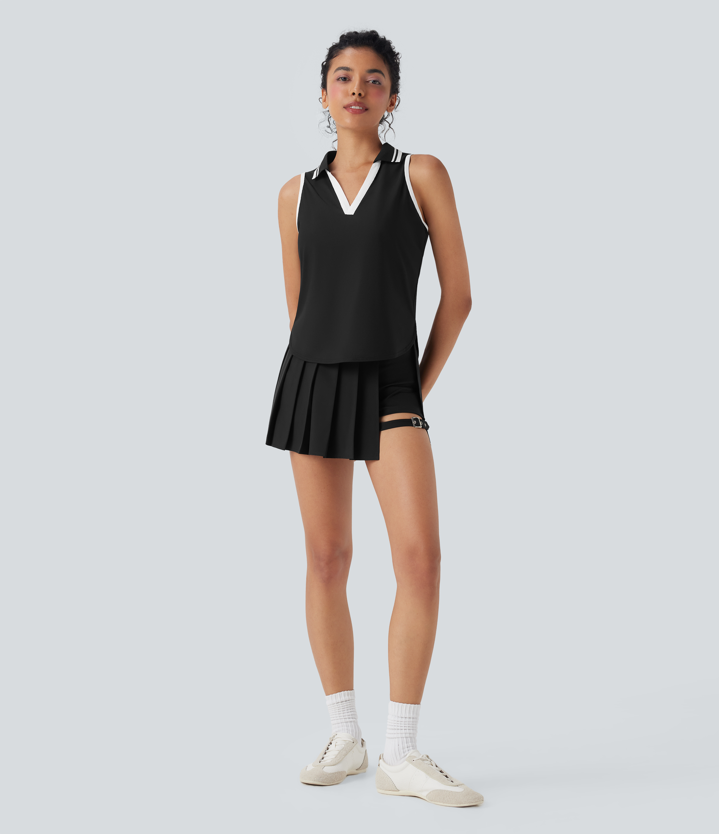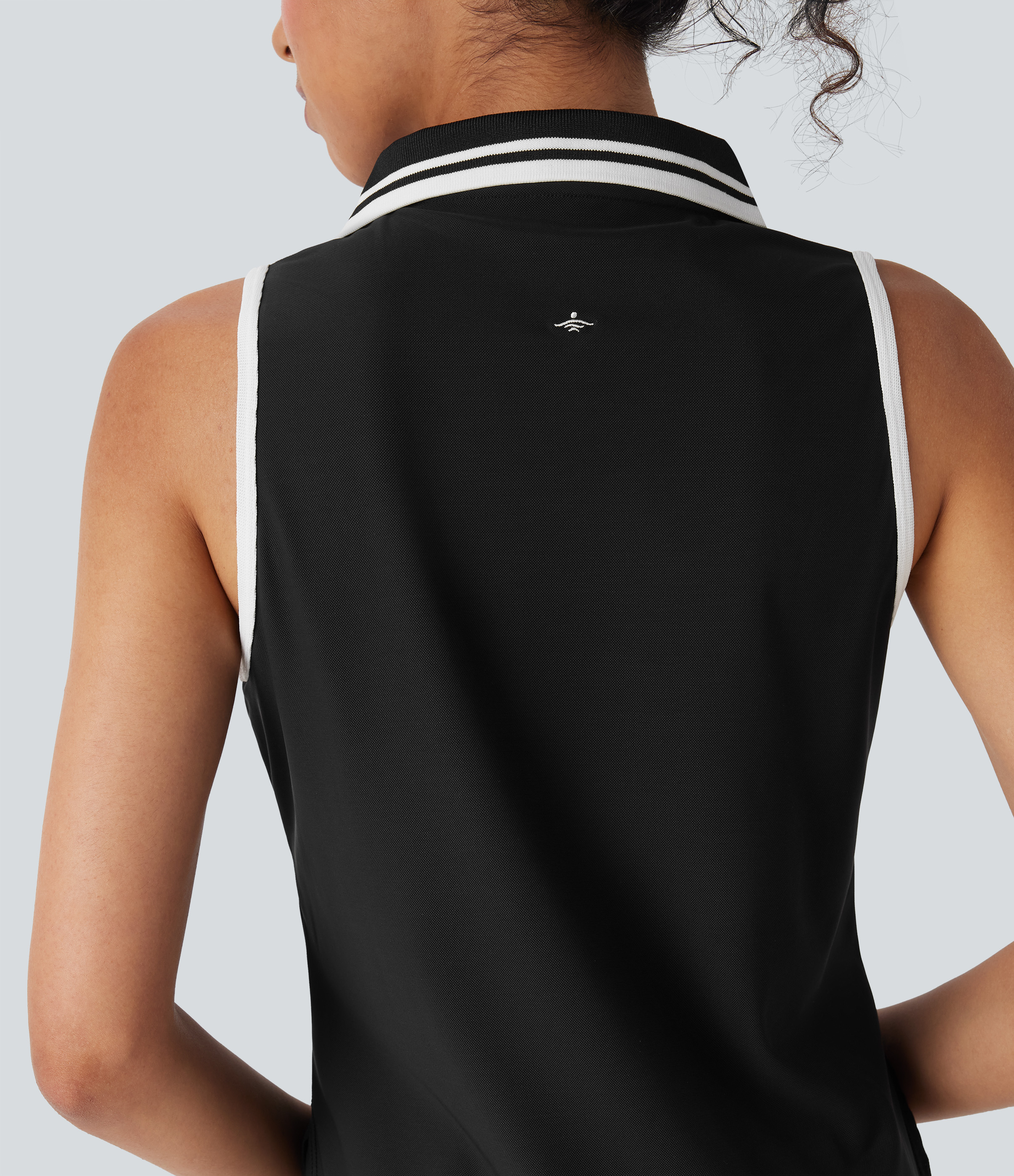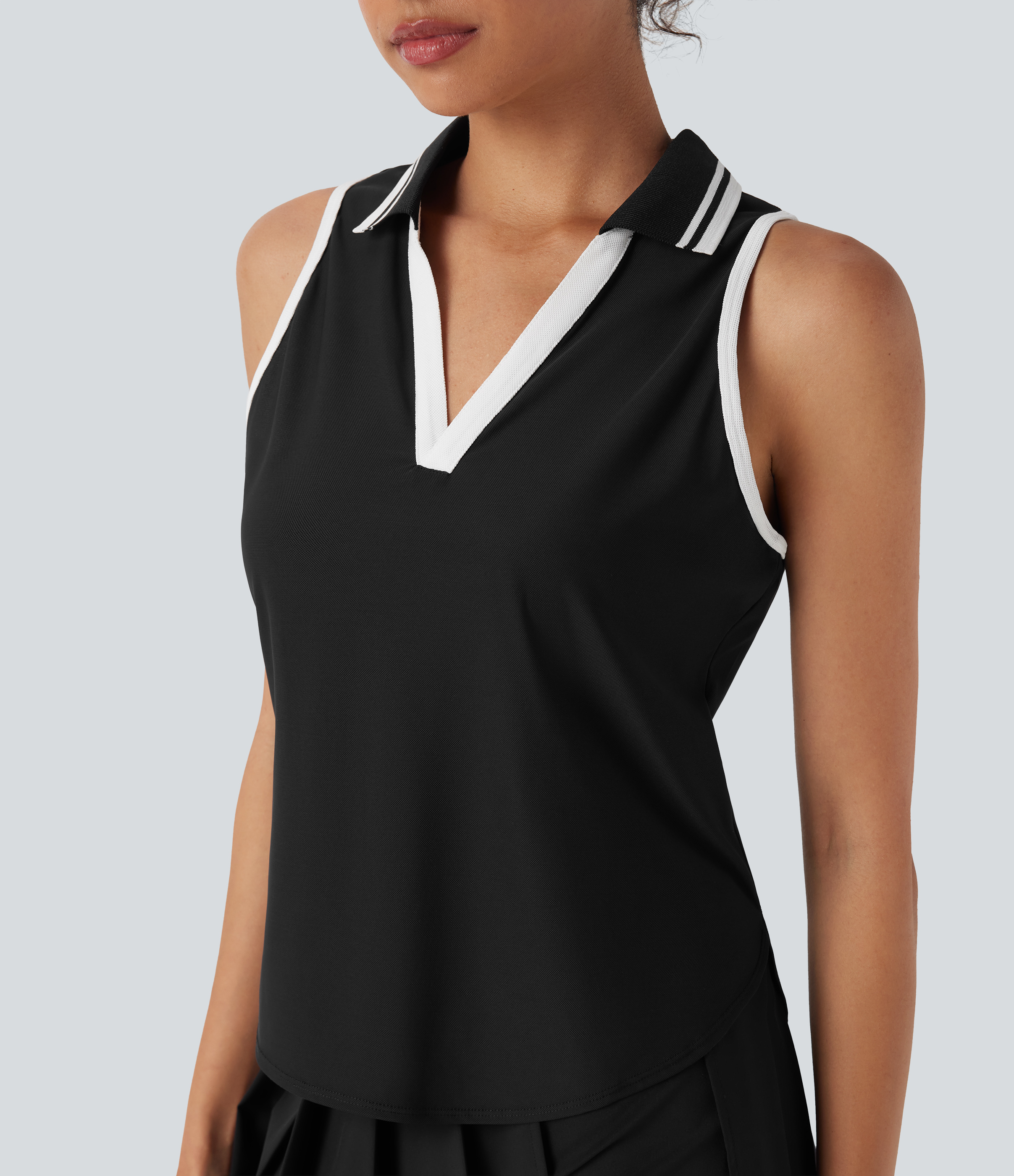 Color Block Polo V Neck Sleeveless Quick Dry Casual Top-UPF50+