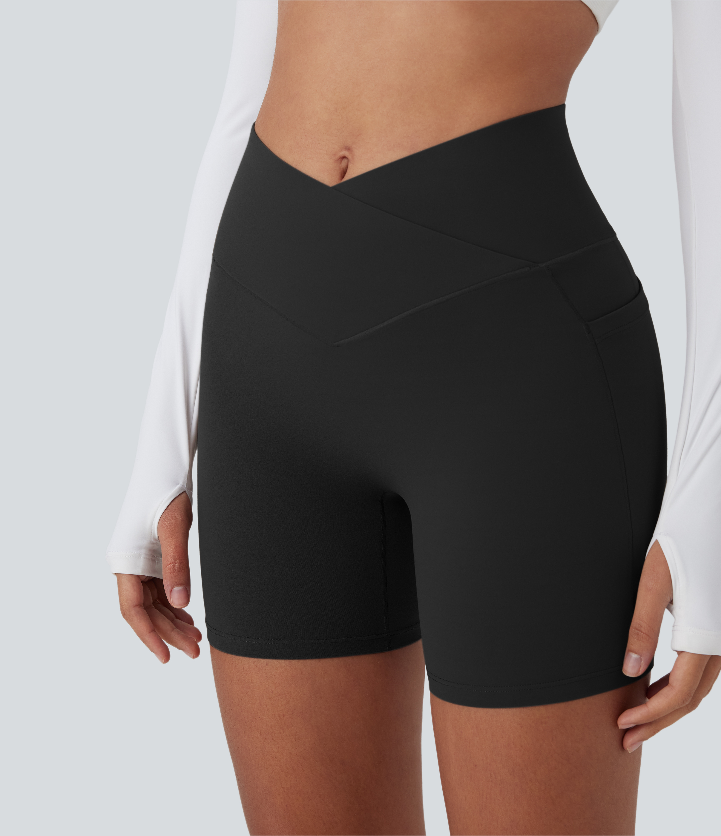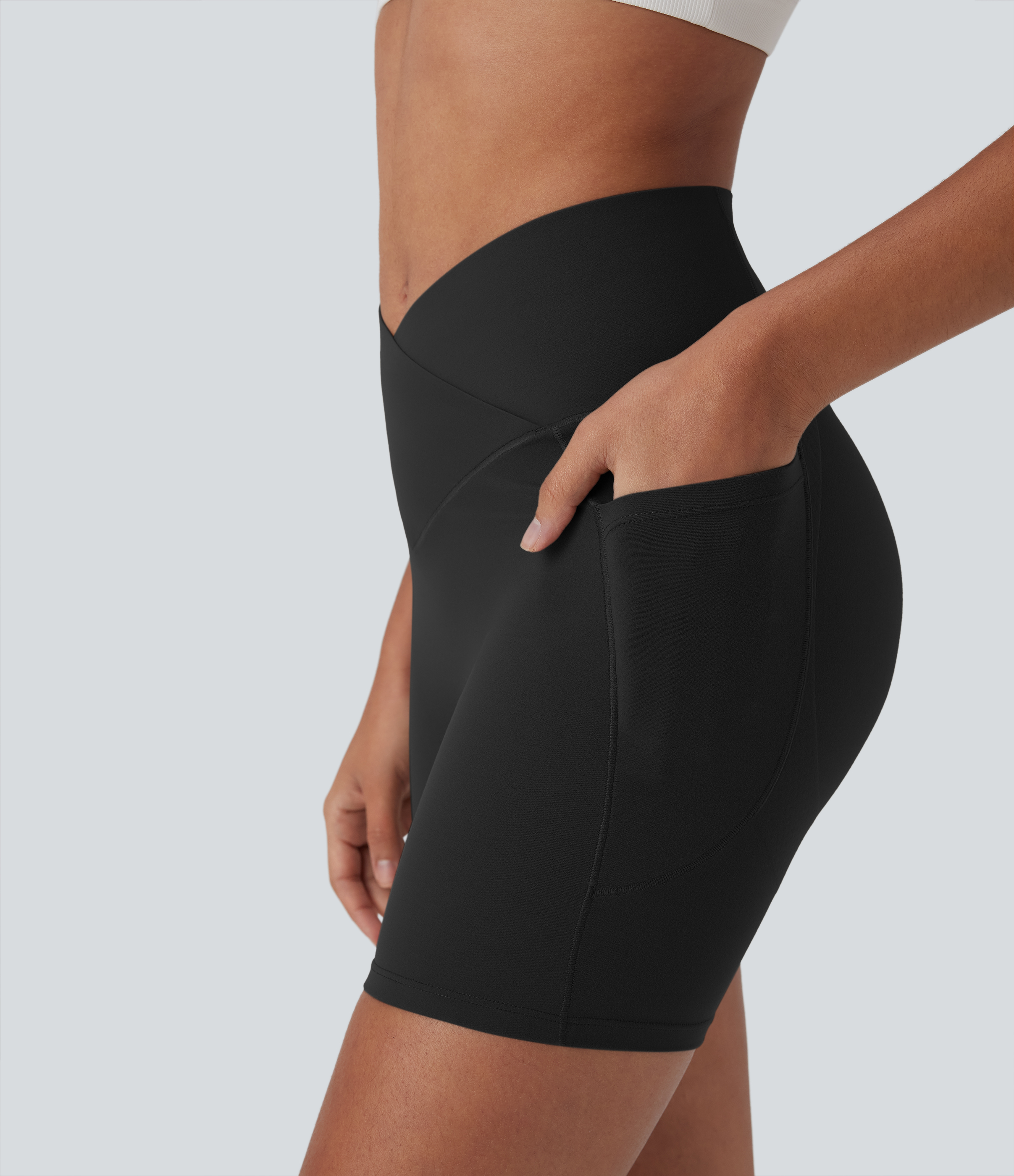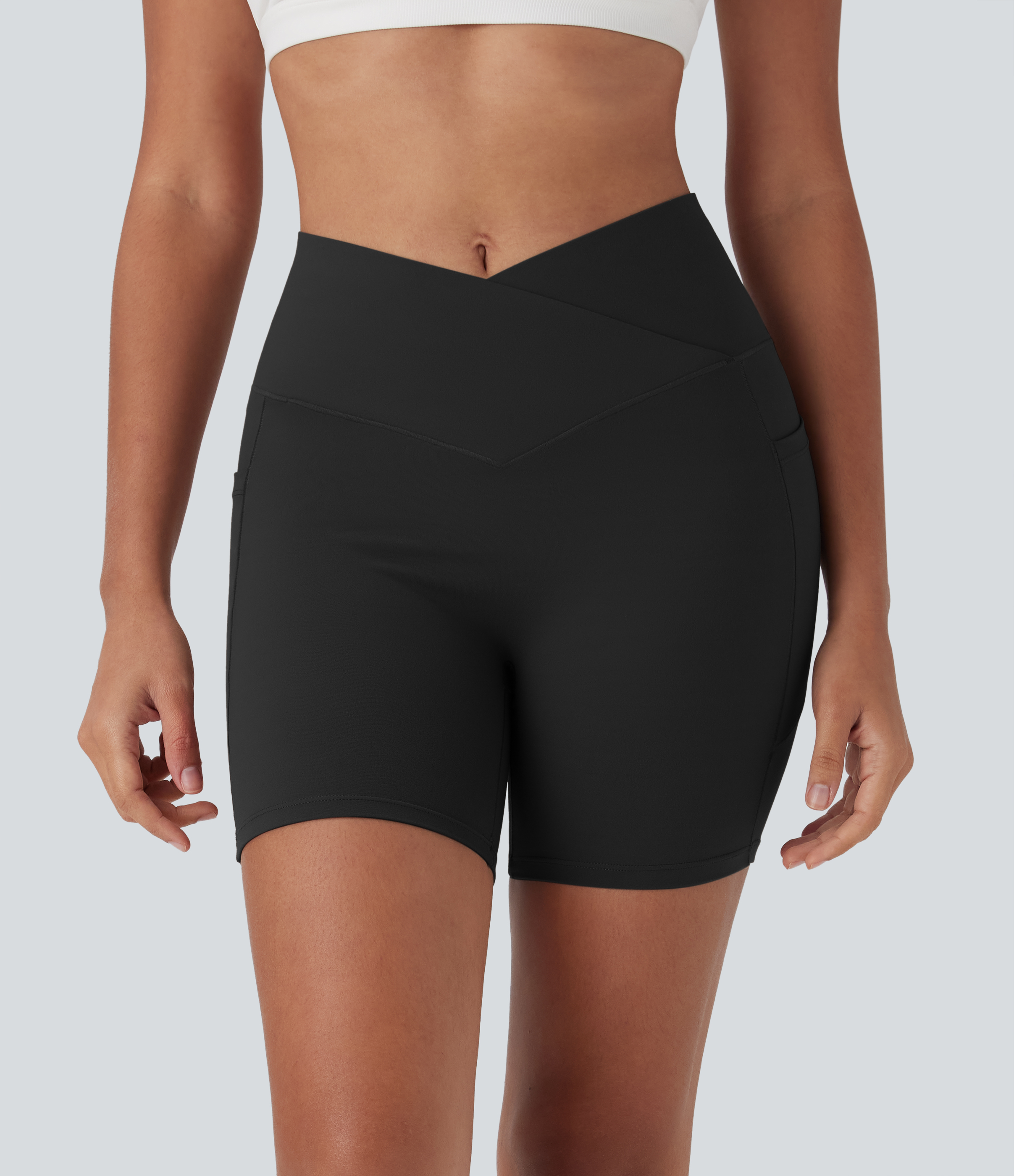 • Halara UltraSculptTM High Waisted Crossover Tummy Control Butt Lifting Yoga Biker Shorts 5'' with Pockets
