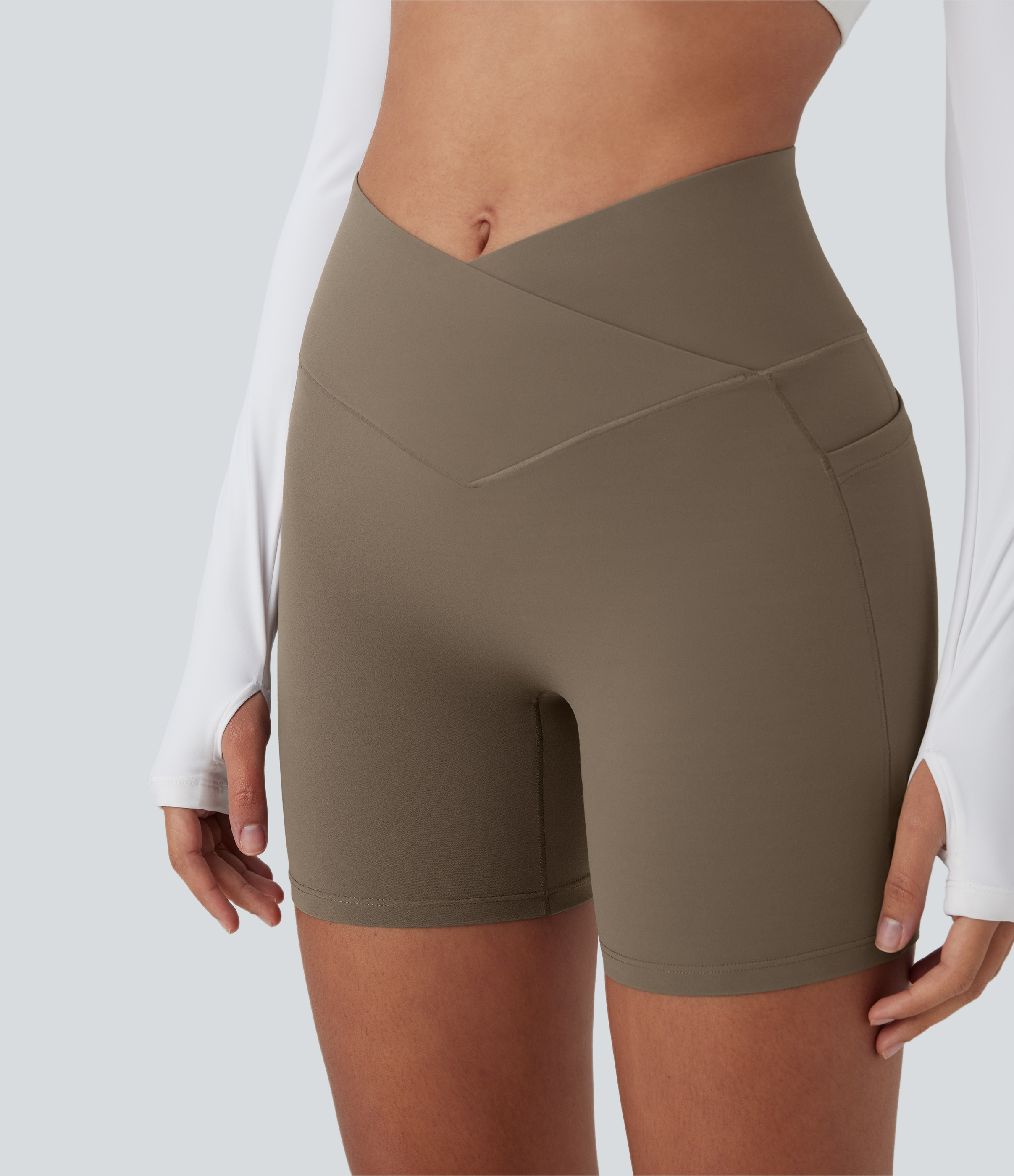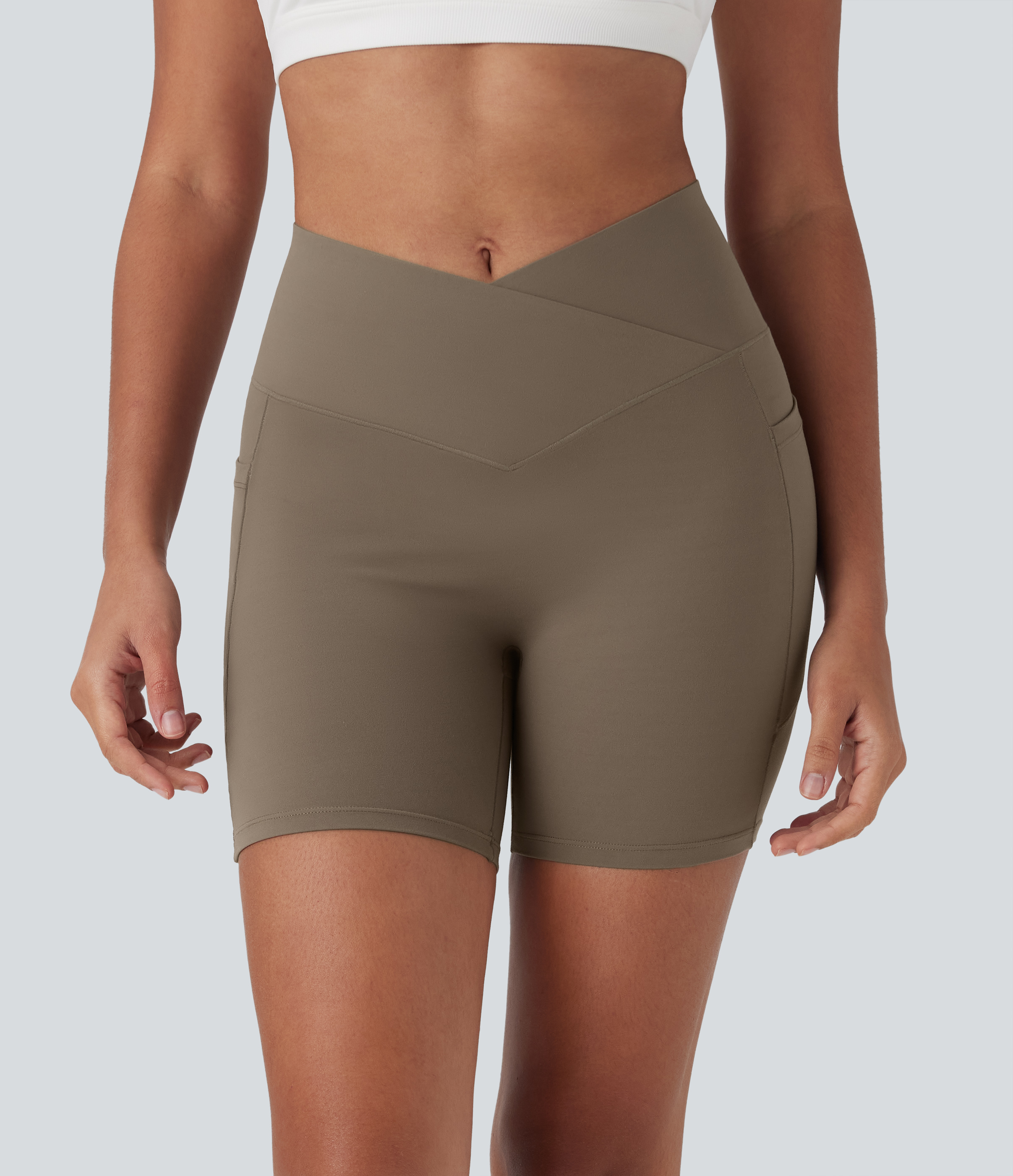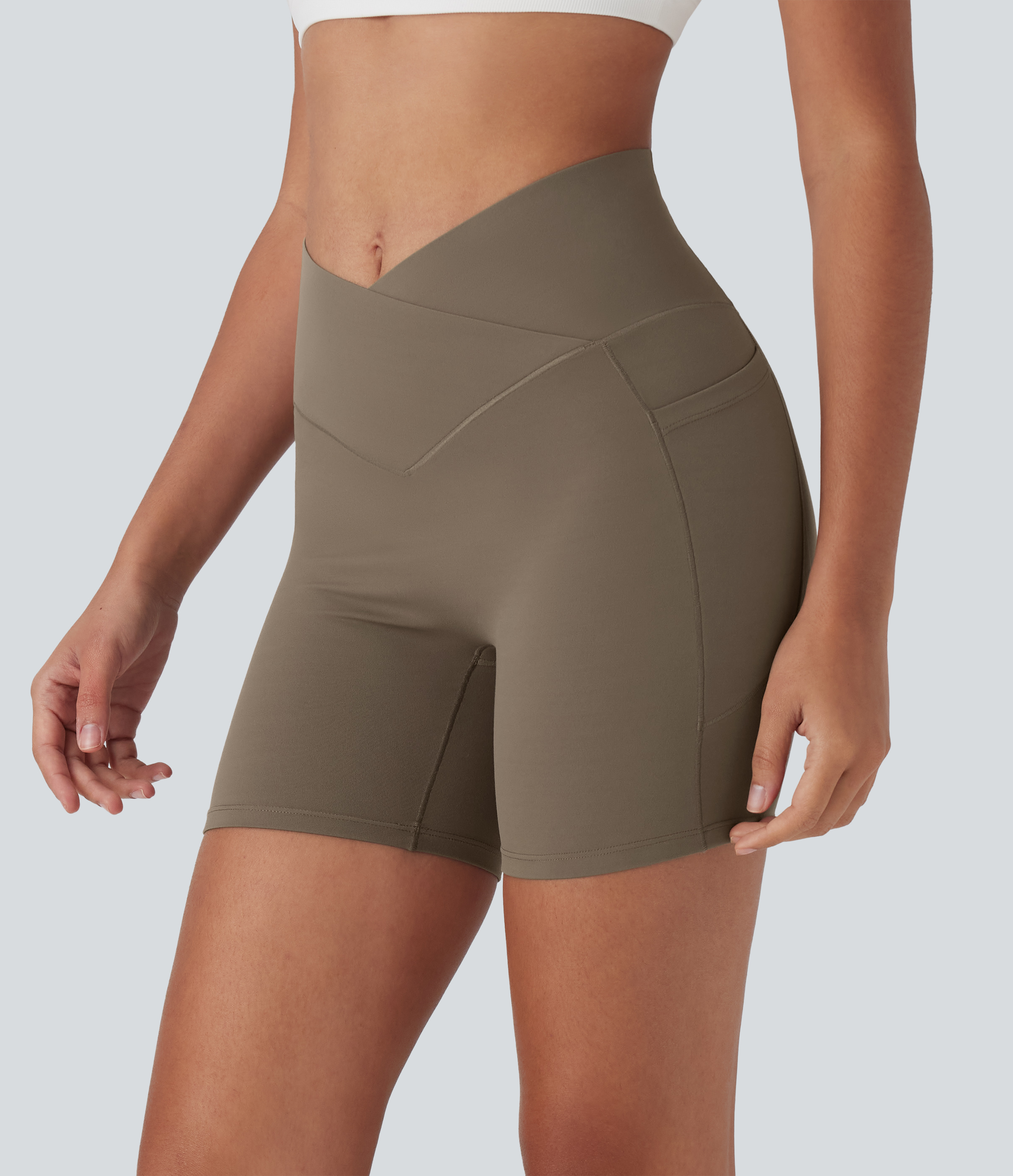 • Halara UltraSculptTM High Waisted Crossover Tummy Control Butt Lifting Yoga Biker Shorts 5'' with Pockets