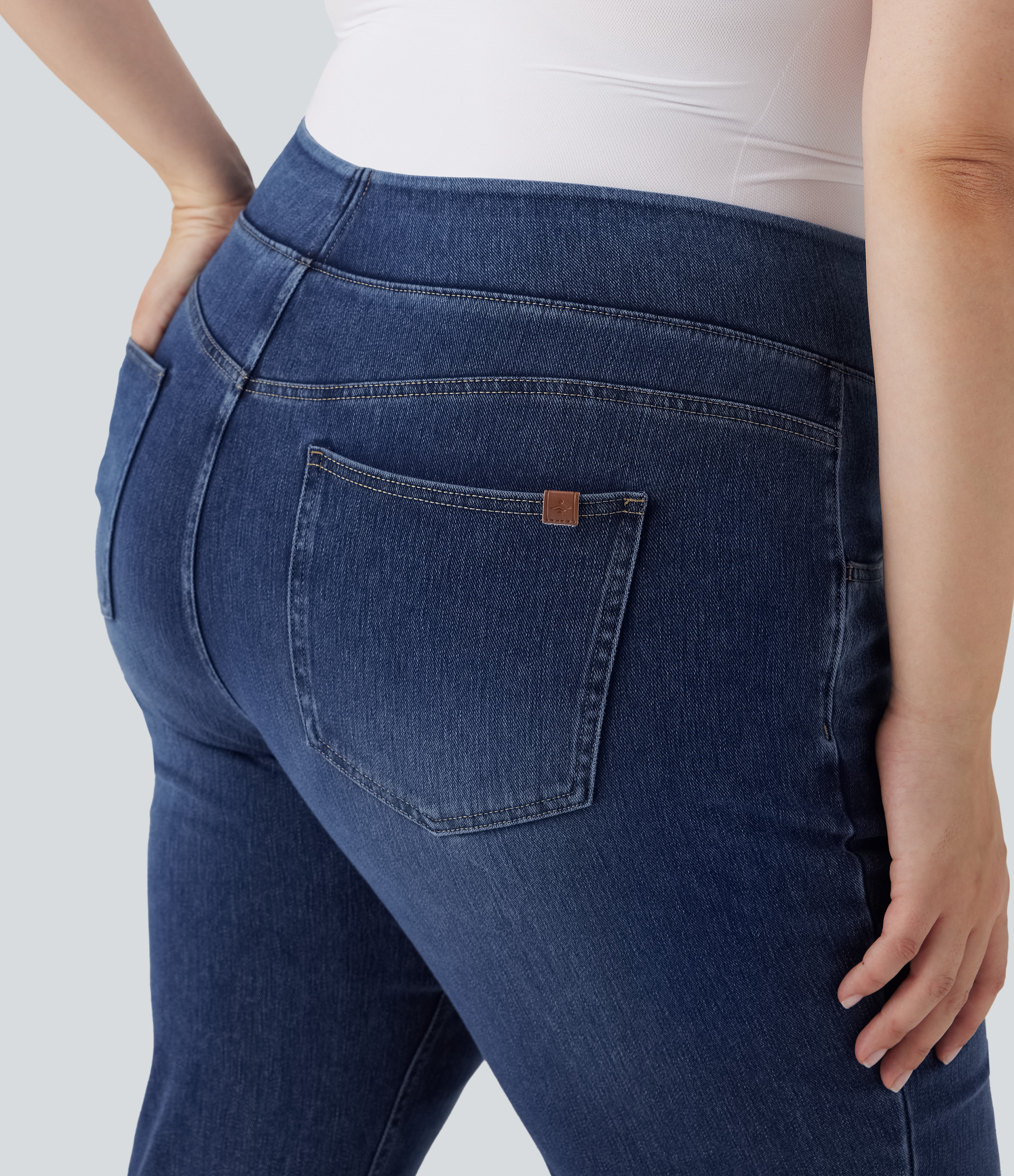 Halara FlexTM High Waisted Pockets Washed Casual Bootcut Plus Size Jeans