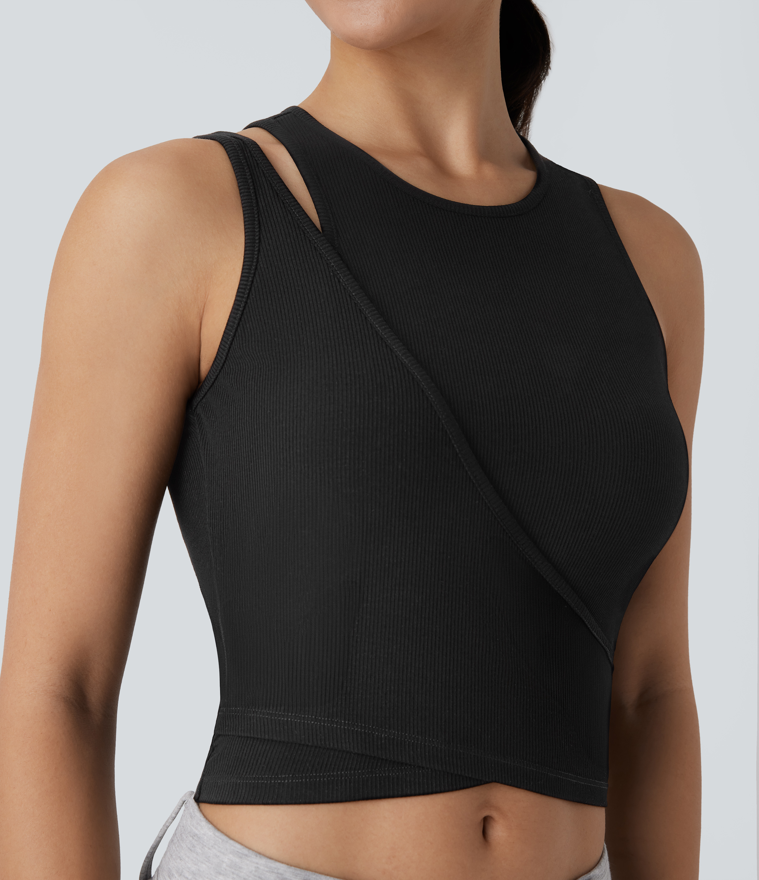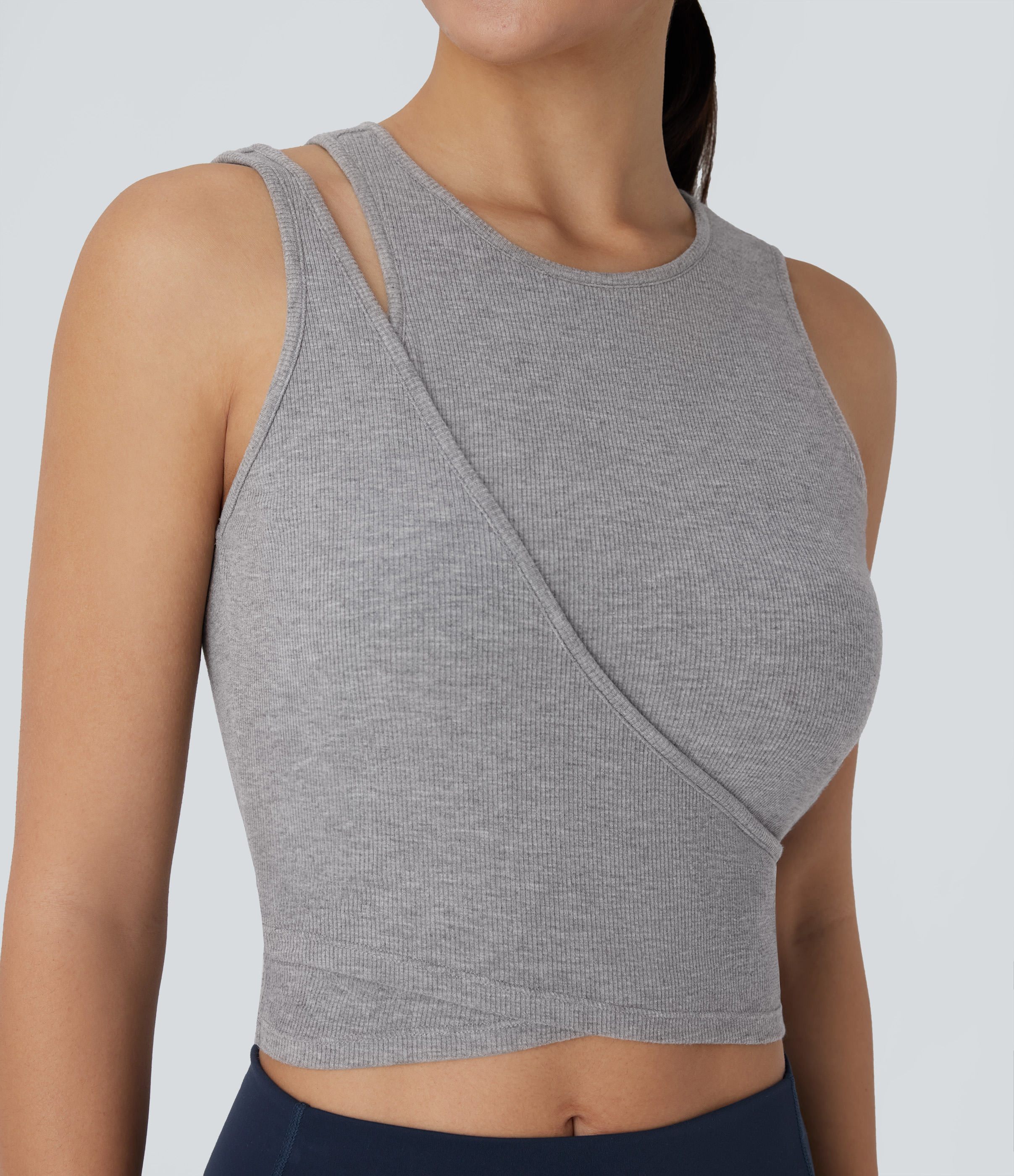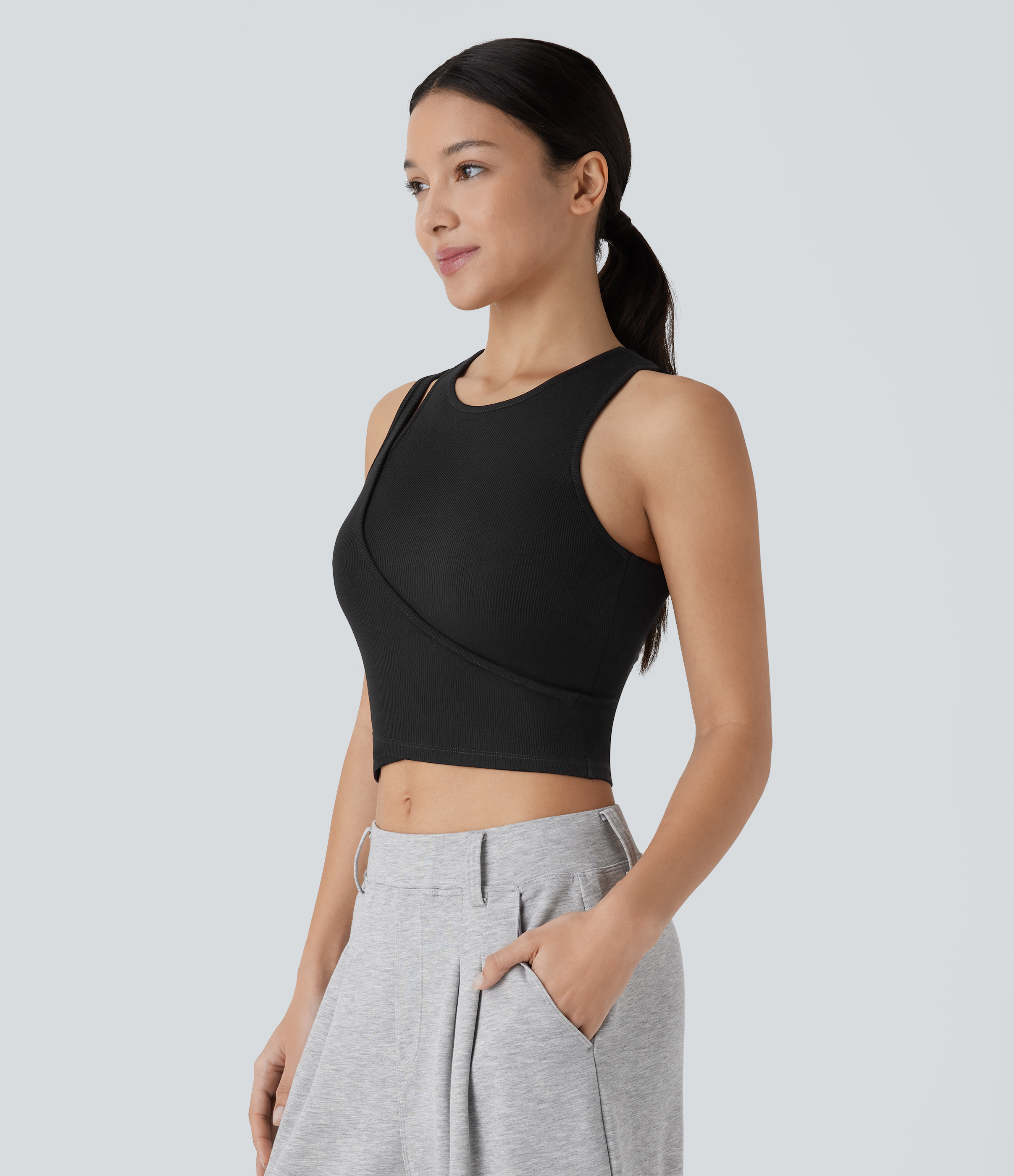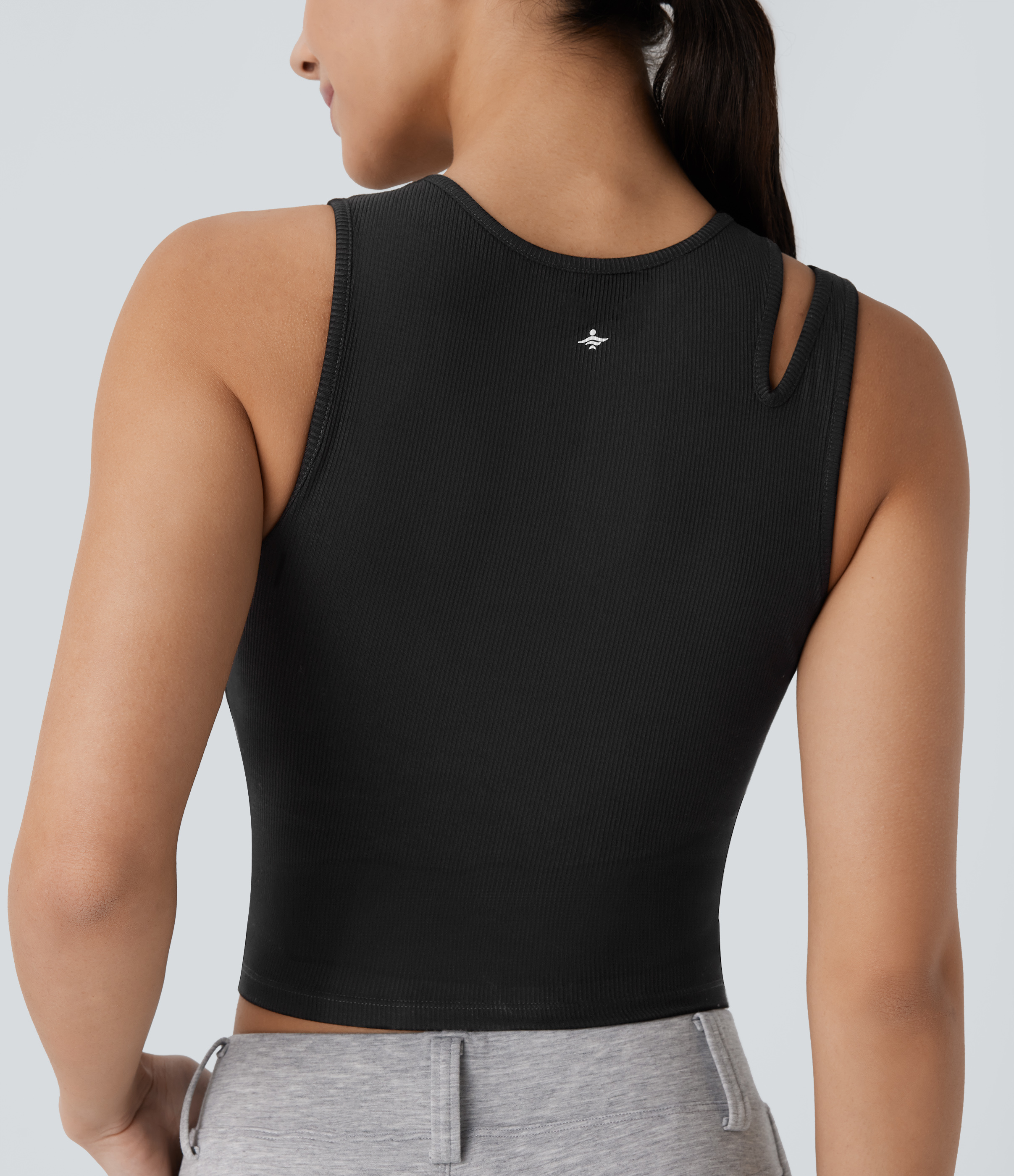 High Stretch Ribbed Knit Cropped Yoga Tank Top
