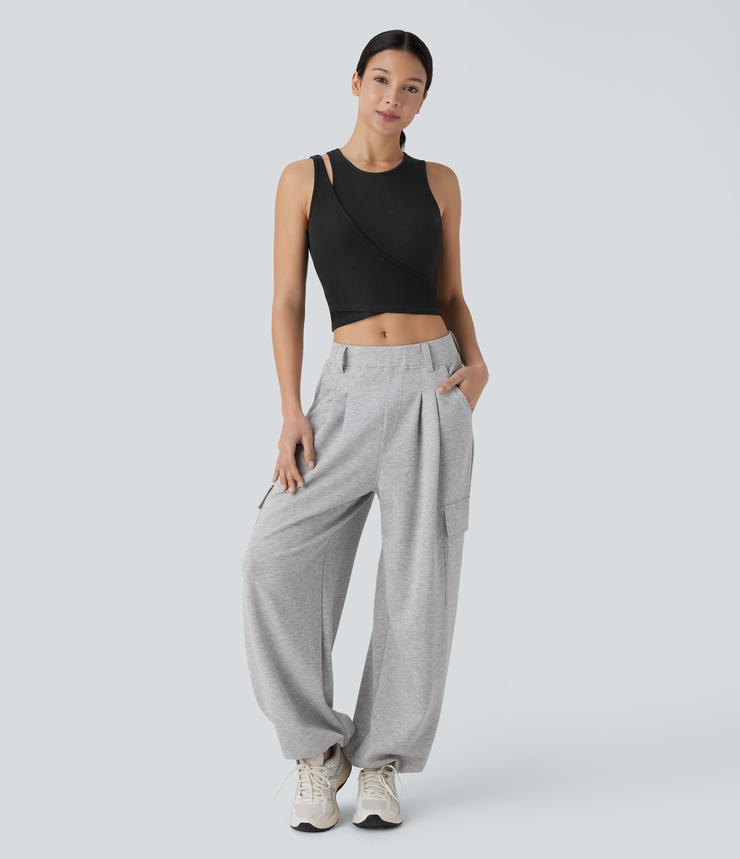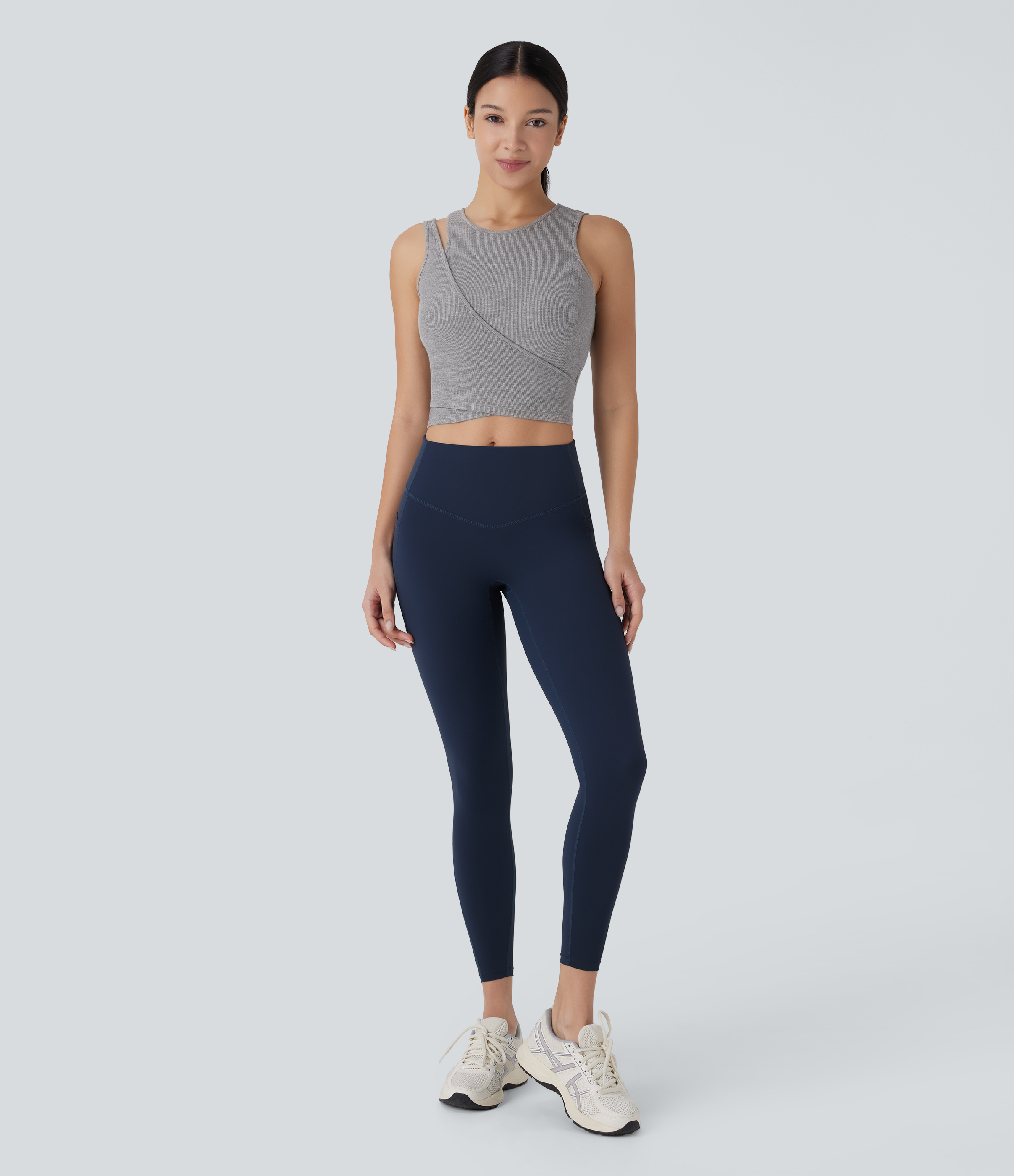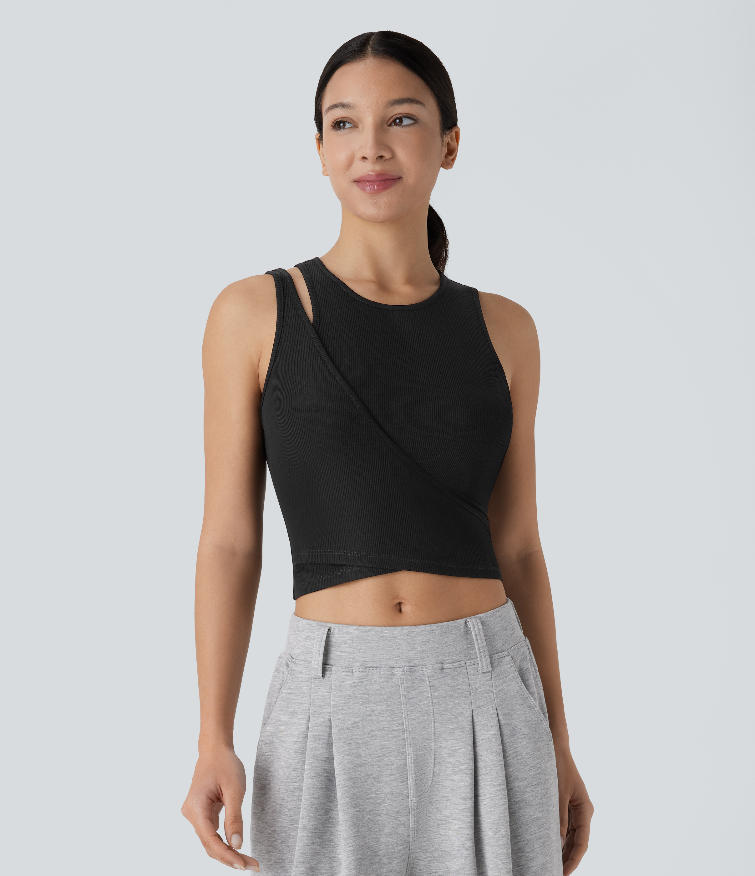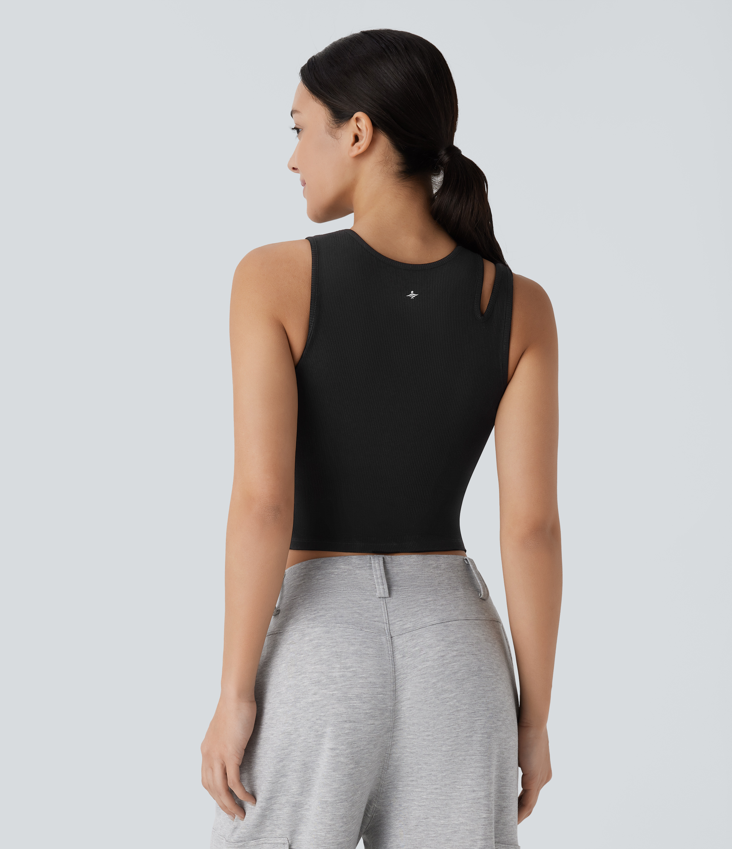 High Stretch Ribbed Knit Cropped Yoga Tank Top