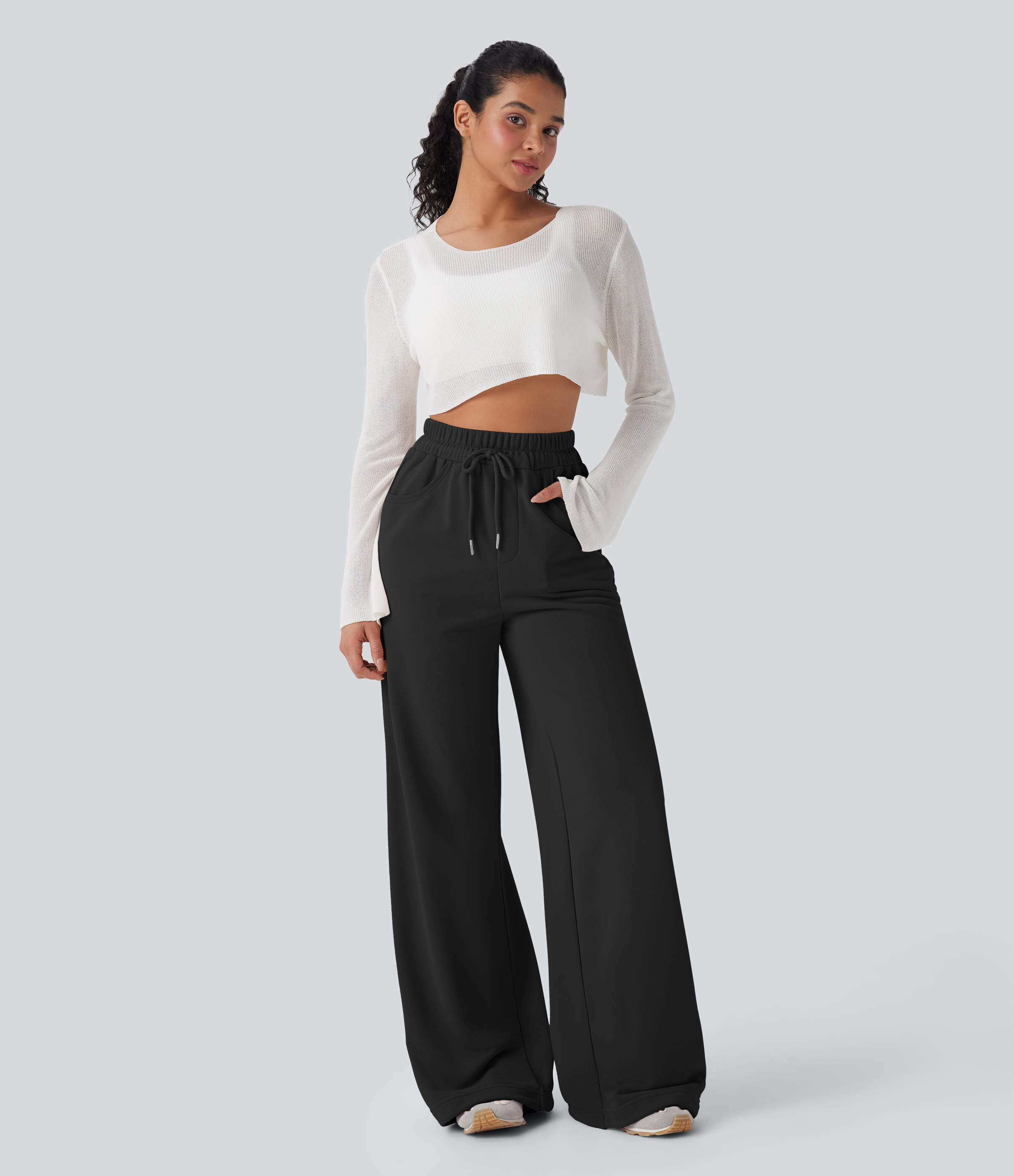 - Wide leg style gives a timeless look, while providing comfortable wear.