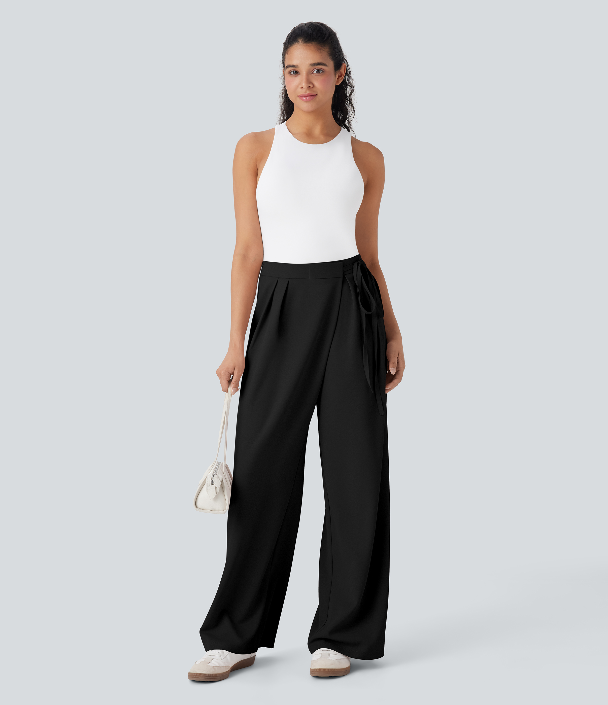 - Wide leg style gives a timeless look, while providing comfortable wear.