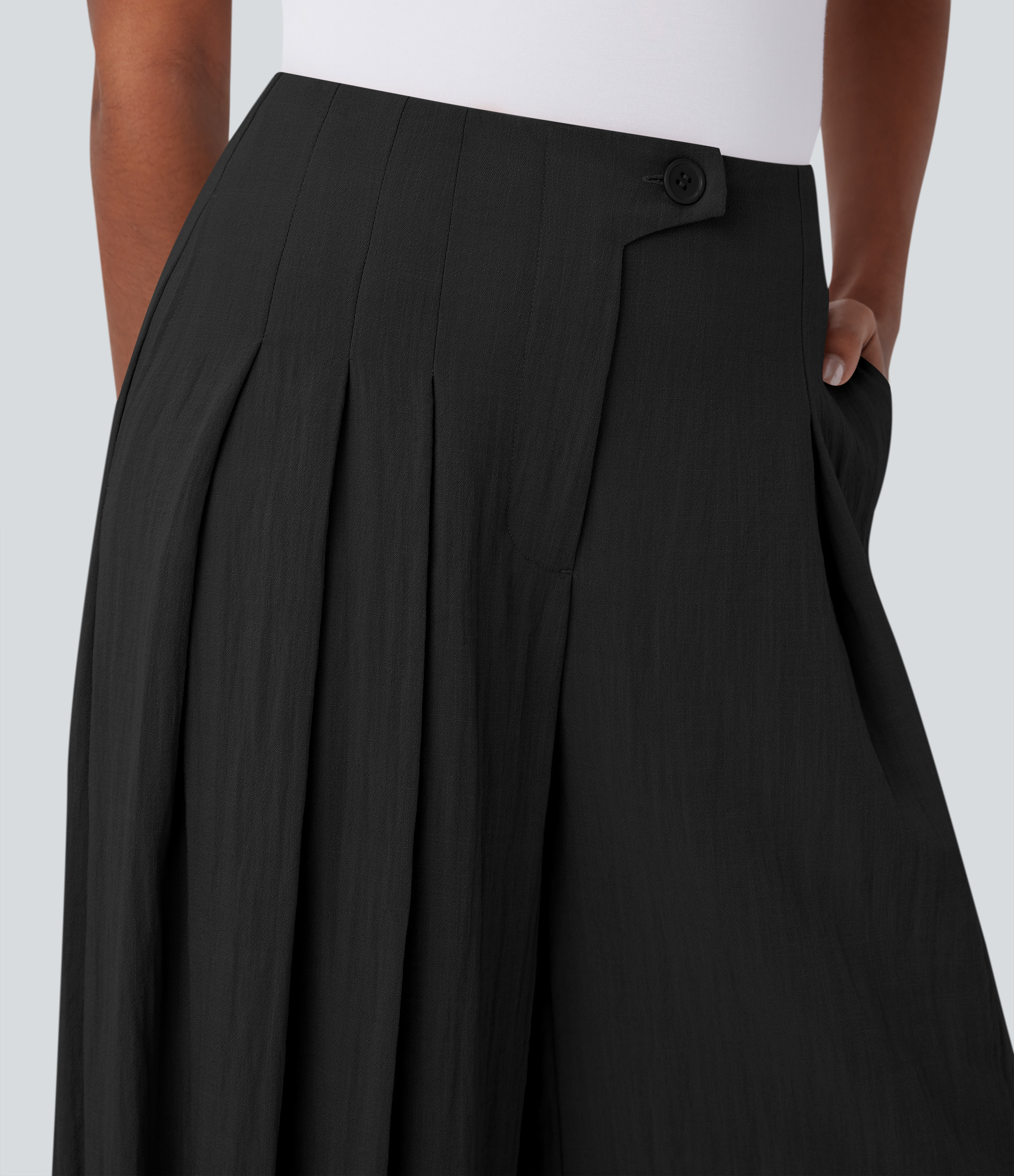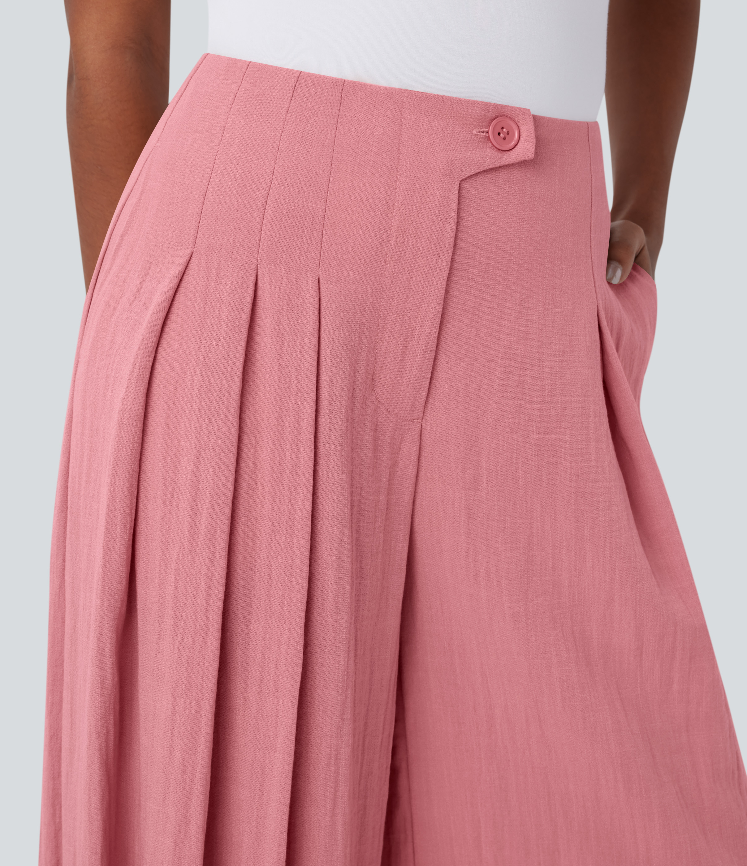- Wide leg style gives a timeless look, while providing comfortable wear.