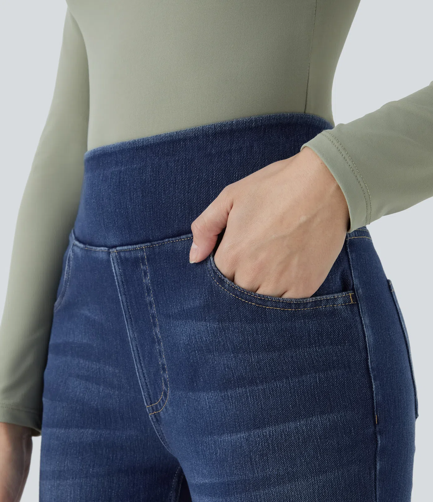 2026🔥Halara FlexTM High Waisted Multiple Pockets Washed Stretchy Knit Casual Bootcut Jeans