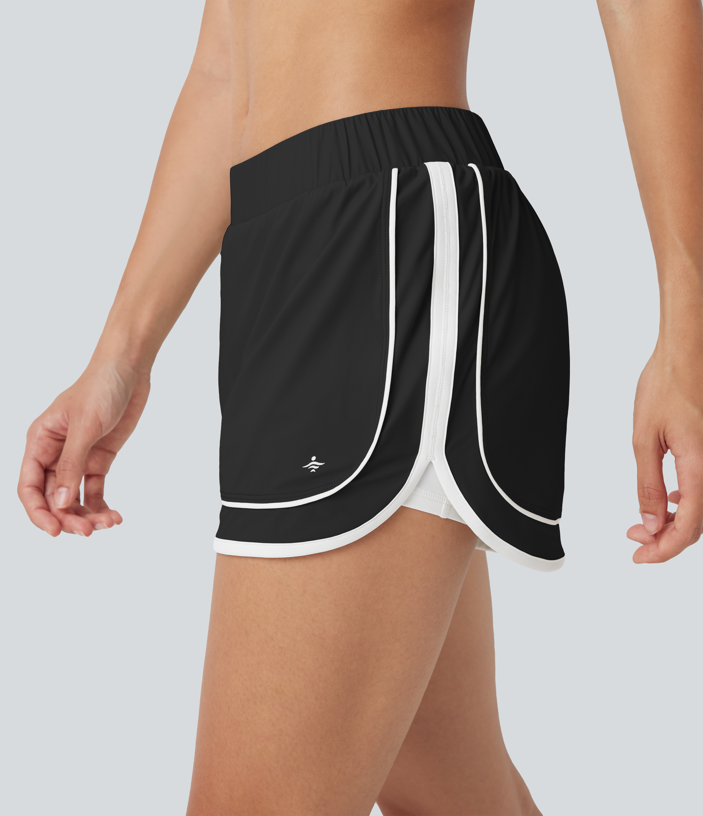 • Low Rise Color Block Curved Hem 2-in-1 Cool Touch Quick Dry Running Shorts with Pocket