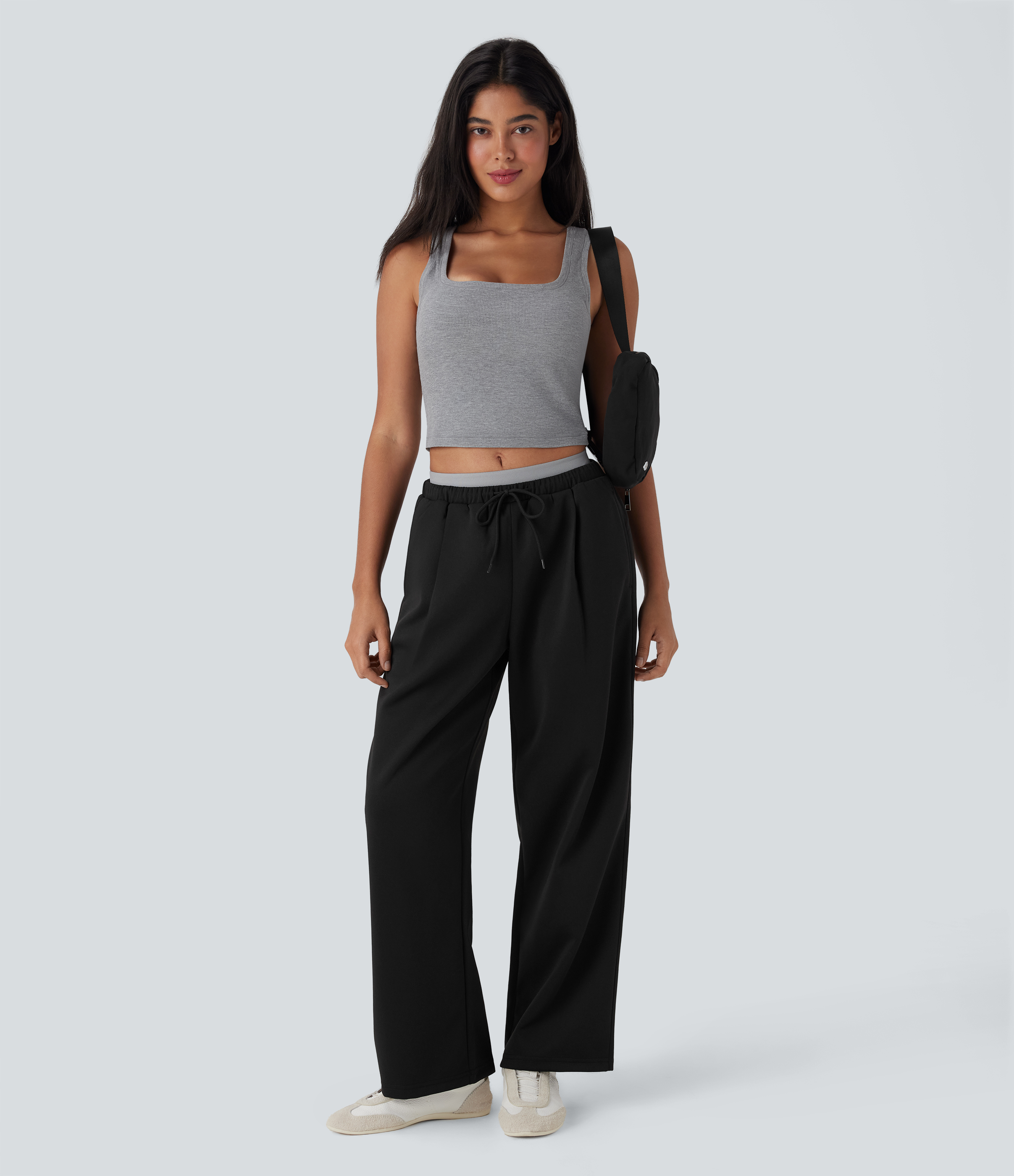 Low Rise Drawstring Straight Leg Yoga Pants with Pockets