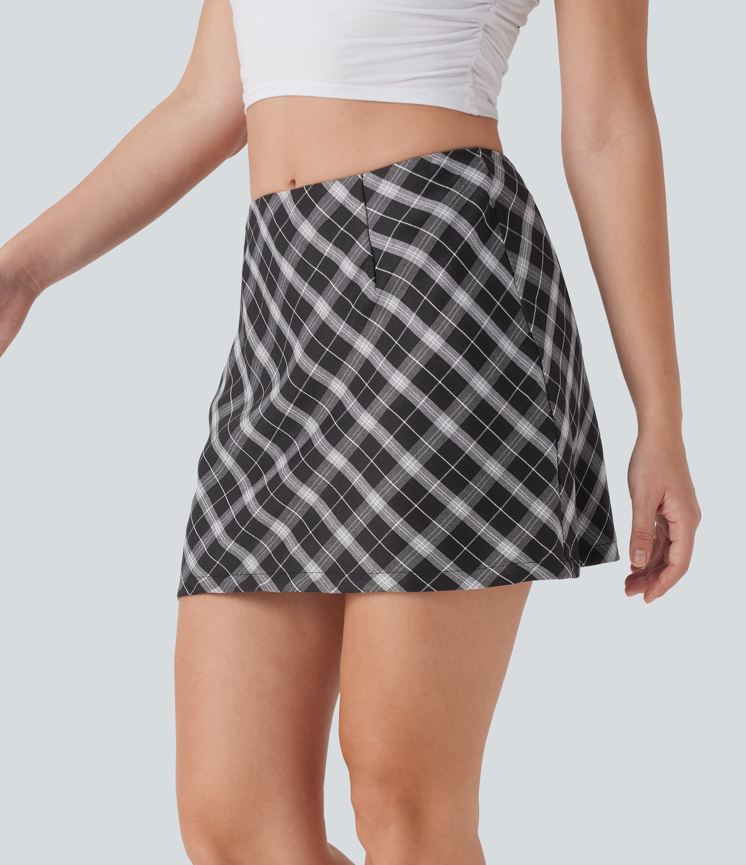 - Plaid patterning in multi-colored tartan design for a bold and versatile look.