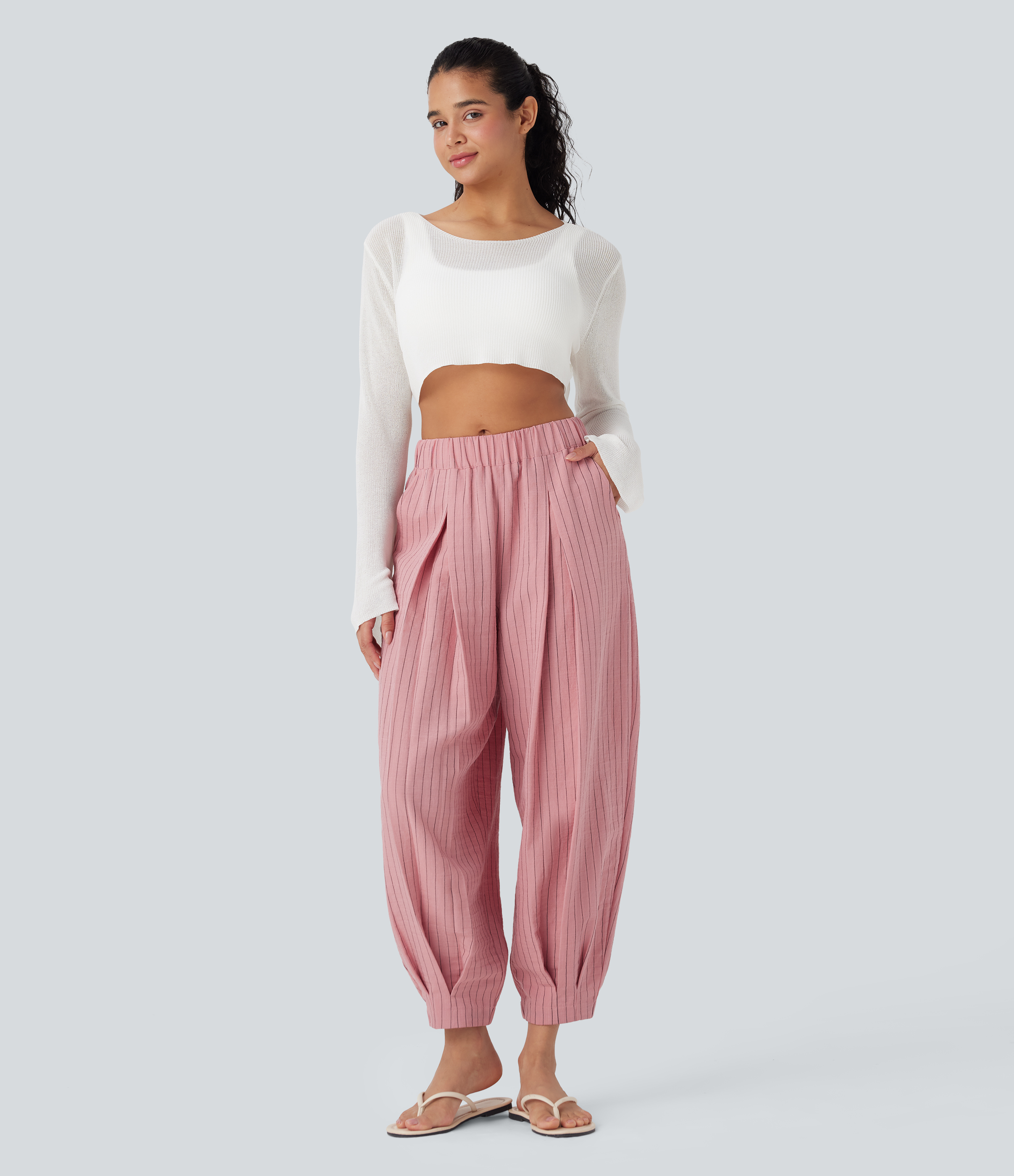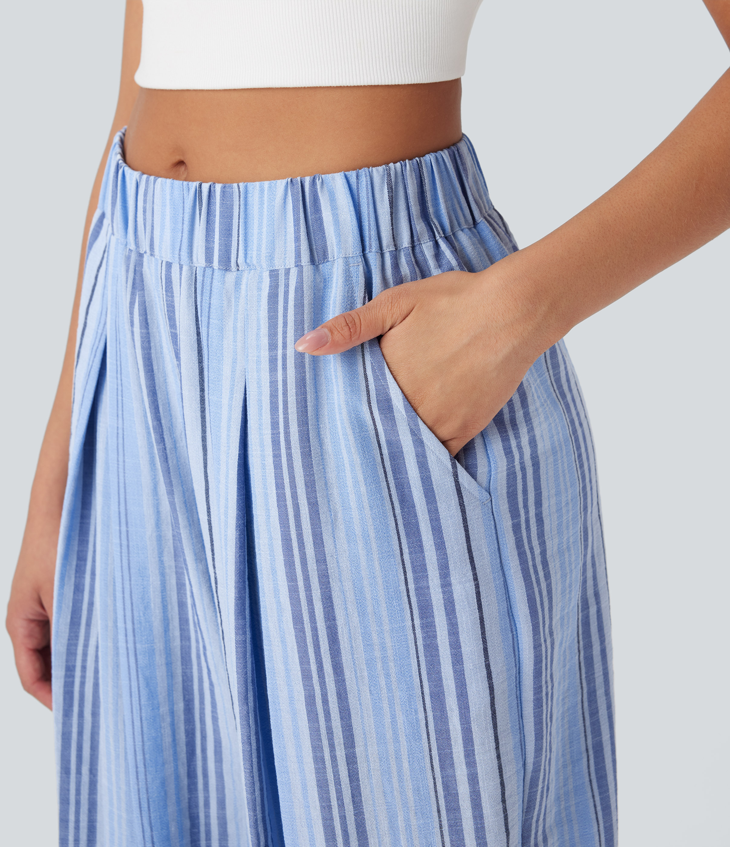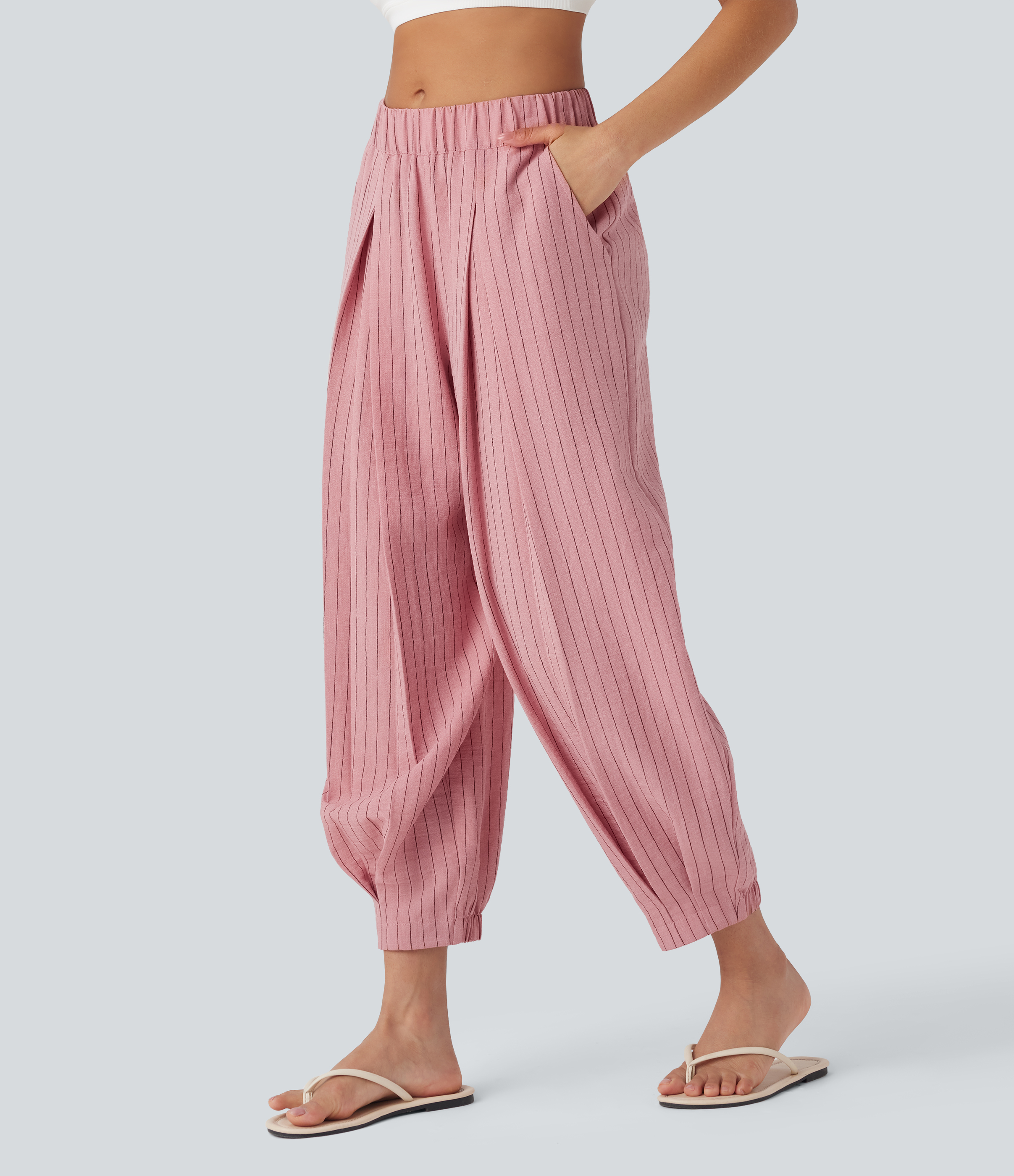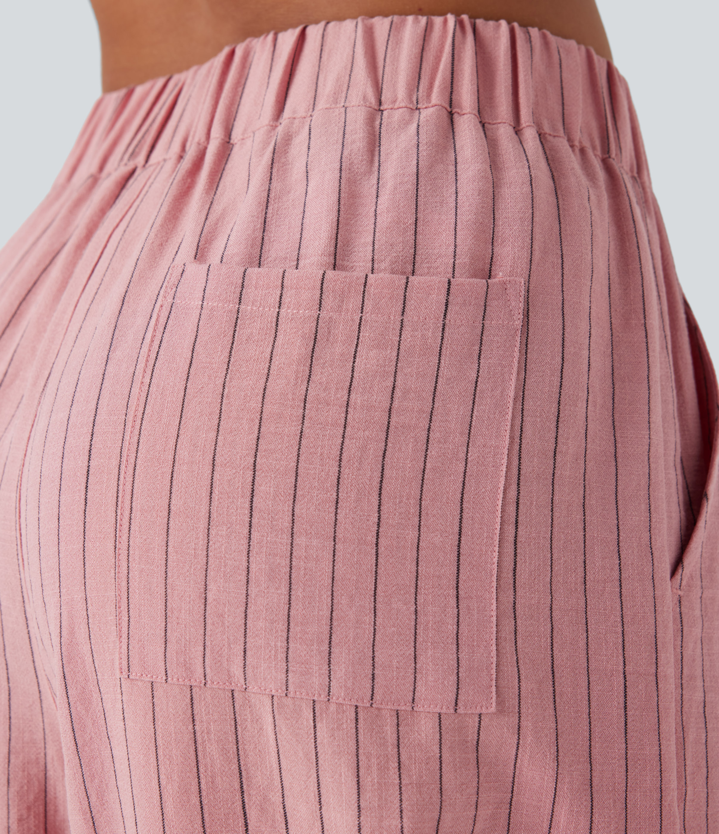 Mid Rise Stripe Casual Linen-Feel Joggers with Pockets