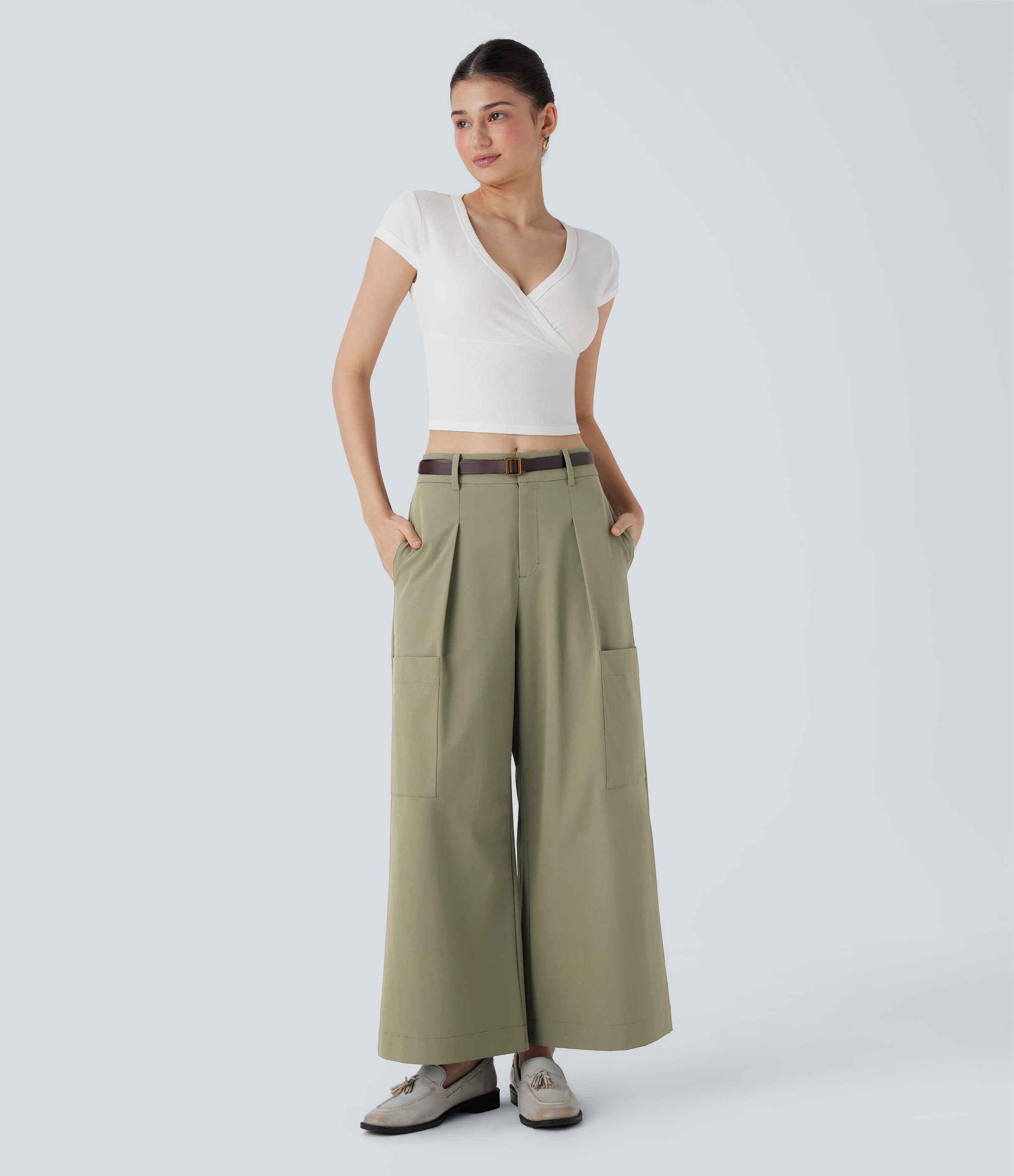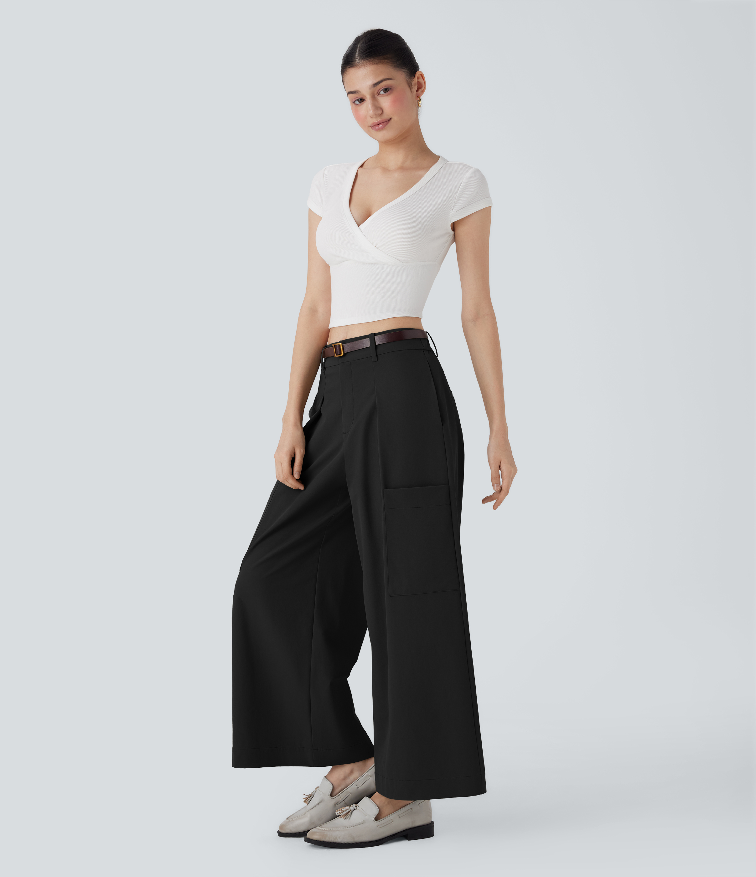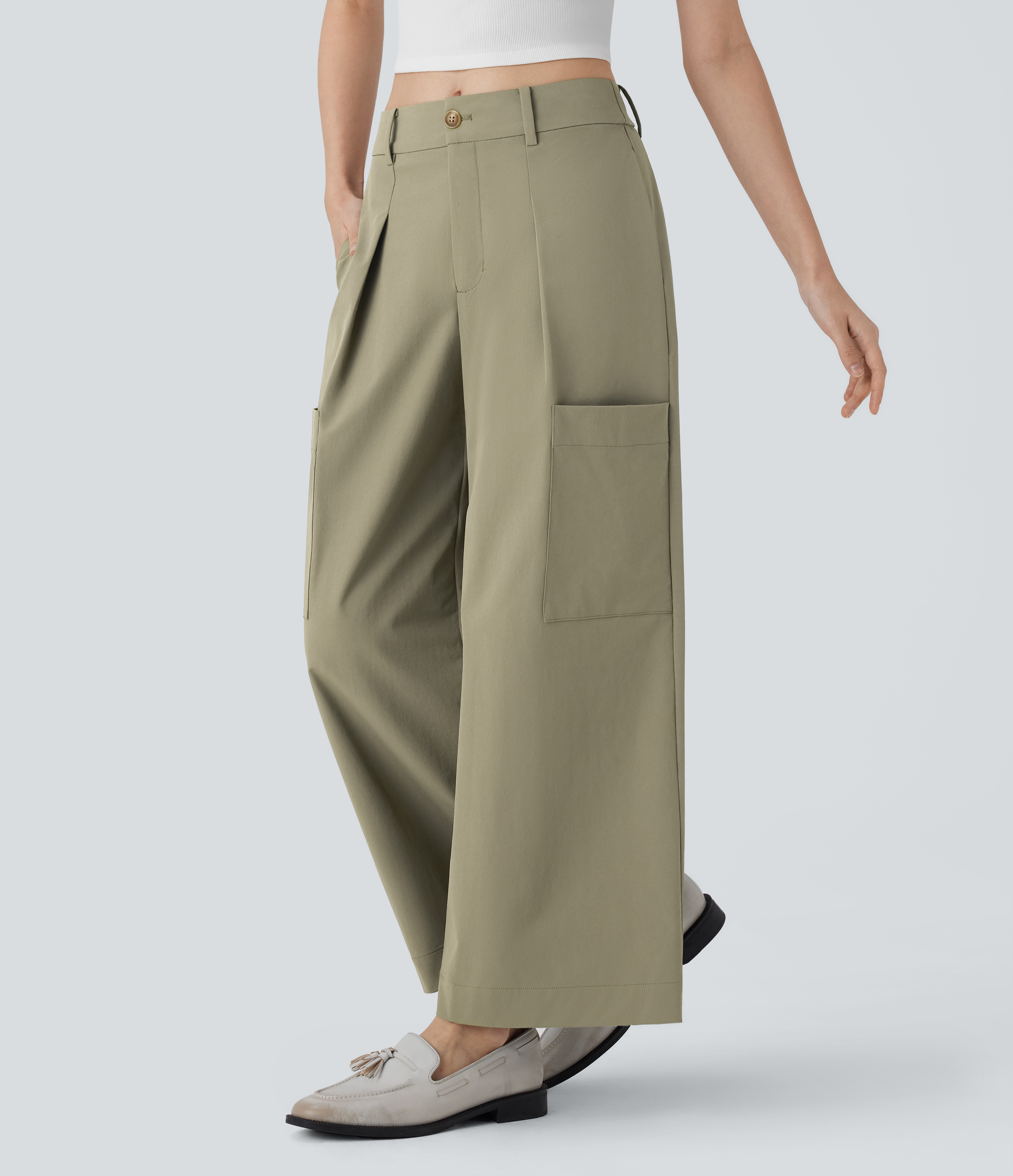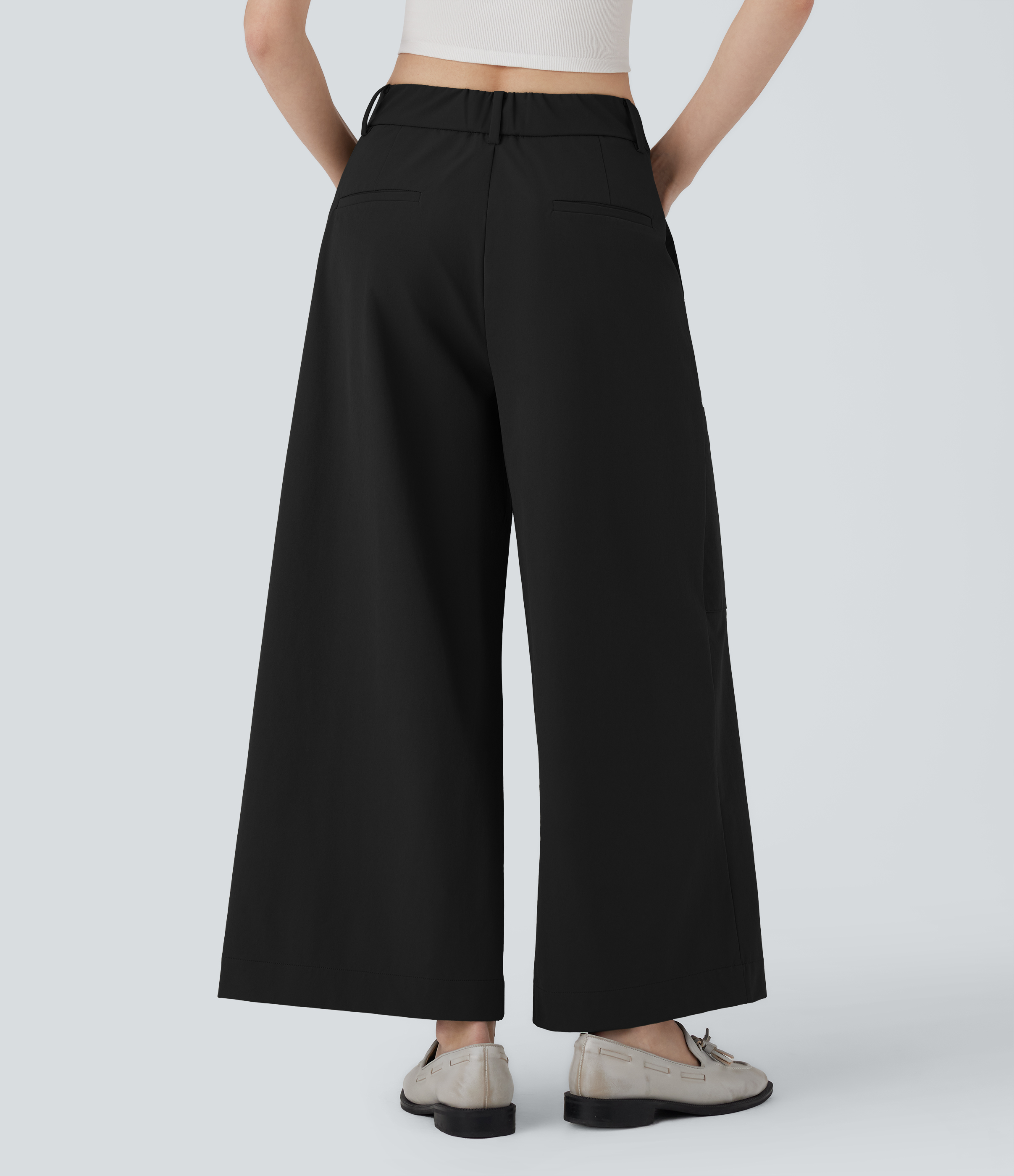 - Wide leg style gives a timeless look, while providing comfortable wear.