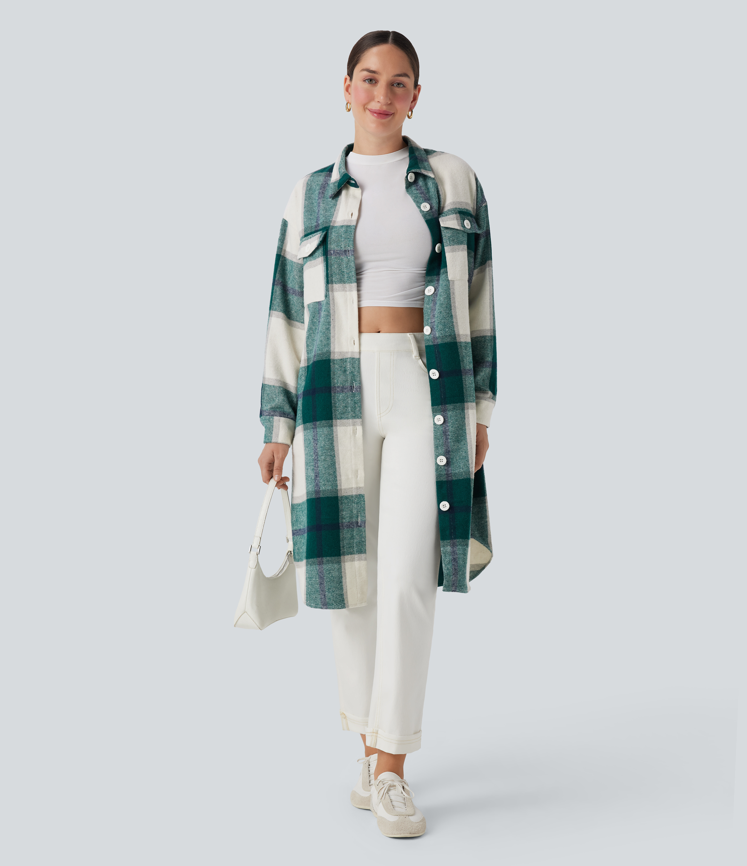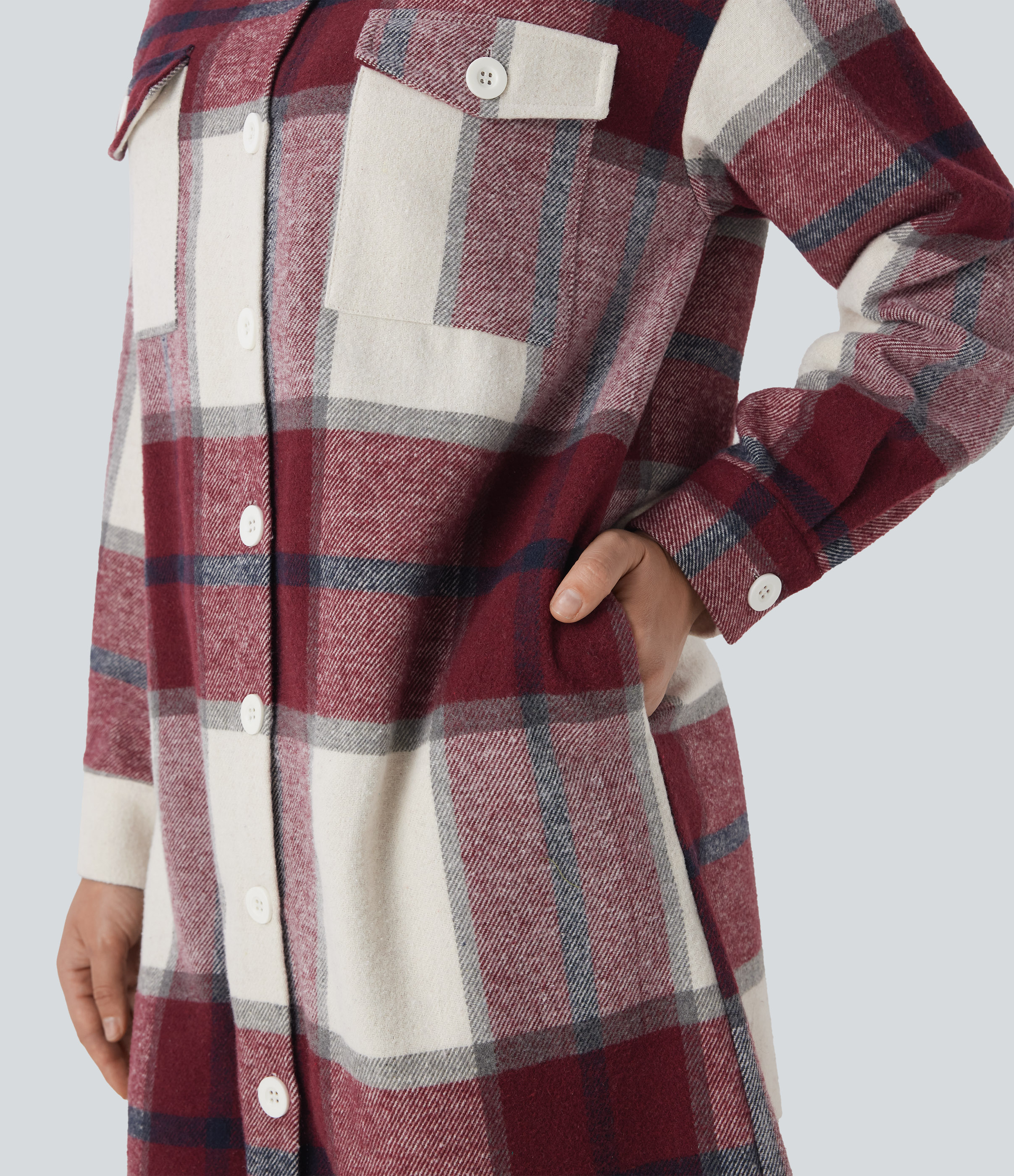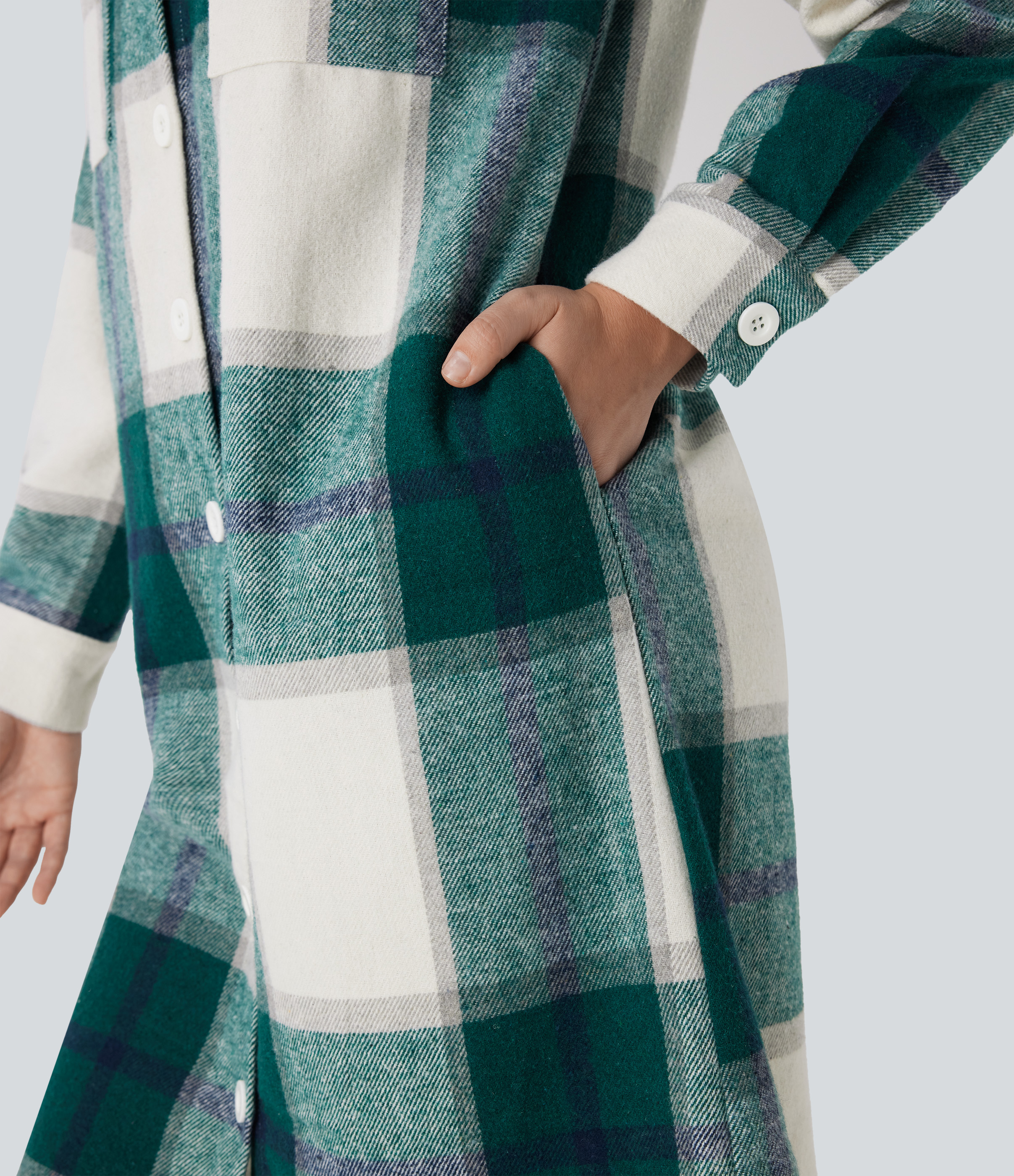 - Plaid patterning in multi-colored tartan design for a bold and versatile look.
