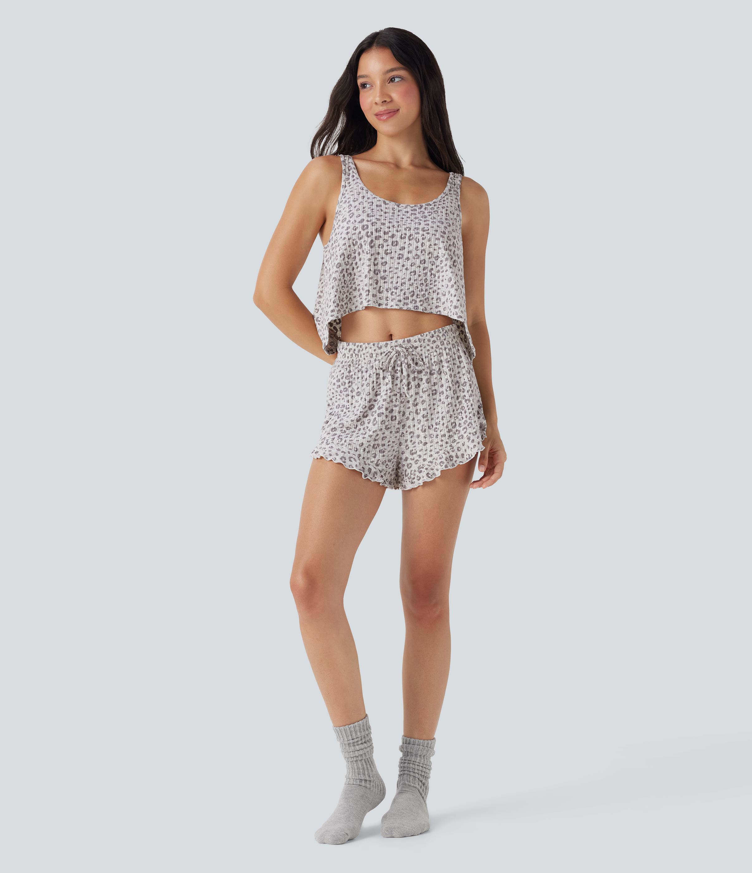 Scoop Neck High Low Leopard Print Lounge Tank Top