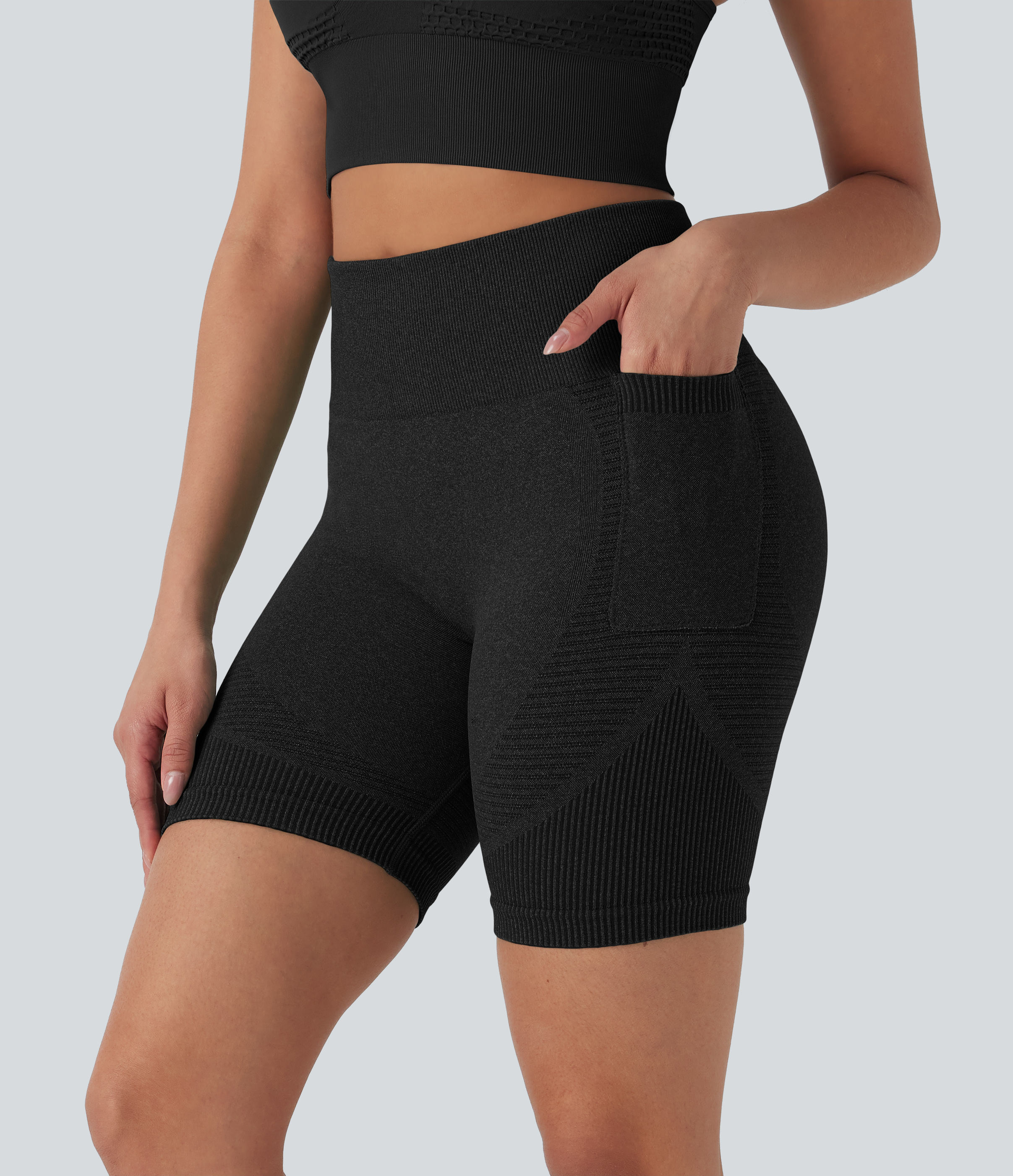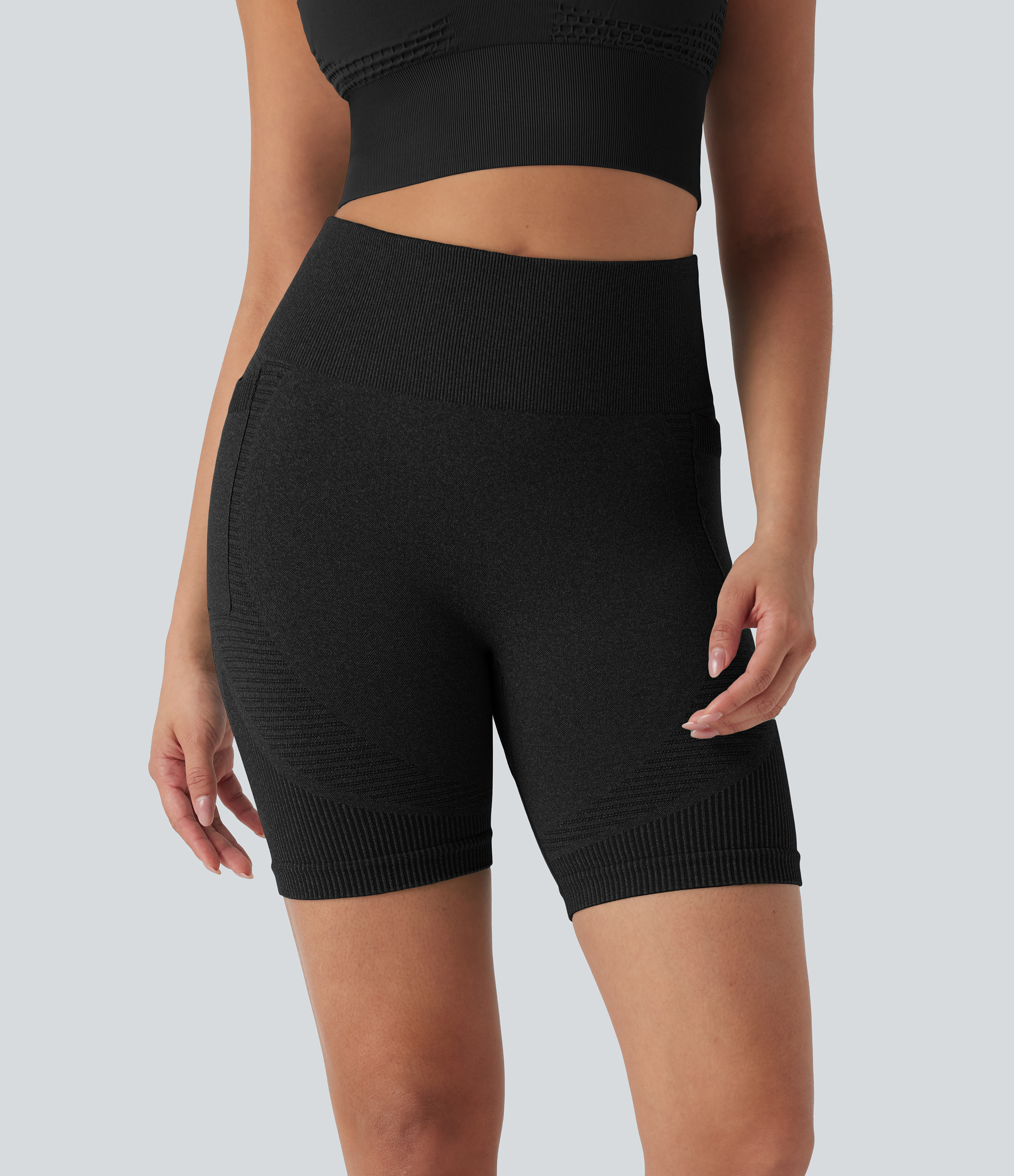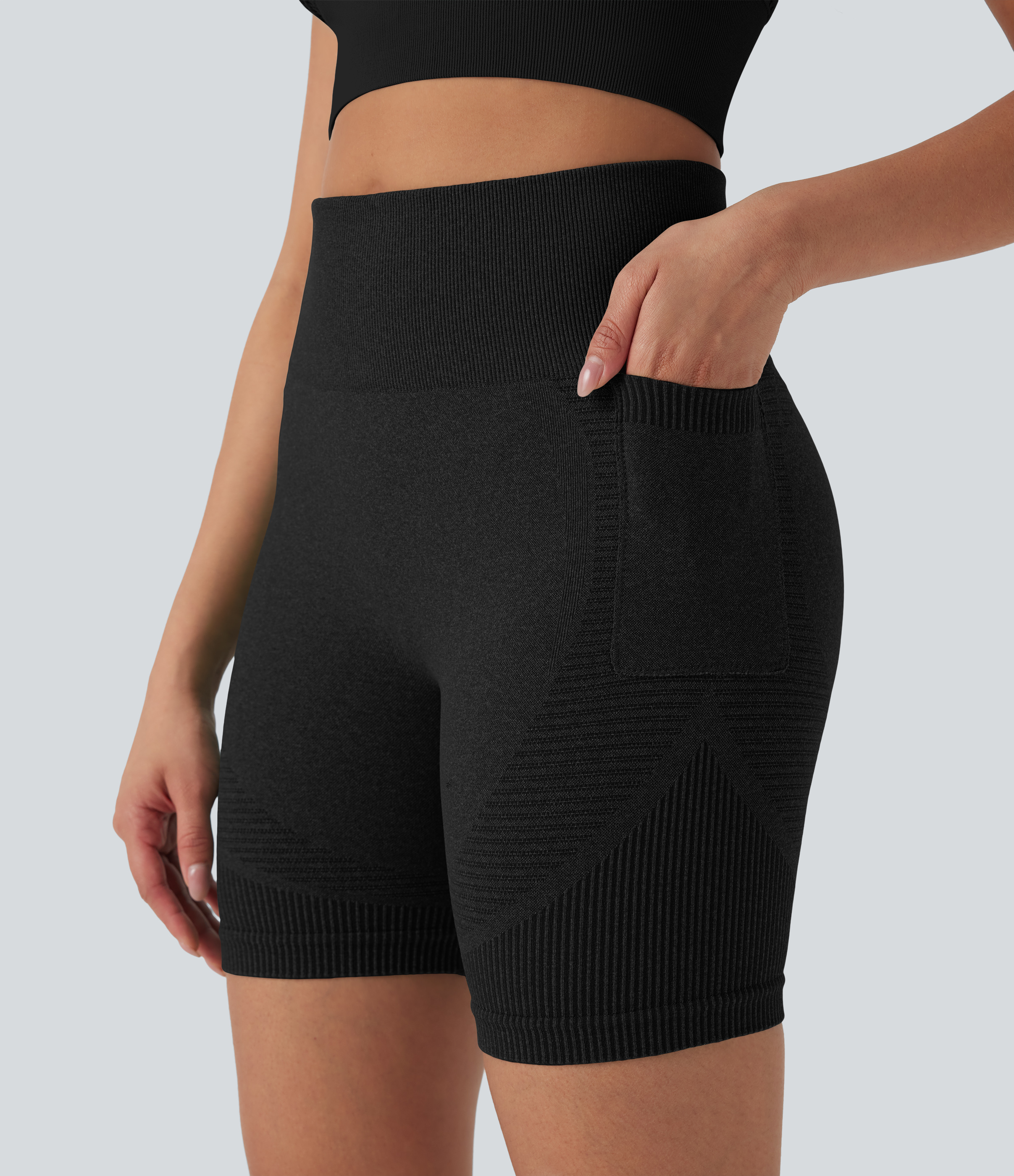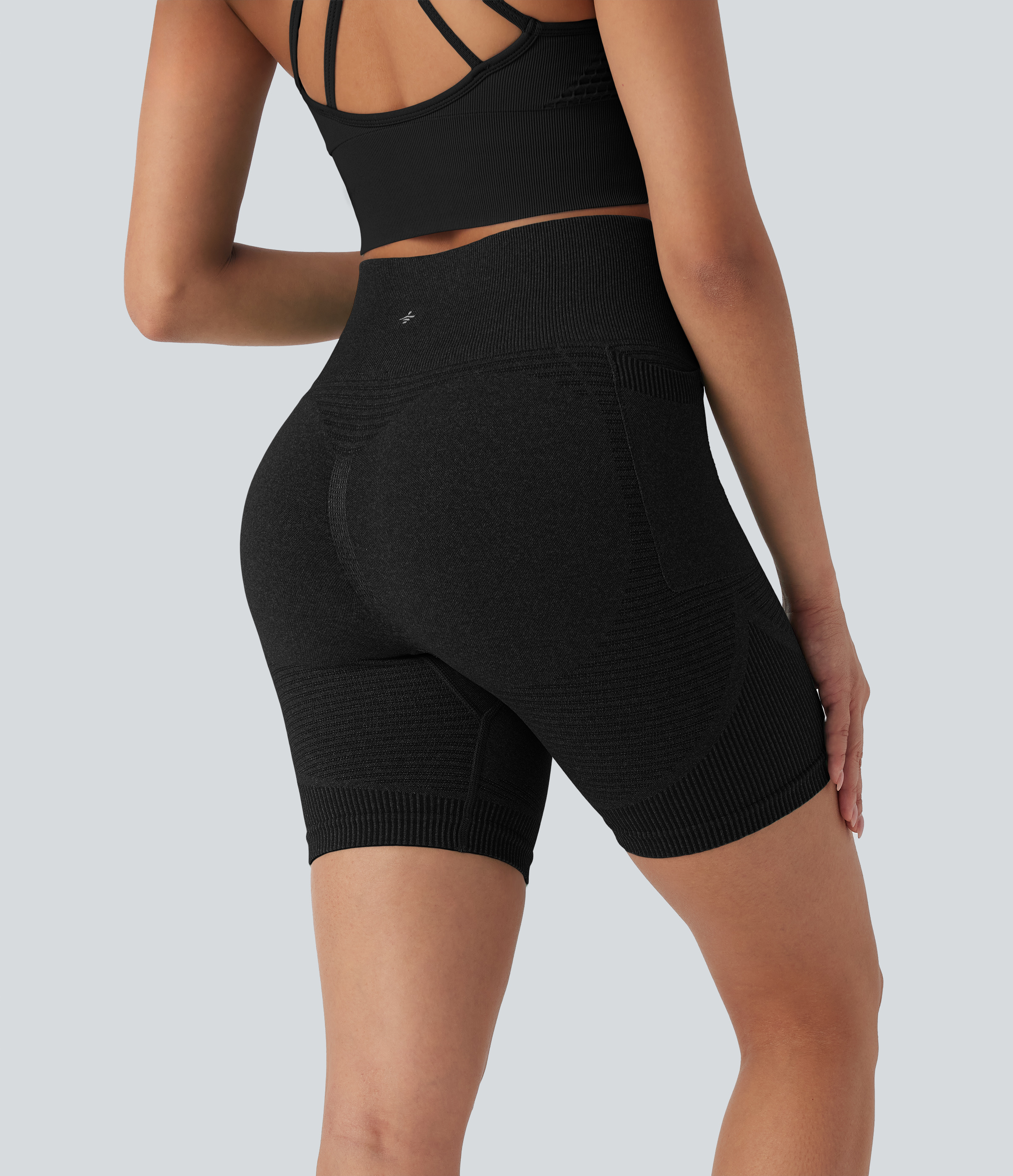 Seamless Flow High Waisted Yoga Biker Shorts 7'' with Pockets