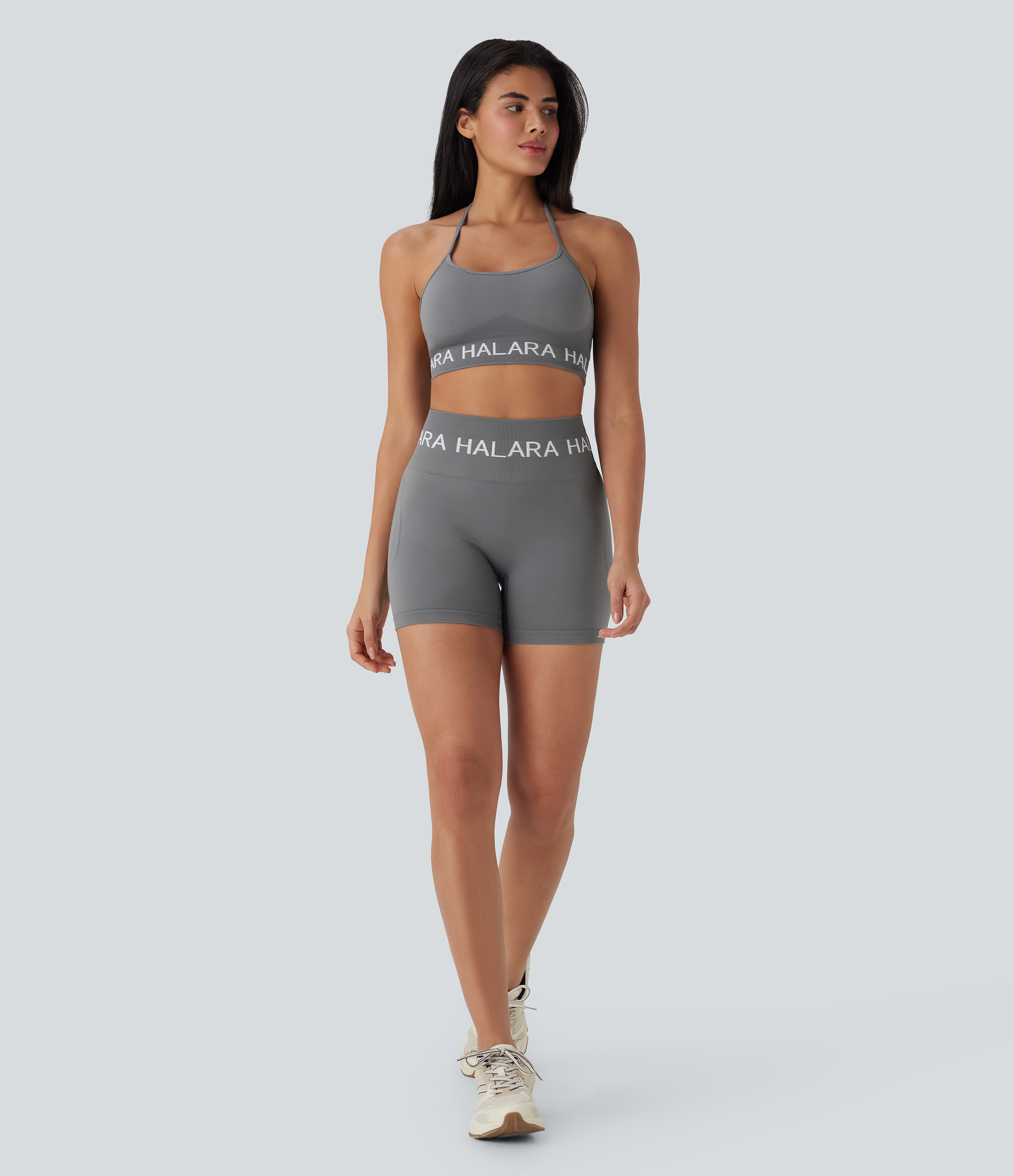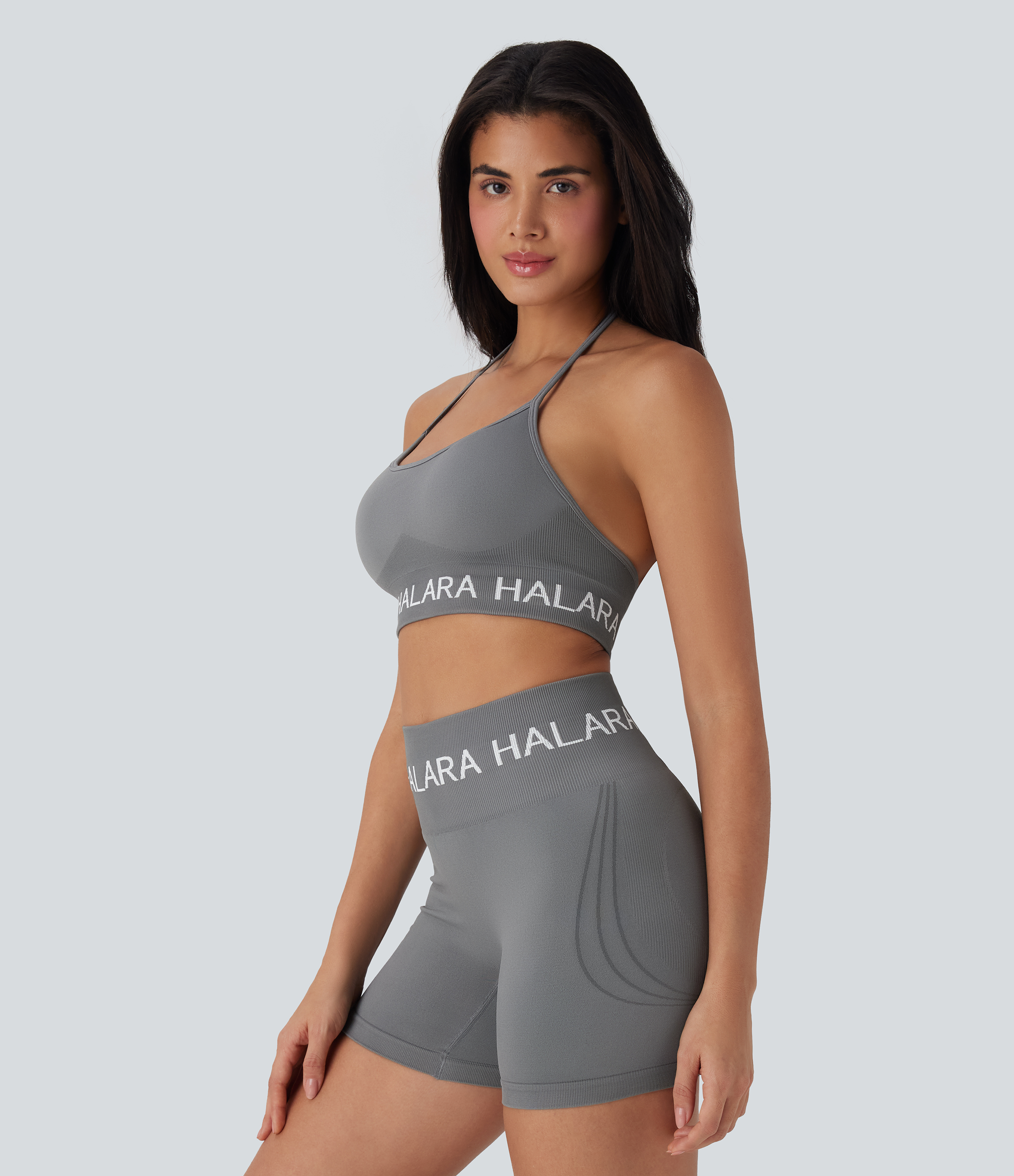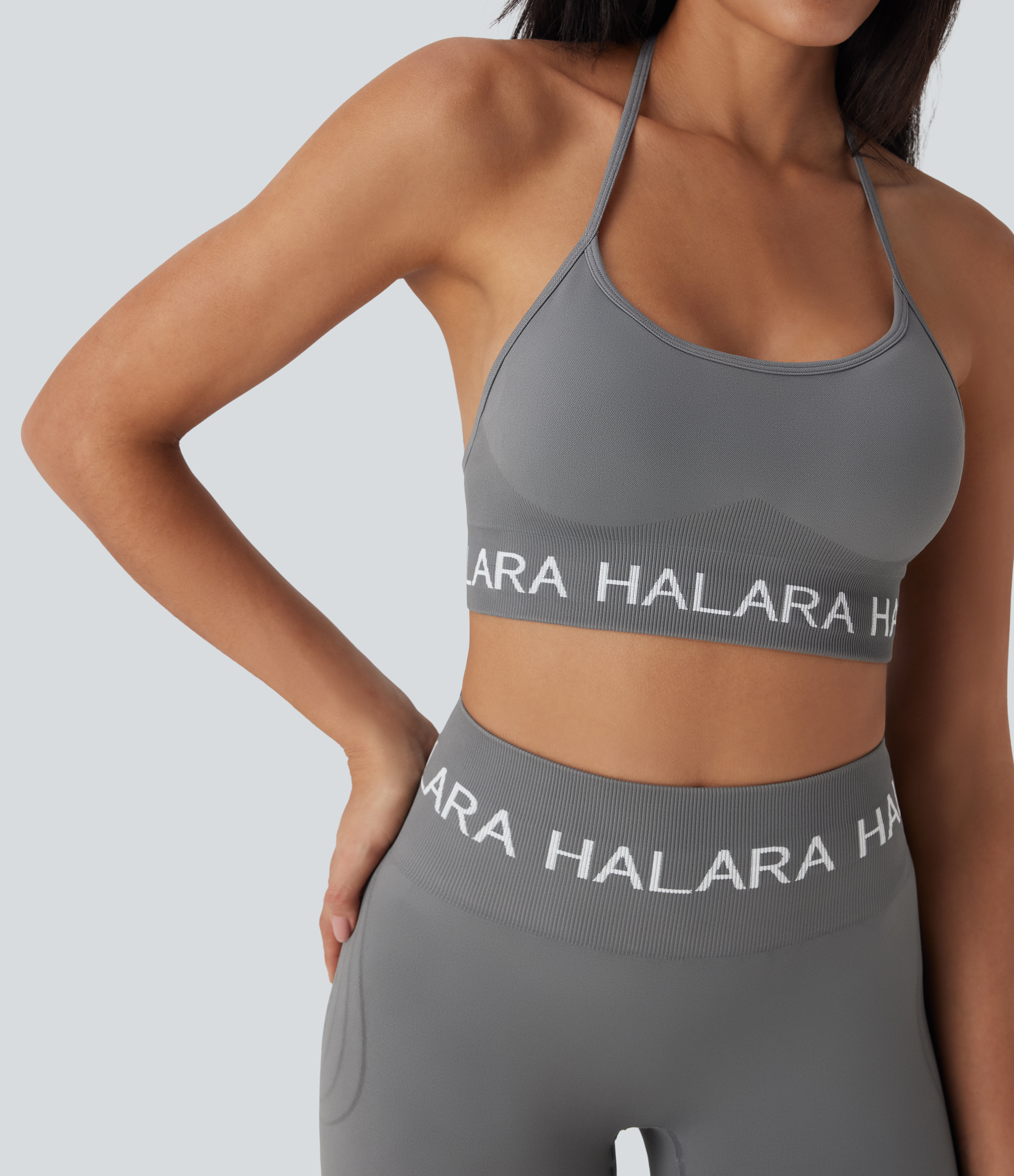 Seamless Flow Low Support Halara Logo Halter Yoga Sports Bra