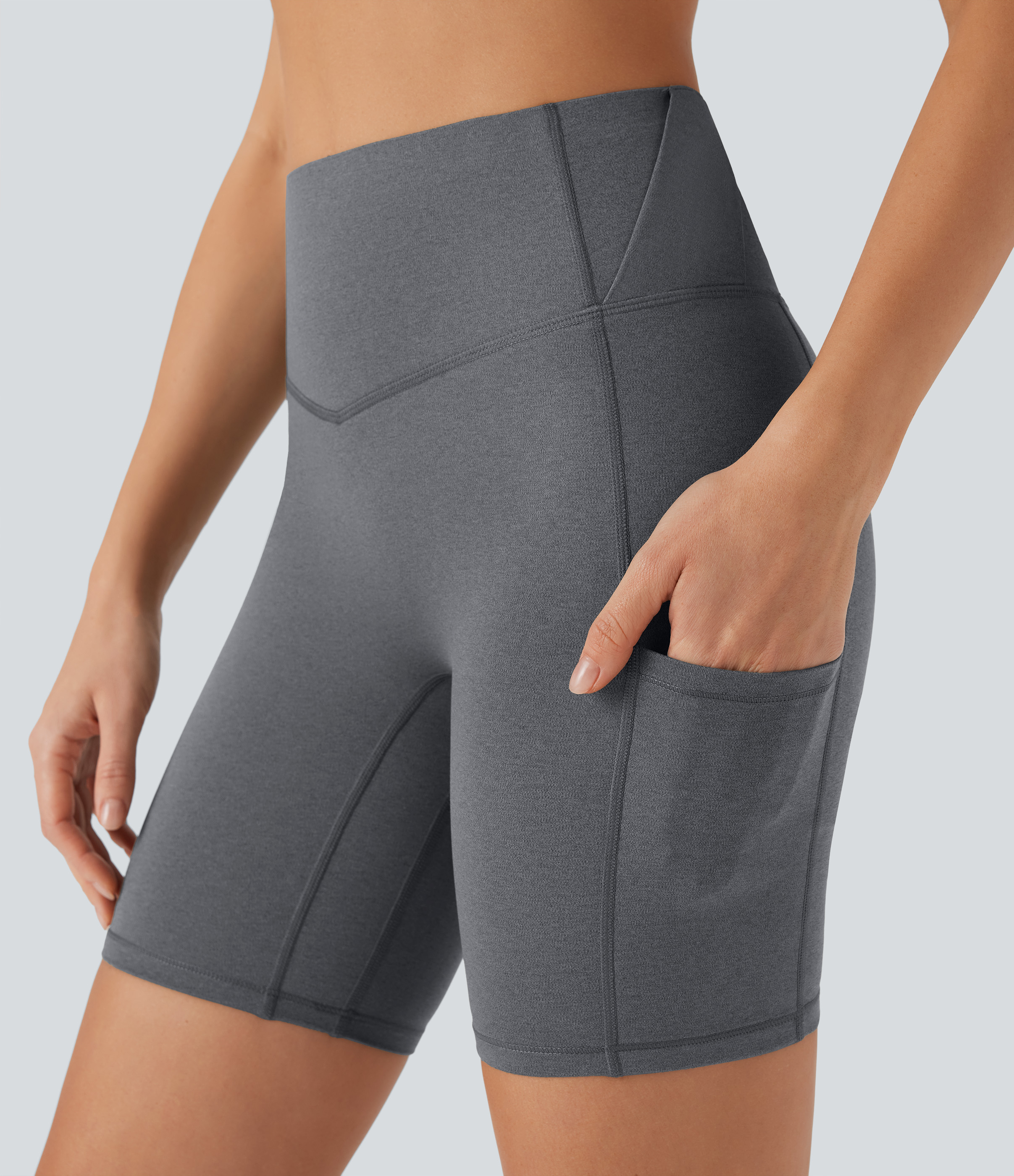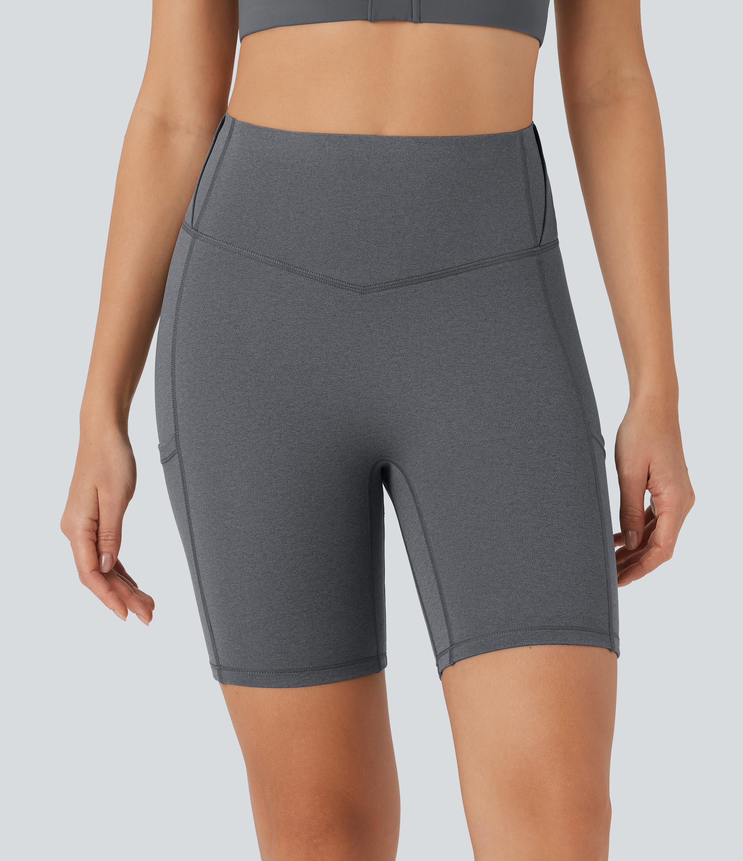 • SoCinched High Waisted Tummy Control Loop Quick Dry Yoga Biker Shorts 7'' with Pockets