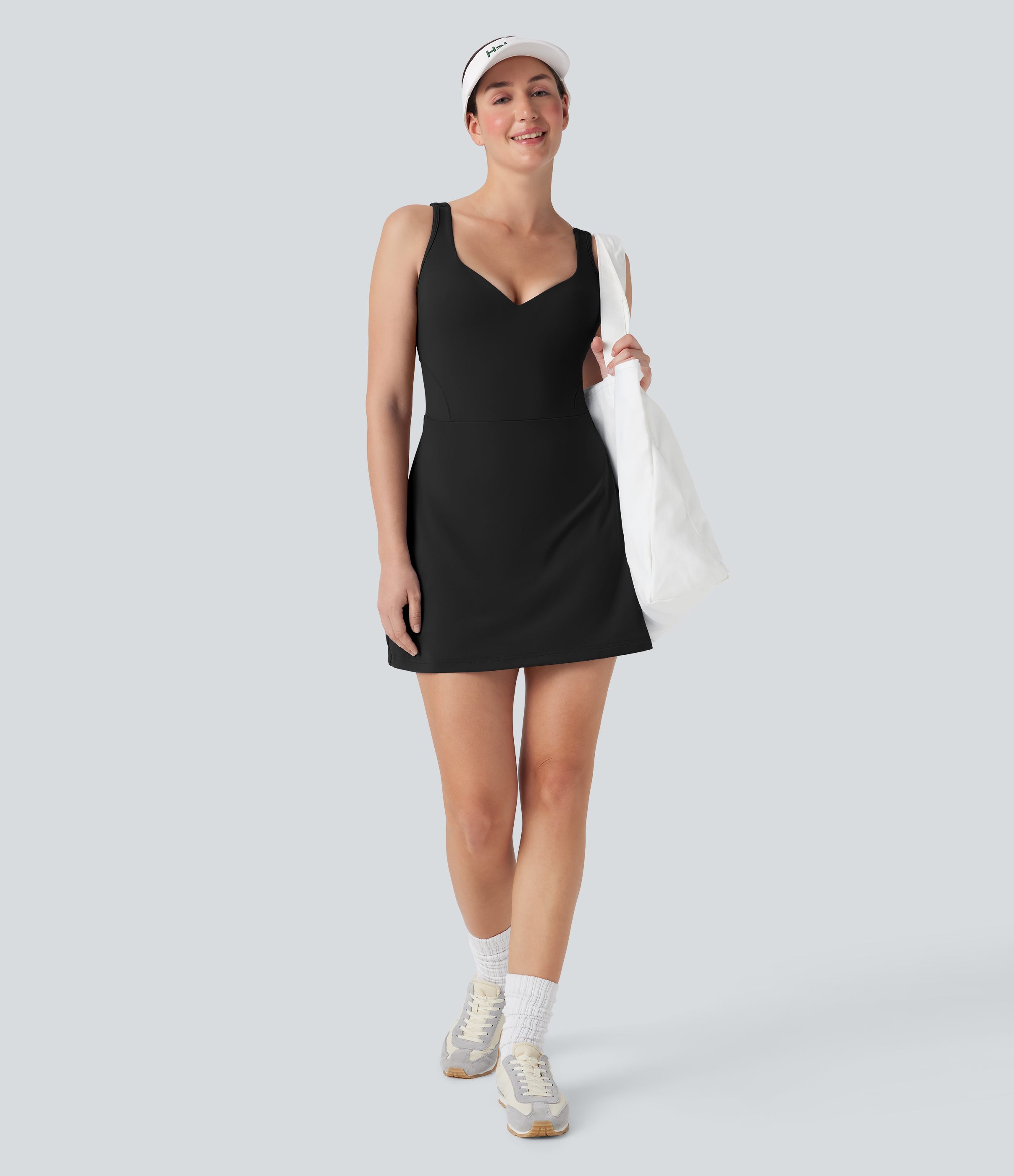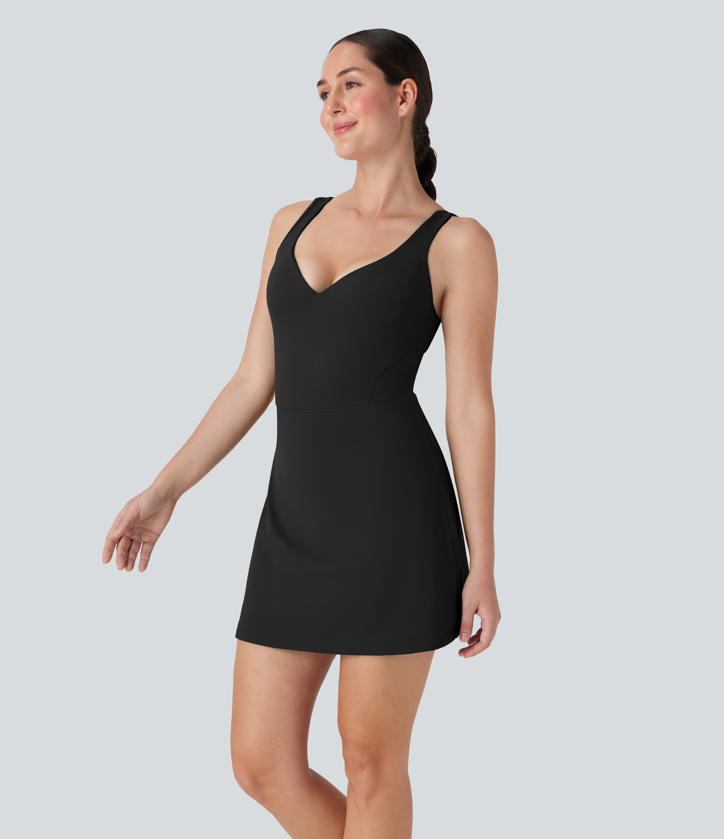 • SoftlyZeroTM Plush Push-Up Molded Cups 2-in-1 Yoga Active Dress with Pockets-Easy Peezy