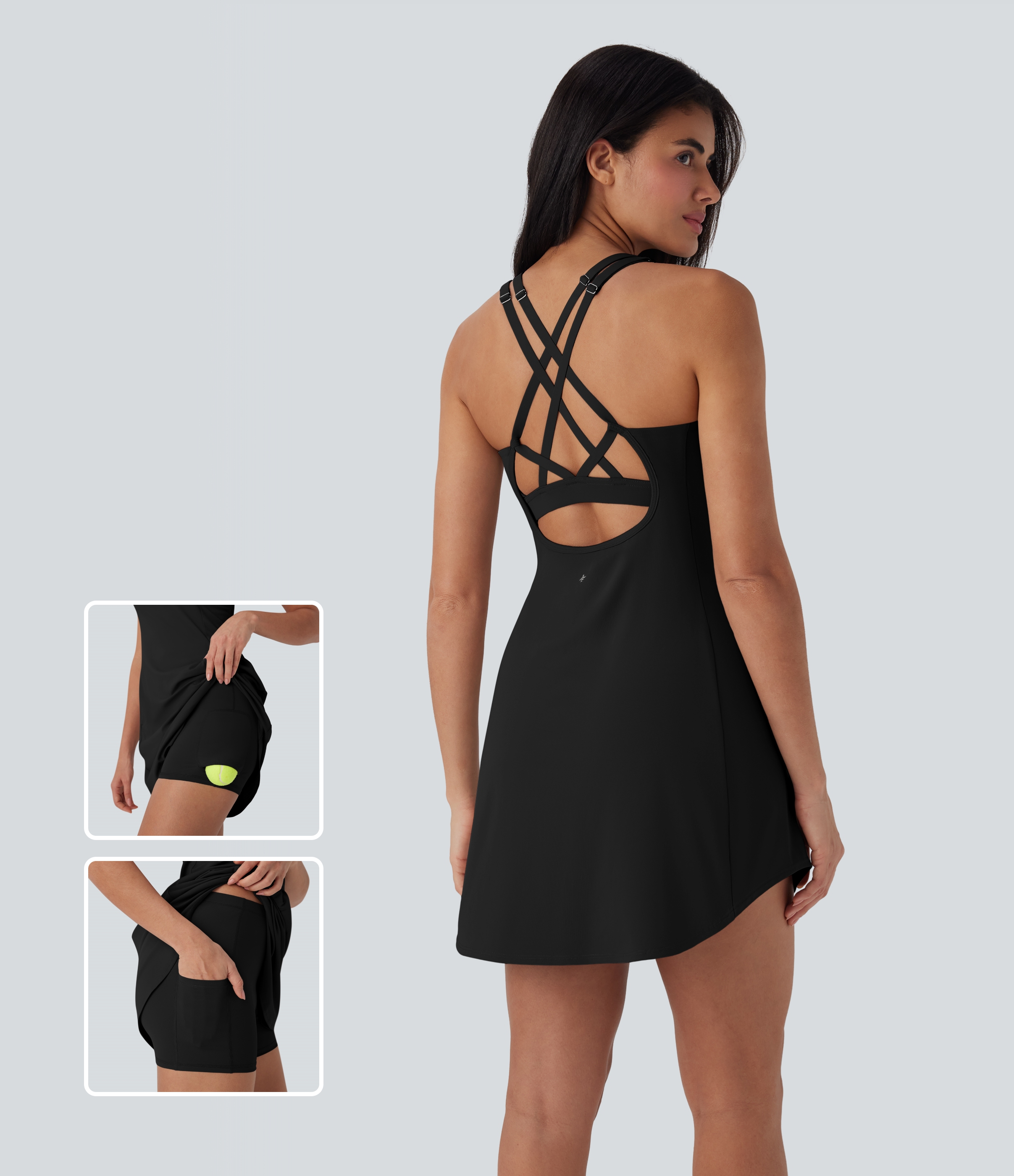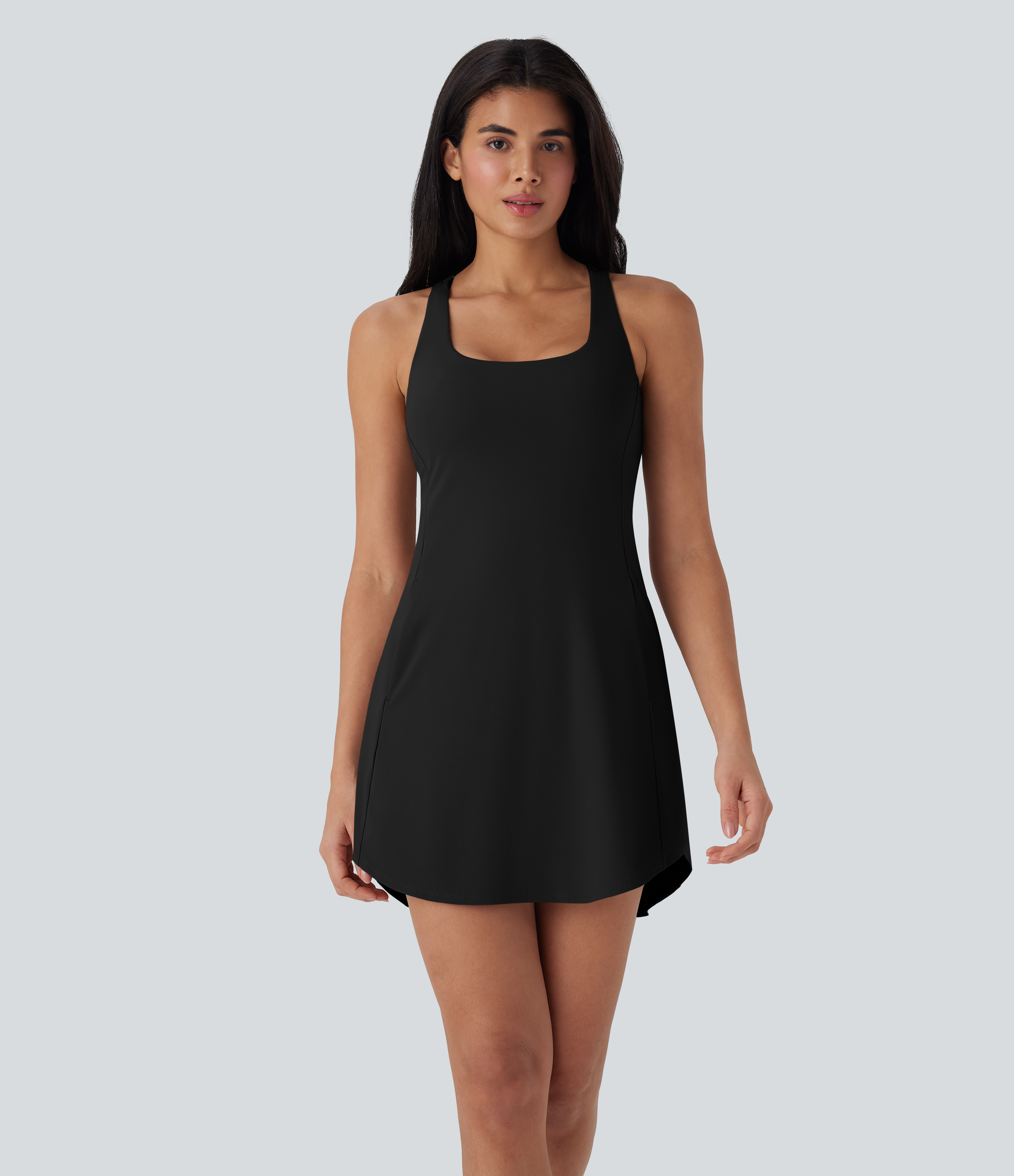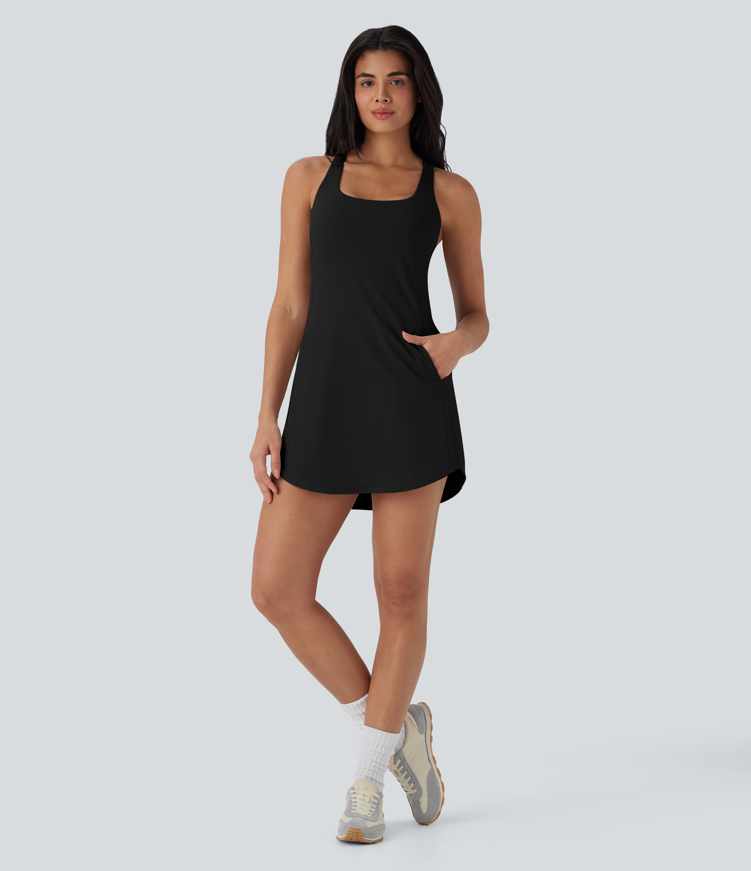 - Two-piece design with separate shorts makes for easy-on-off in this dress.