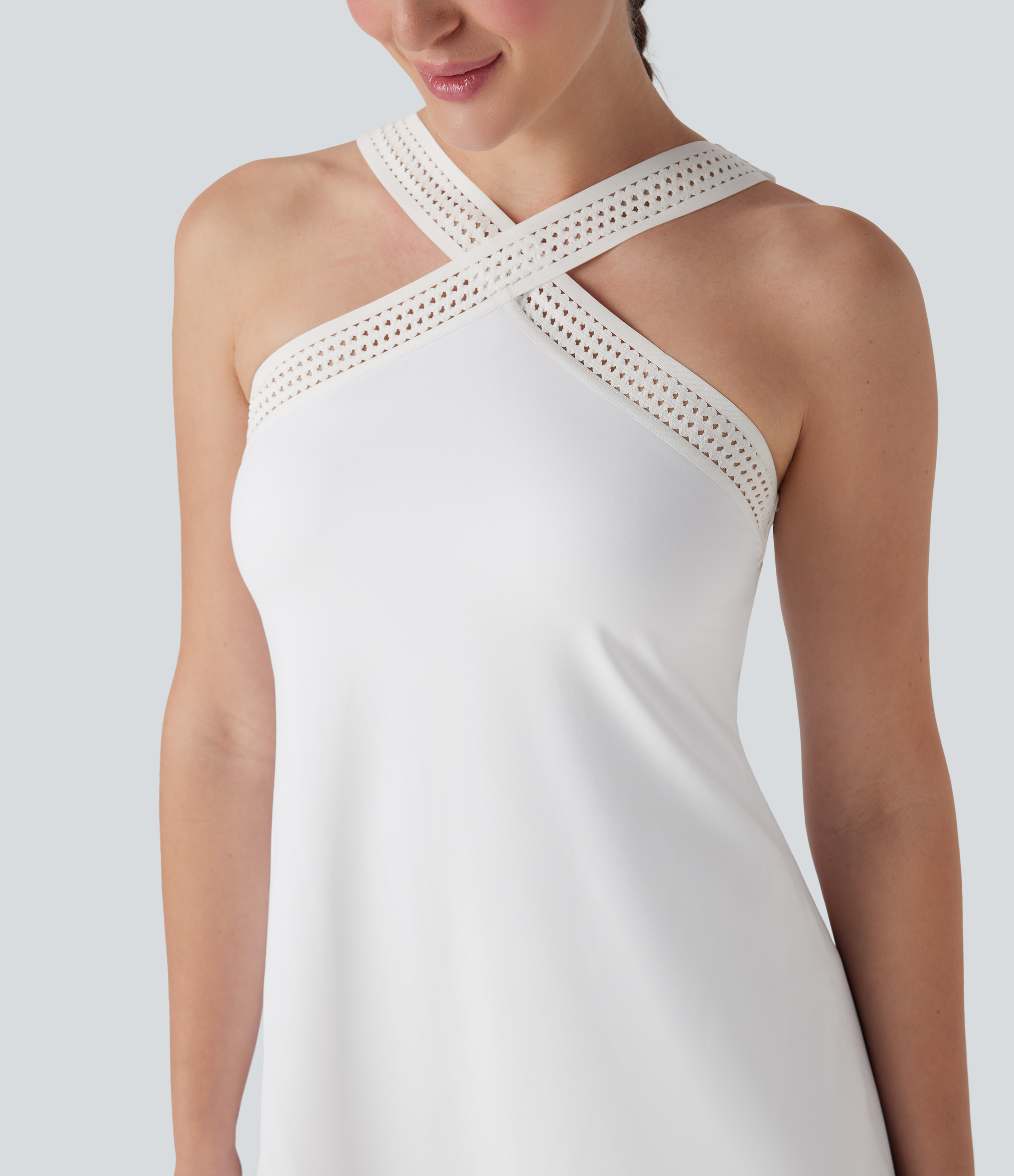• SoftlyzeroTM Airy Halter Cut Out Backless 2-in-1 Cool Touch Mini Yoga Active Dress with Side Pockets-Easy Peezy Edition-UPF50+