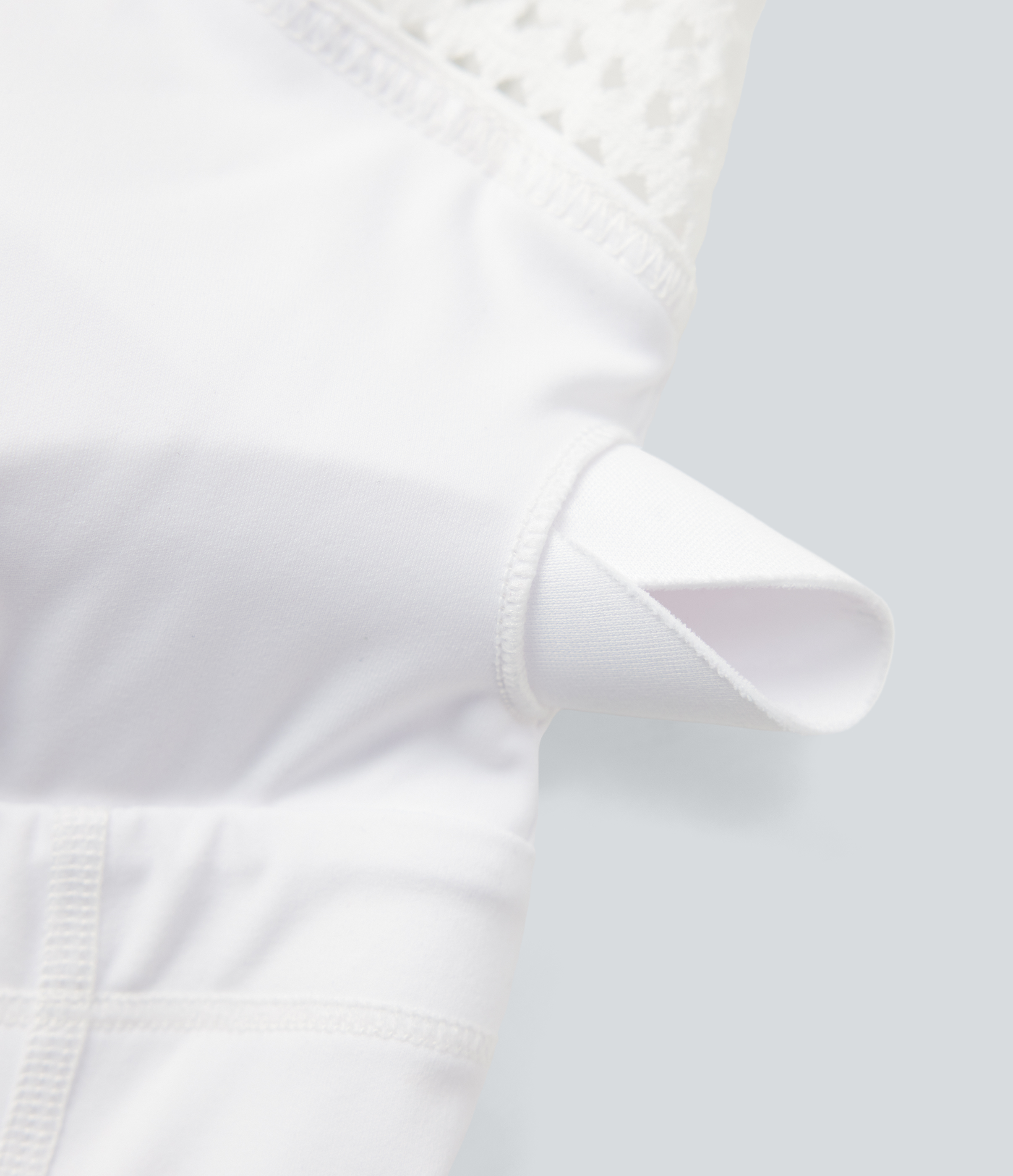 • Built-in shorts with open back waistband for easy peezy bathroom breaks.