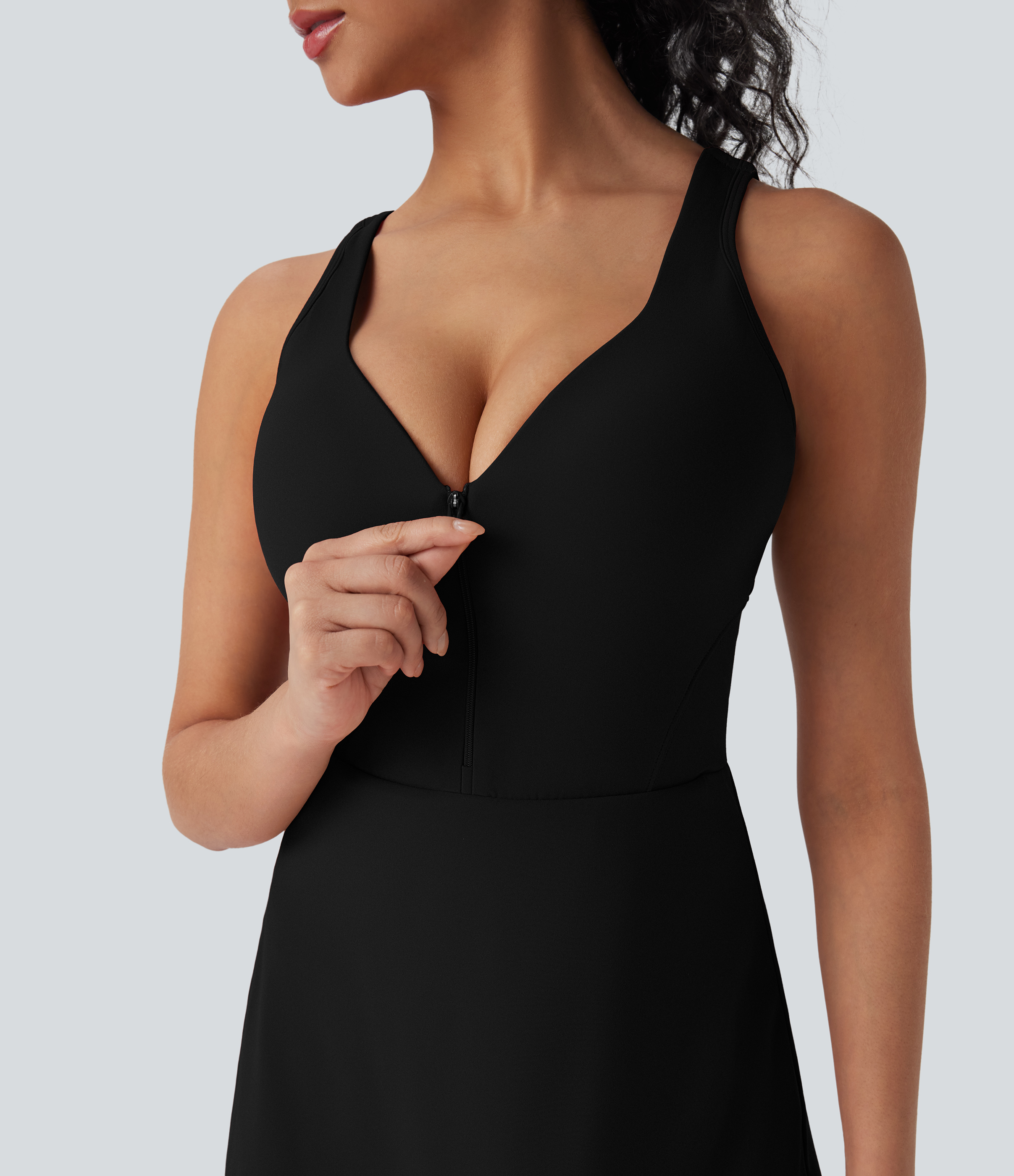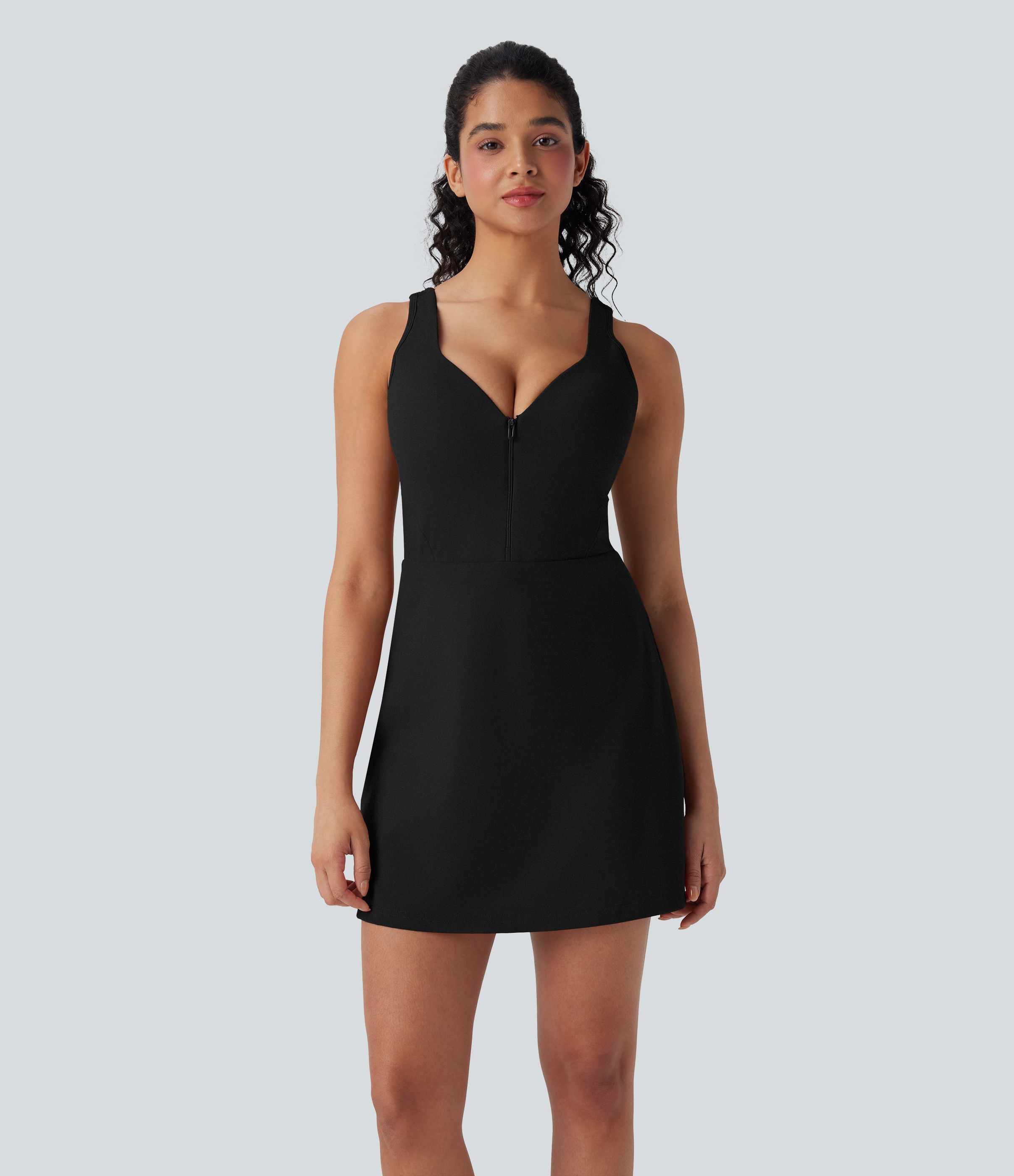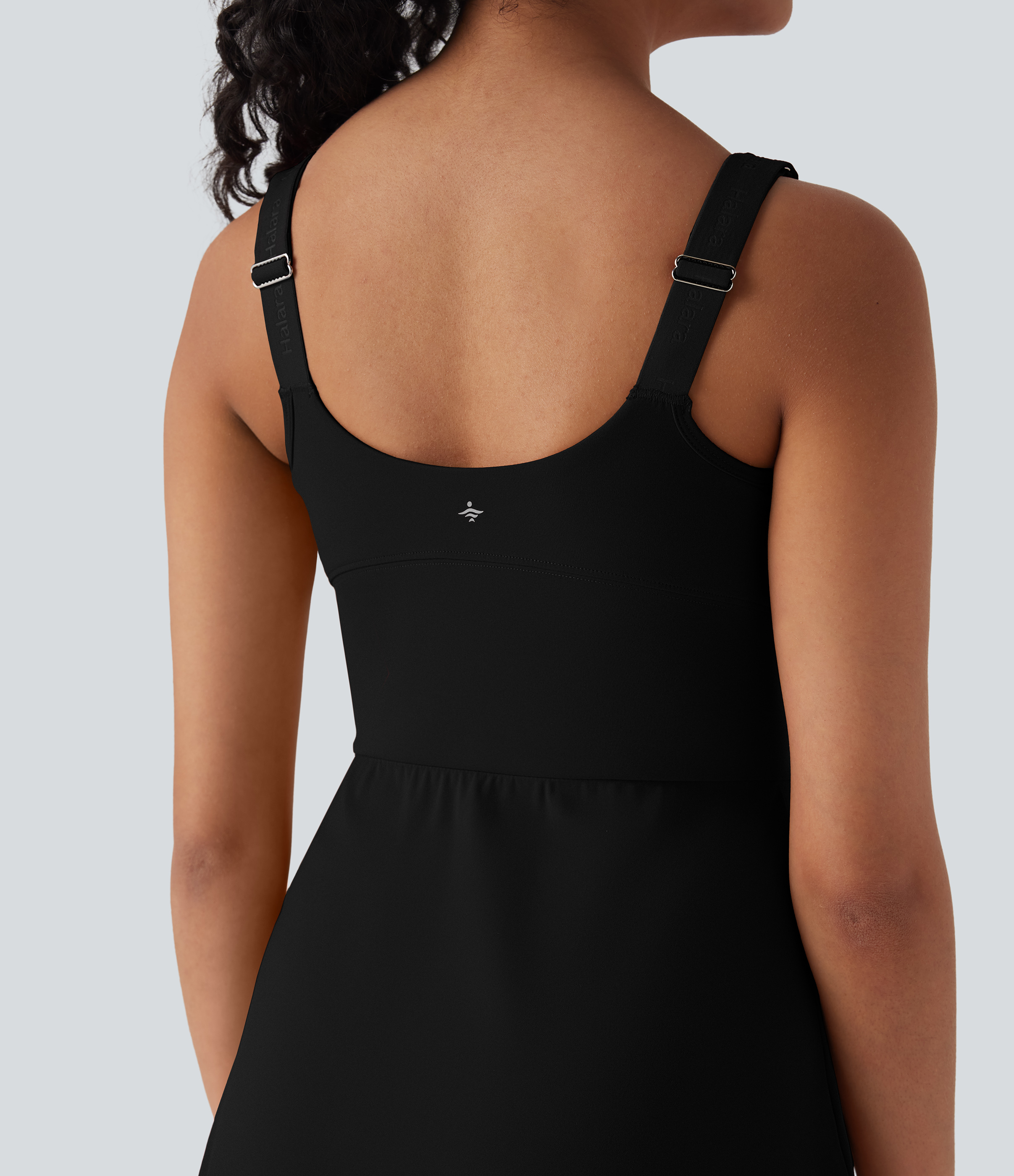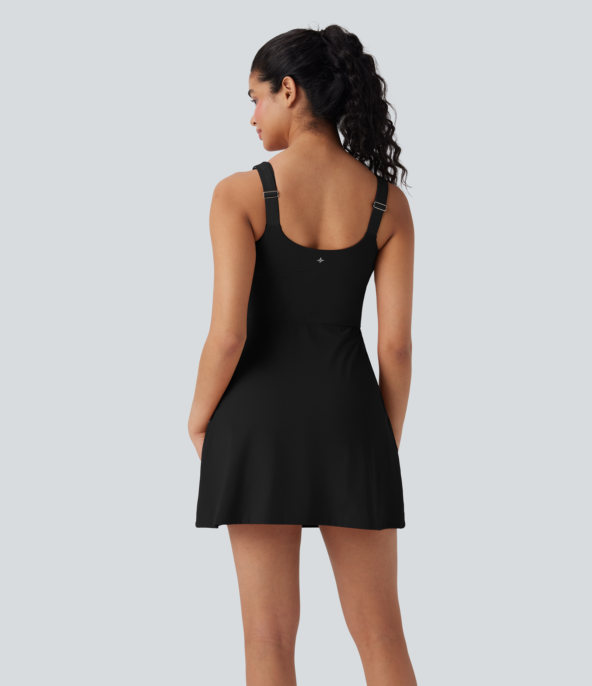 - Built-in shorts with open back waistband for easy peezy bathroom breaks.