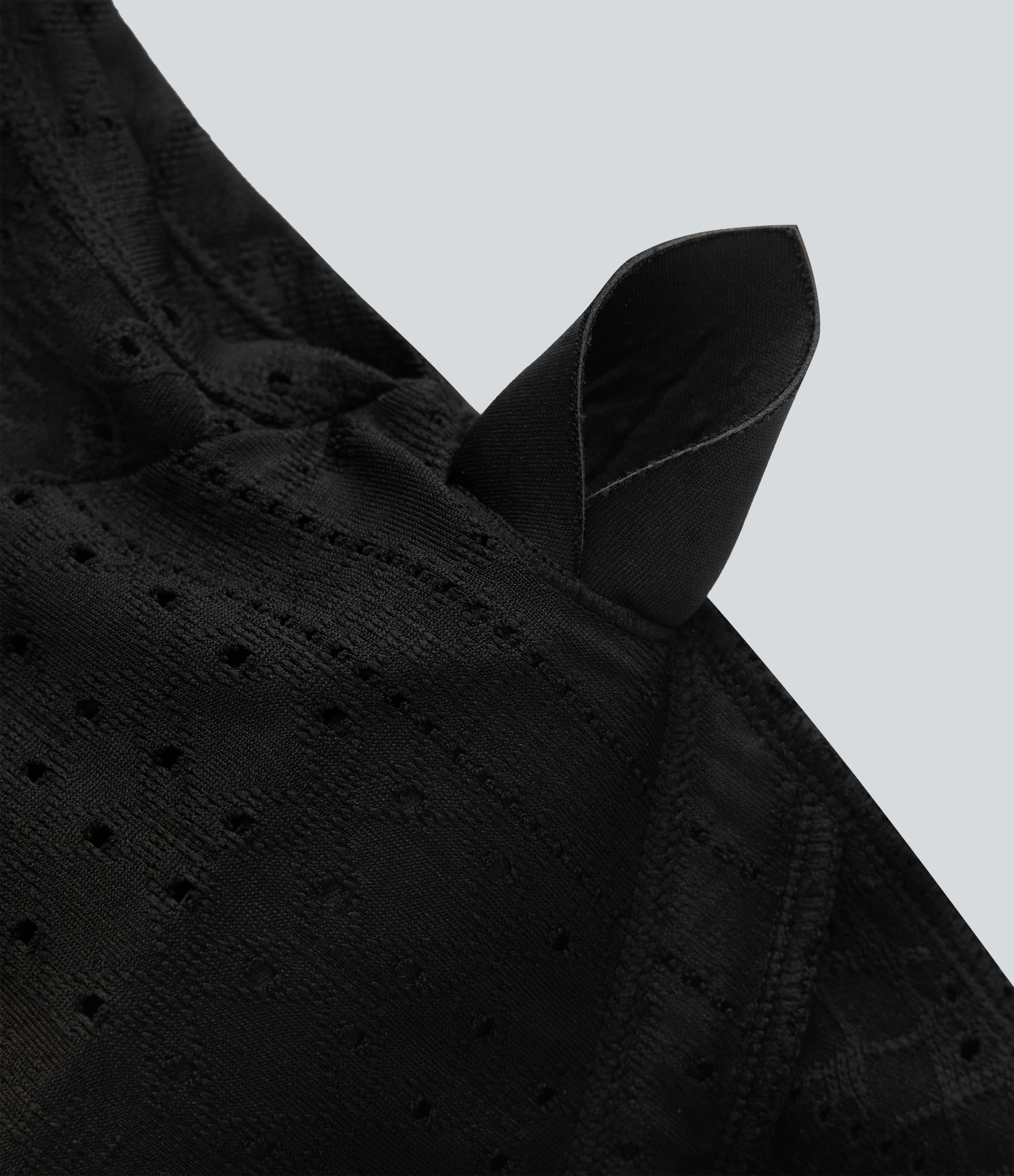 - Four-way stretch fabric offers ease of movement and durable wearability.