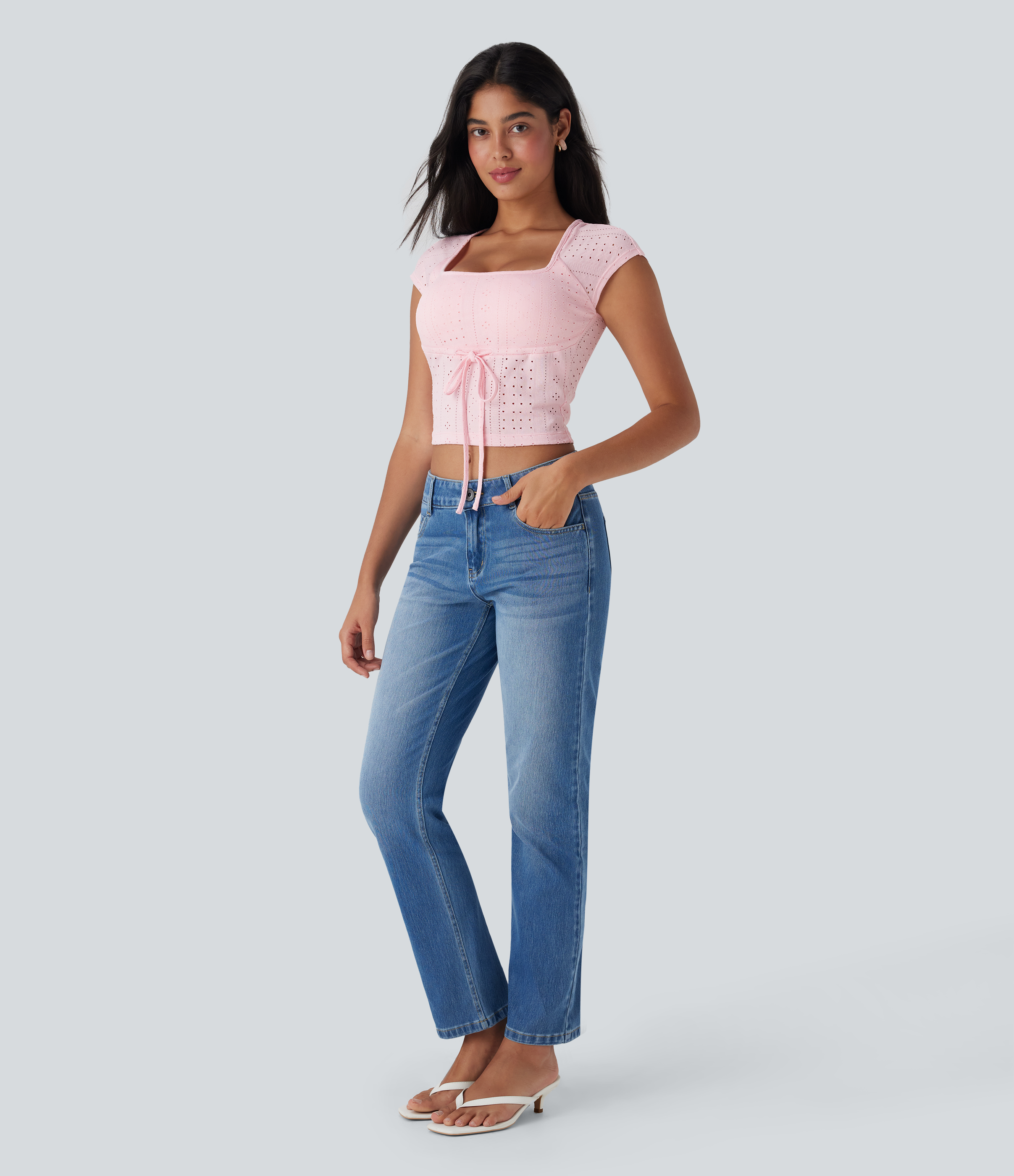 - Cropped design that allows your skin to breathe all while being cute & trendy. Perfectly pair with your favorite pants, skirts, leggings, joggers, etc.