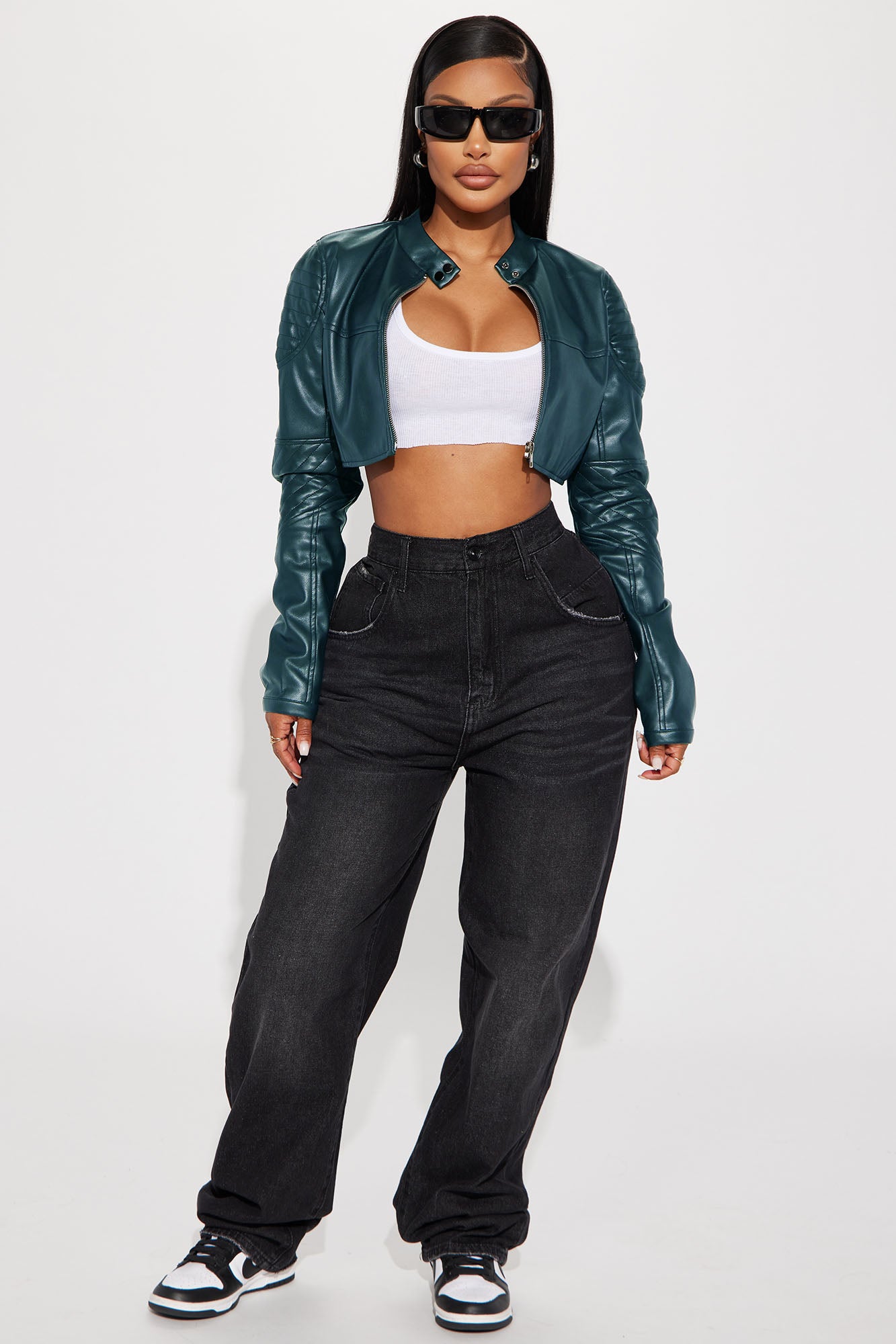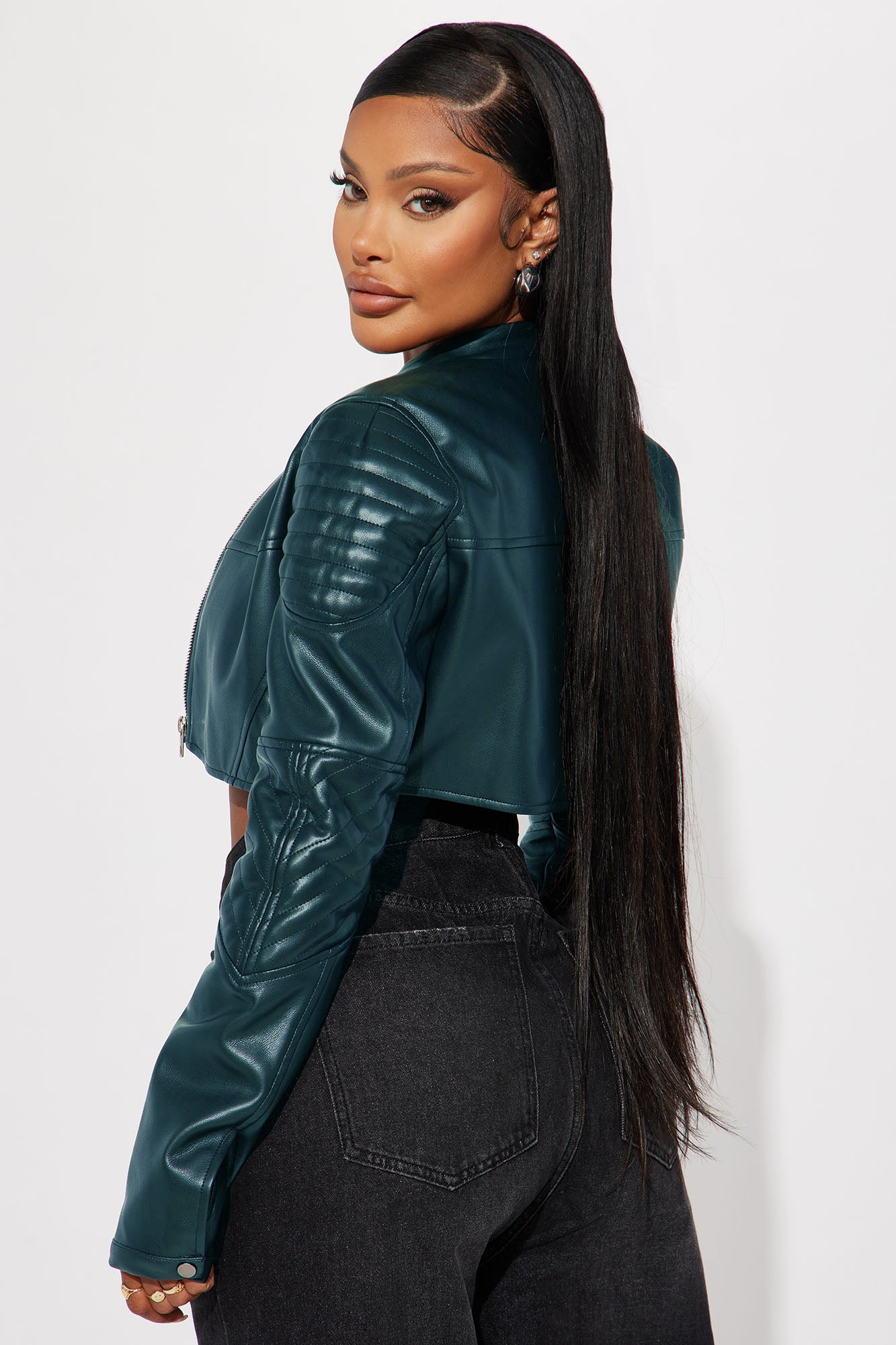 Available In Black, Burgundy, Chocolate, Olive, Red, Royal And Turquoise.Faux Leather JacketMock NeckButton ClosureFull ZipLong SleeveCroppedLinedShell: 100% Polyester Coated With PULining: 100% PolyesterImported