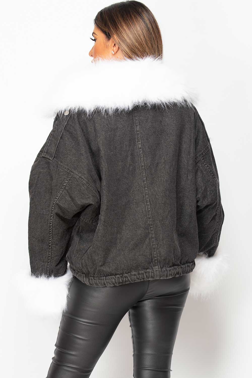 This oversized denim jacket with white faux fur collar will keep your style game bang on trend in this new season. Featuring denim fabric detachable soft fur lining and faux fur detachable collar and cuffs. Style it with our cute crop JUMPER and high waisted jeans to complete the look.