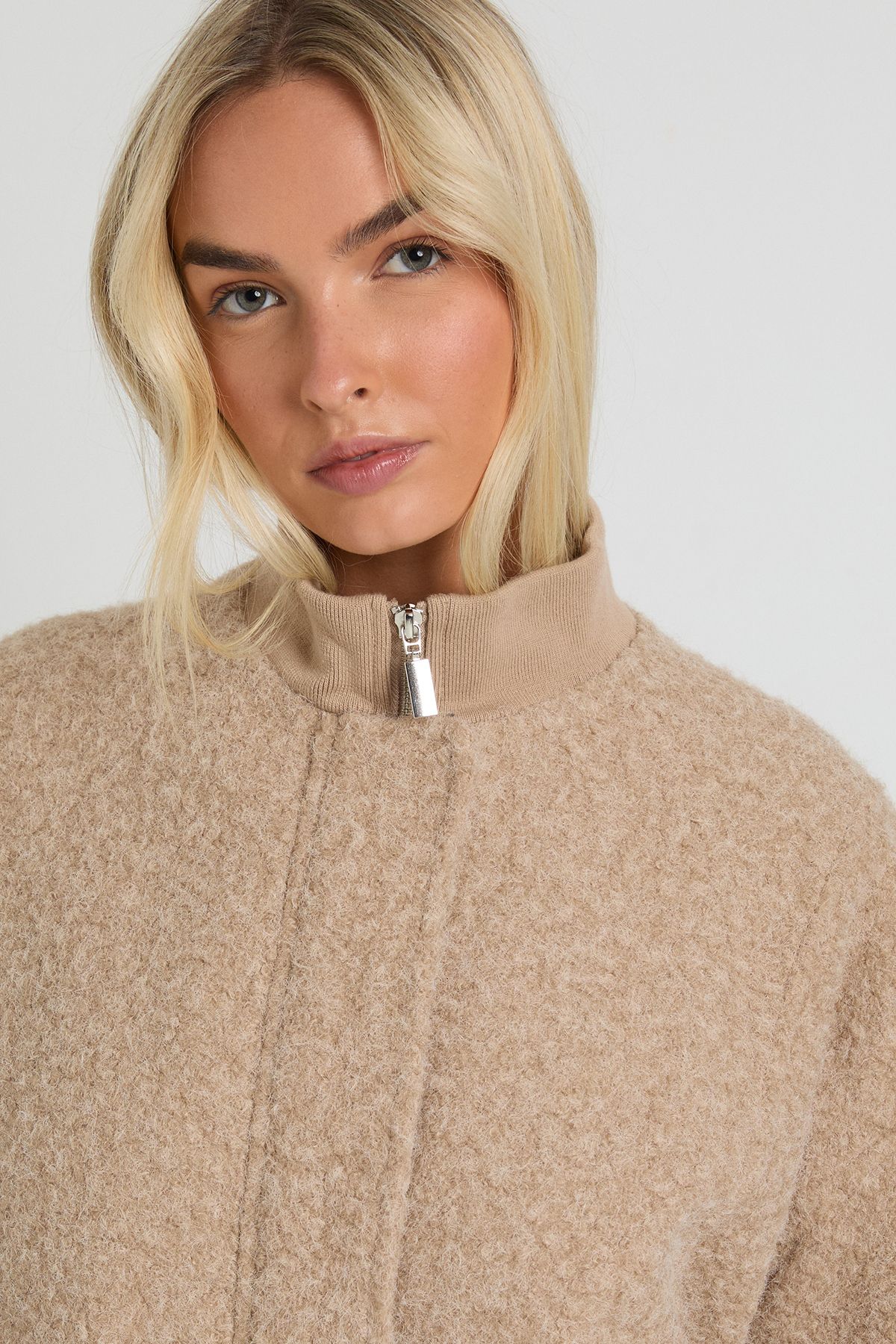 Boucle Wool Look Bomber Jacket