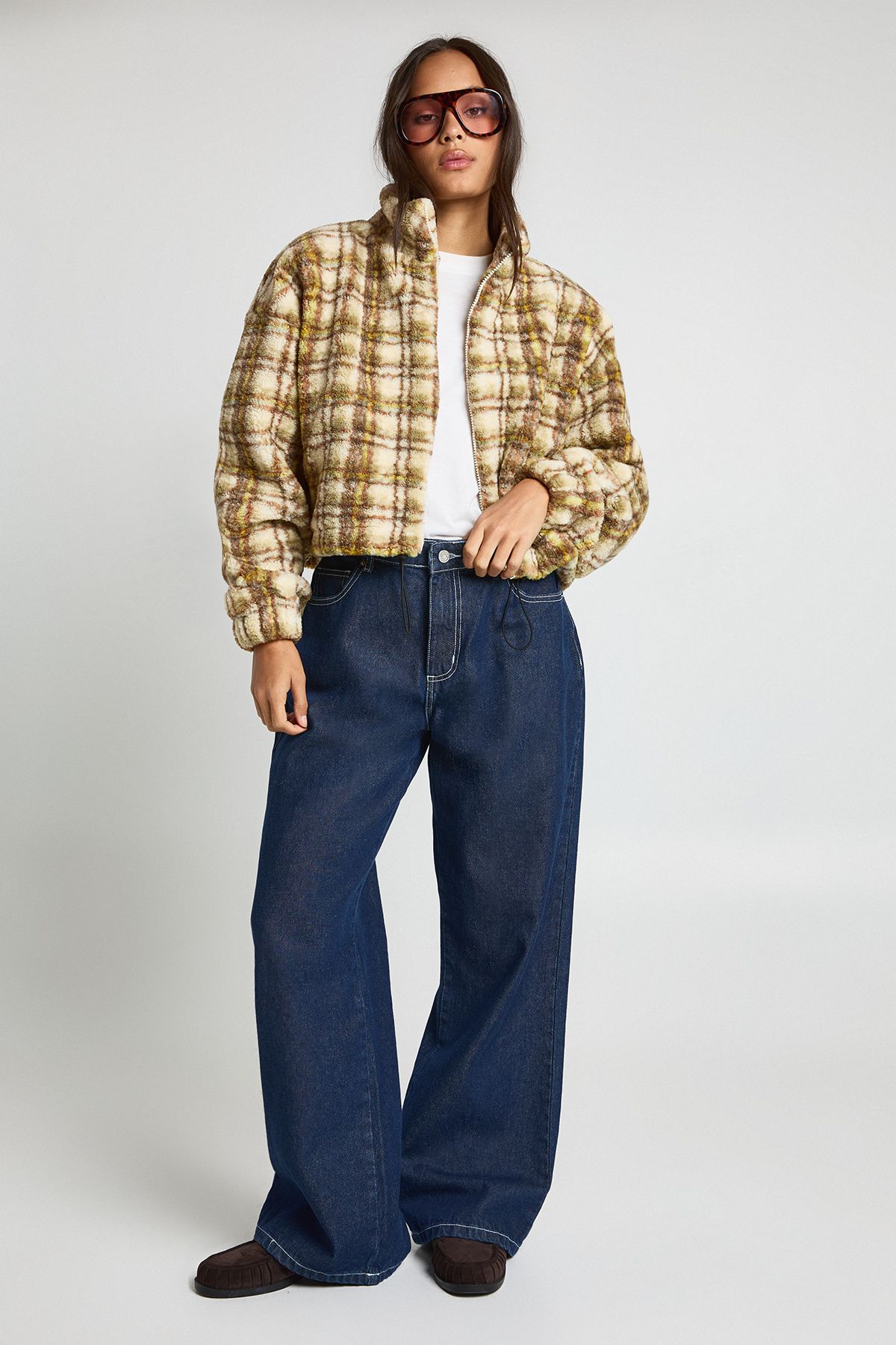 - Soft collar detail adds a touch of sophistication to this casual staple Make a statement with this Check Teddy Zip Bomber Jacket that combines comfort with contemporary style. The plush teddy texture creates a tactile dimension that's perfect for adding interest to your casual wardrobe. Style it as seen with wide-leg denim jeans and a simple white tee for an effortlessly cool weekend look. The cropped length works brilliantly with high-waisted bottoms, while the zip-through design allows for flexible styling-wear it fully closed on chillier days or open to showcase your outfit beneath. This Boohoo bomber is ideal for casual coffee dates, shopping trips with friends, or relaxed family gatherings. For transitional weather, layer over a hoodie or lightweight jumper, and pair with your favourite trainers to complete the laid-back aesthetic. A versatile piece that will quickly become your go-to for adding warmth and style to your everyday ensembles.