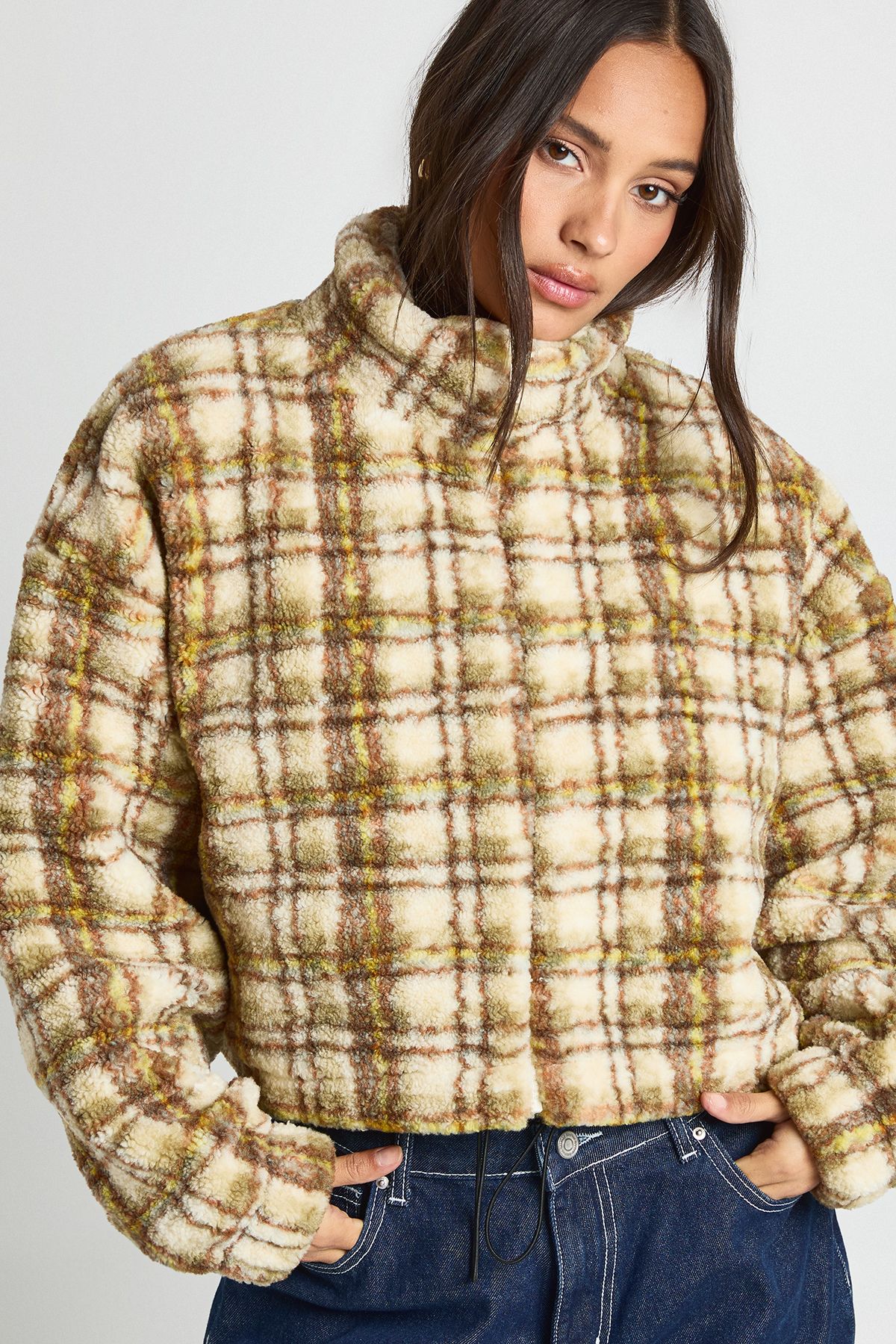 - Cosy teddy fabric with classic check pattern for a textured, on-trend look