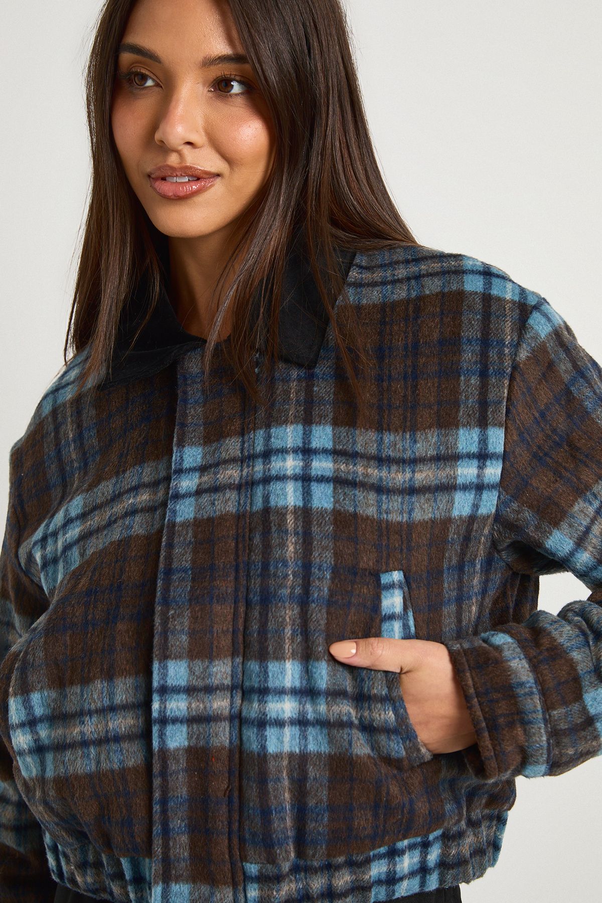 Check Wool Look Bomber Jacket