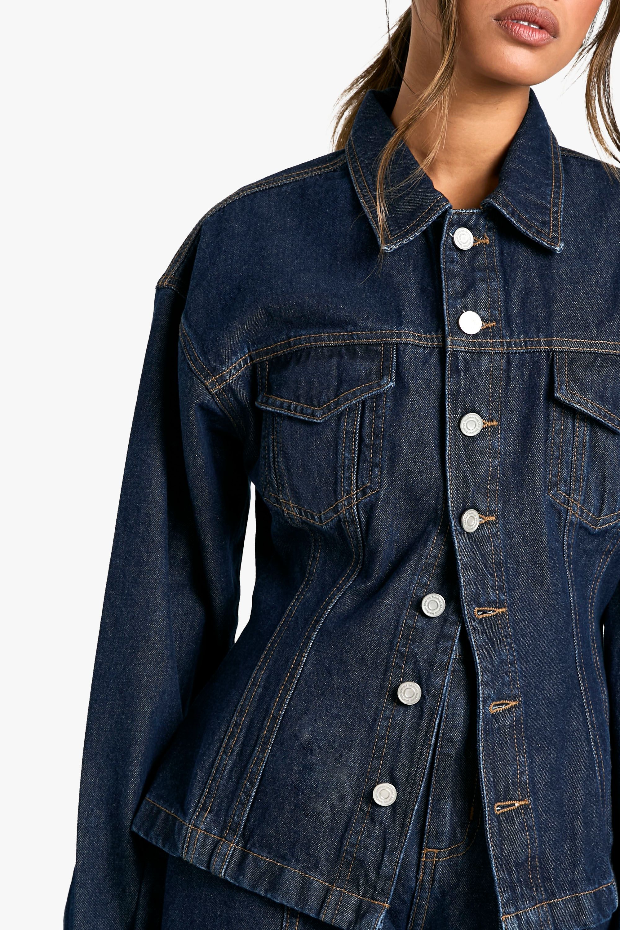 Cinched Waist Contrast Stitch Raw Indigo Denim Jacket