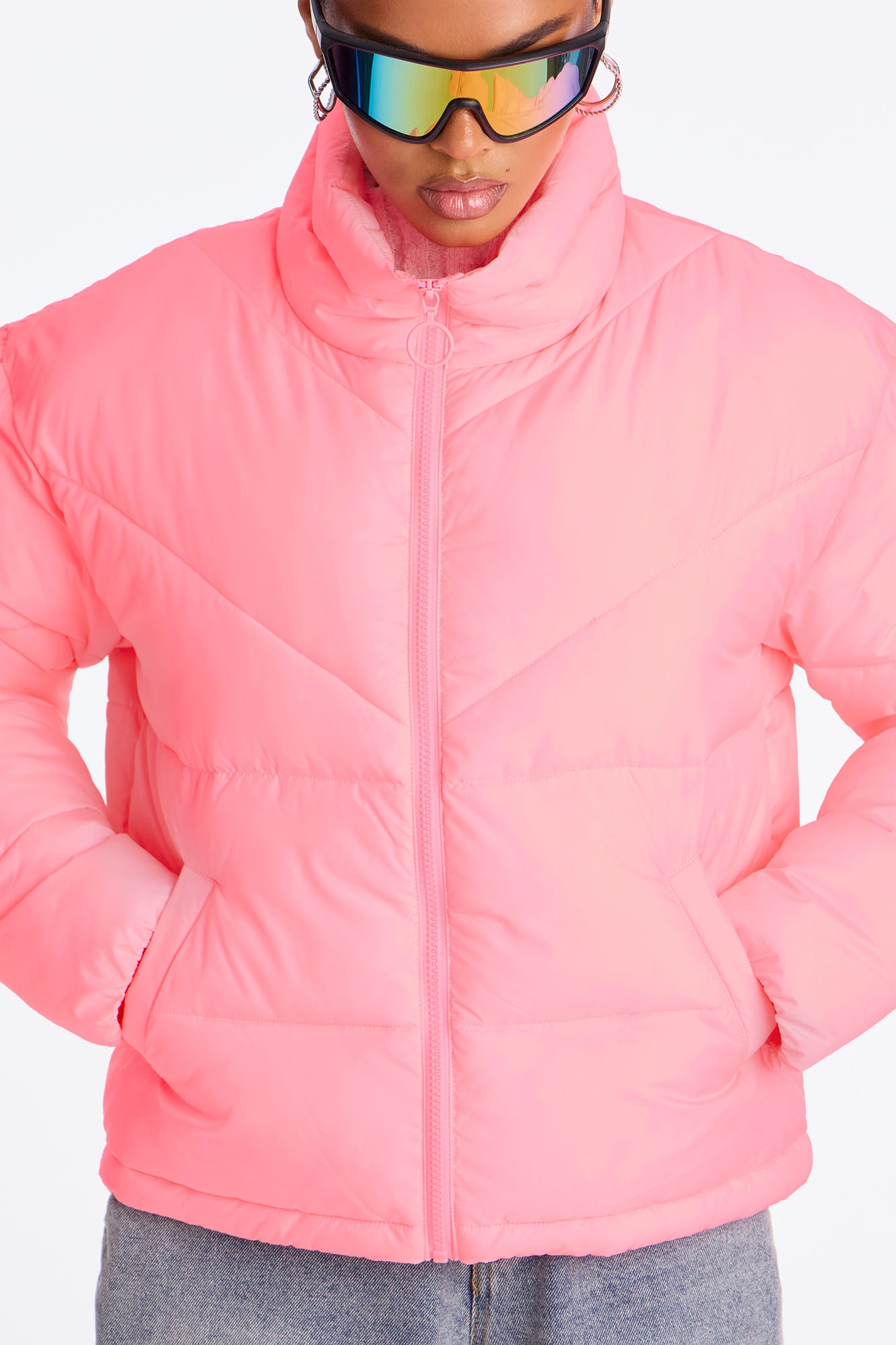 Available In Chartreuse, Navy, Pink And Red.Puffer JacketHigh CollarZip FrontPocketsDrawstring WaistShell/Lining/Filling: 100% PolyesterImported