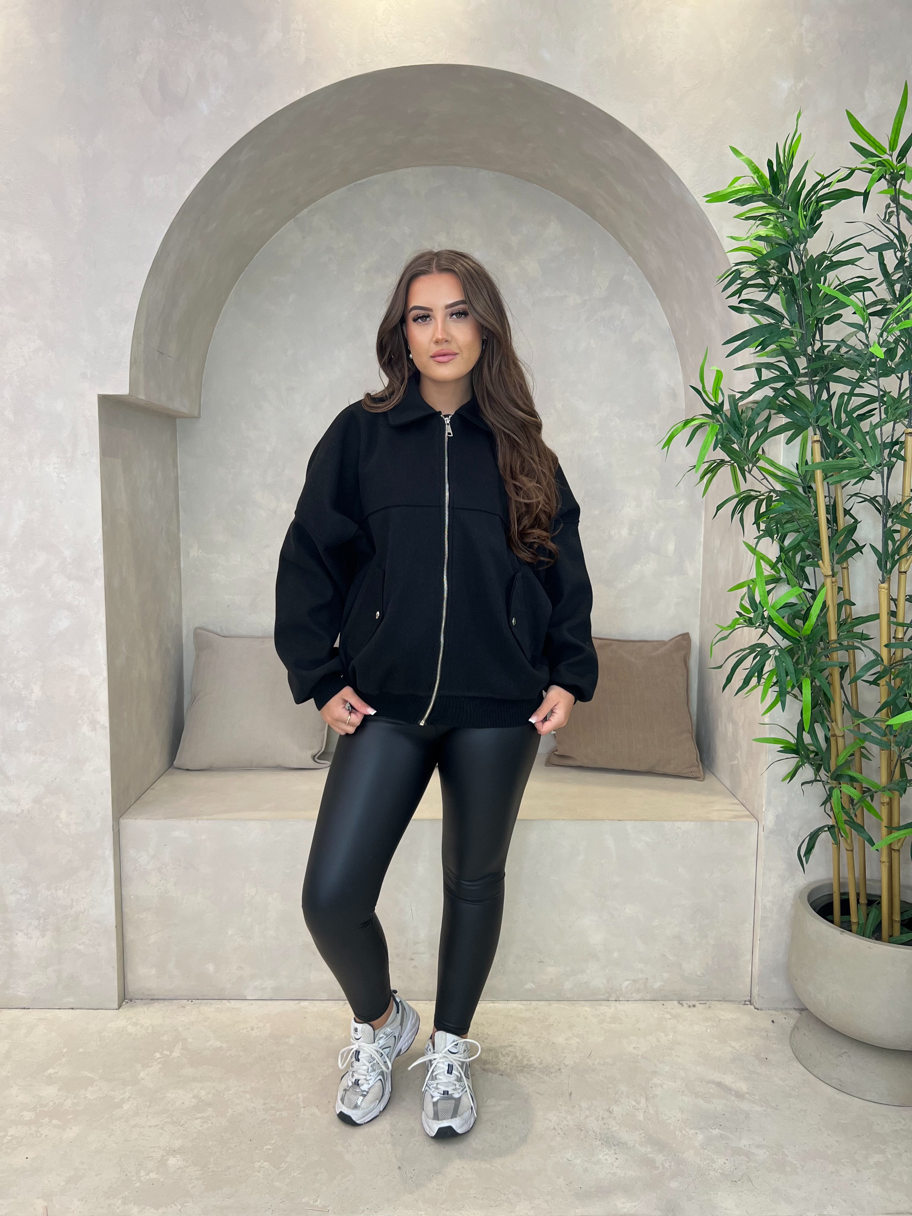 This collared zip-up jacket combines practical design with expert tailoring. Featuring elasticated cuffs and hem, it ensures a comfortable, secure fit while maintaining shape. The zip fastening offers easy wearability, complemented by two functional pockets for convenience. Long sleeves and seamed detailing enhance the jacket’s structured silhouette, making it a versatile and refined piece for layering in cooler weather.