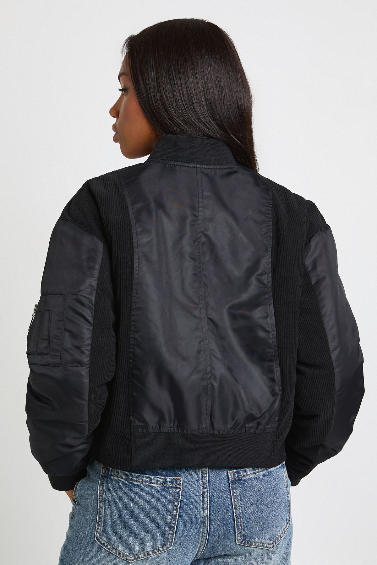 - Make a statement with this eye-catching Contrast Bomber Jacket from Boohoo. The oversized silhouette offers both comfort and on-trend appeal, perfect for layering over your favourite casual outfits. Style with a vibrant striped top and wide-leg jeans for a relaxed weekend look, or throw over a simple tee and leggings for quick coffee runs. The contrast panelling adds visual interest to this versatile piece, making it ideal for family gatherings or casual meet-ups with friends. Complete the look with trainers and a crossbody bag for an effortlessly stylish ensemble that works from day to night. This bomber jacket is the perfect addition to your casual wardrobe, offering both practicality and fashion-forward design in one essential piece.