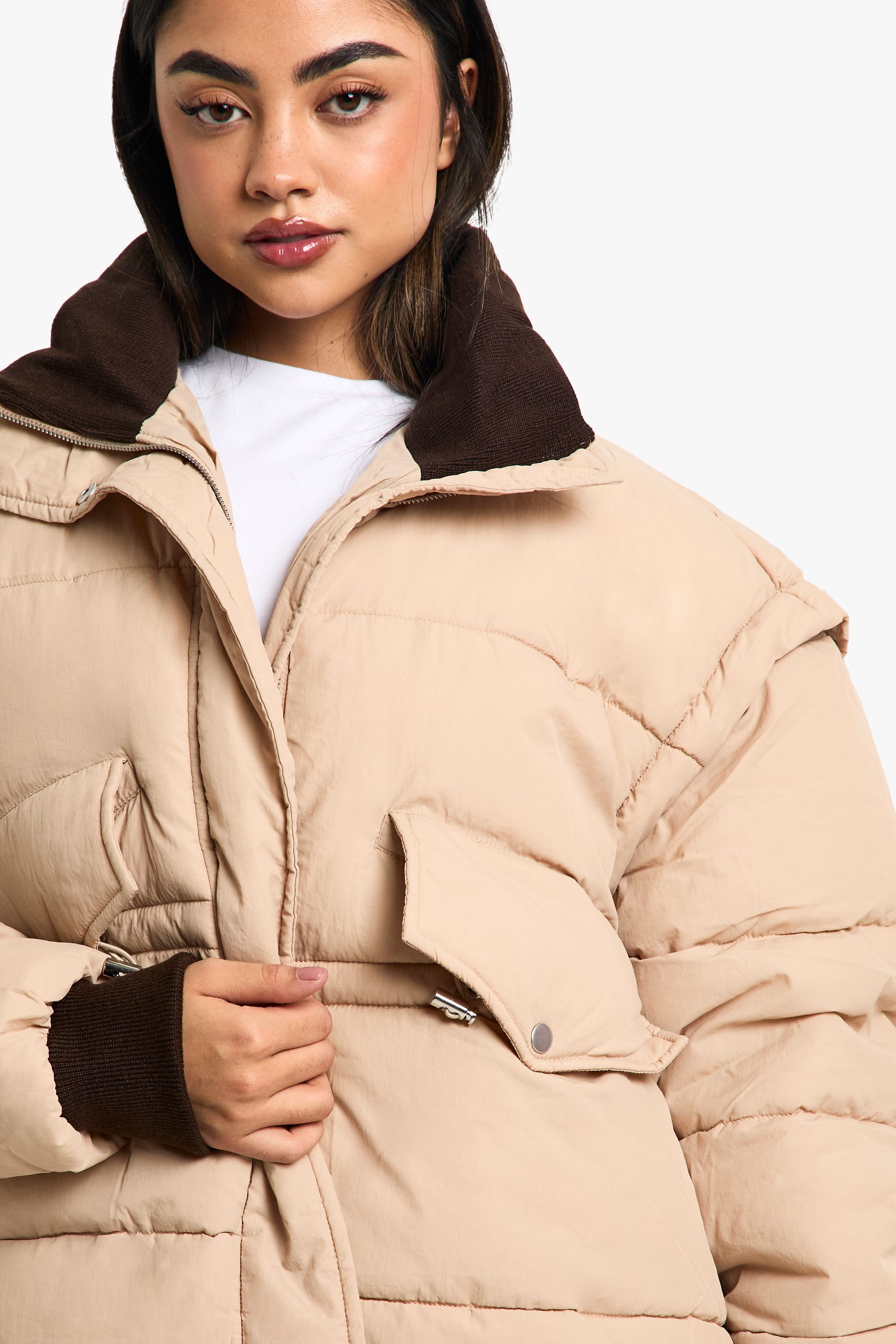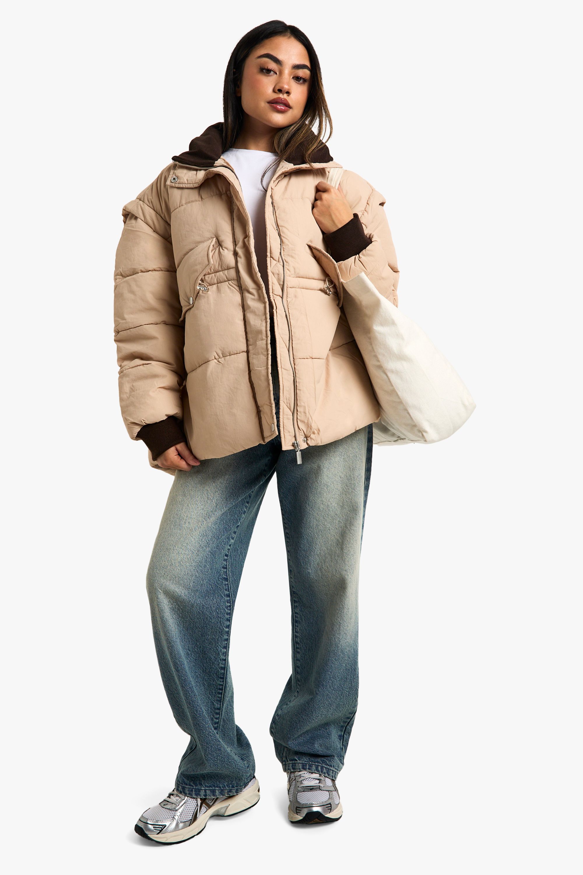 - Versatile neutral tone suitable for various outfits Embrace the chilly weather in style with this trendy oversized puffer jacket. The quilted design not only keeps you cosy but also adds a fashionable edge to your casual ensemble. Perfect for those laid-back weekend brunches or impromptu shopping trips with friends, this jacket effortlessly combines comfort with street-style chic. Layer it over a simple white tee and your favourite pair of jeans for an effortlessly cool look. The contrasting collar and cuffs create visual interest, while the roomy pockets are ideal for keeping your hands warm or stashing your essentials. Whether you're heading to a casual family gathering or meeting mates at the local caf茅, this versatile piece will keep you looking on-trend and feeling snug. Pair with trainers for a relaxed daytime look or dress it up with ankle boots for an evening out.