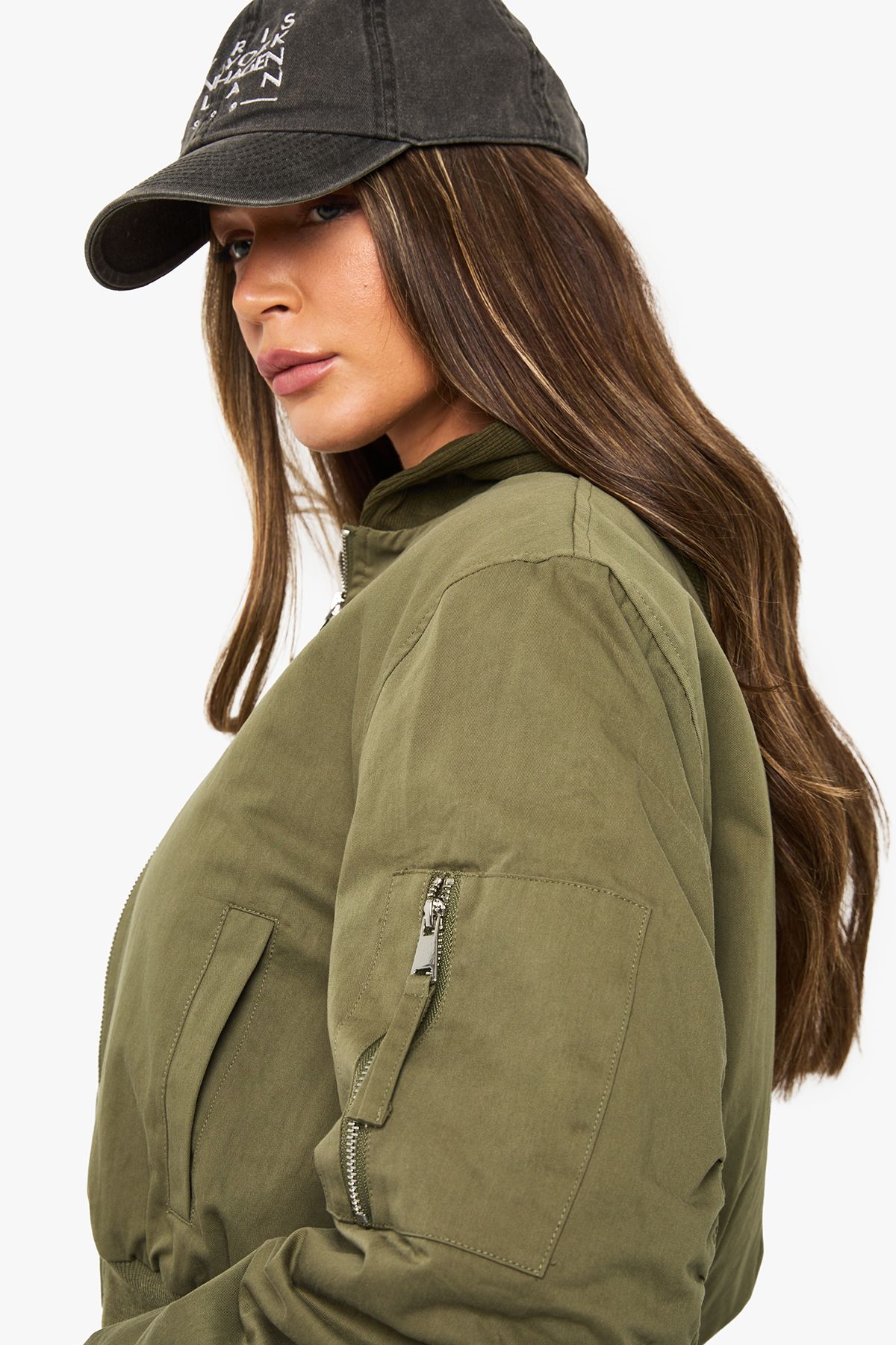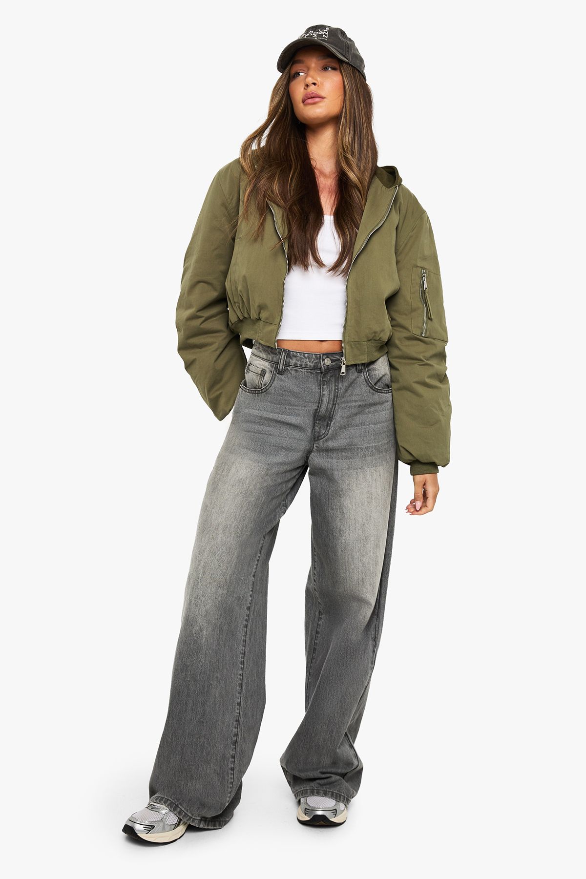 - Cropped bomber jacket with contrast hood for a contemporary urban look