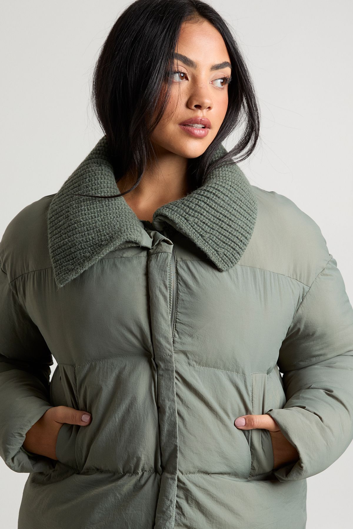 Contrast Rib Collar Puffer Jacket