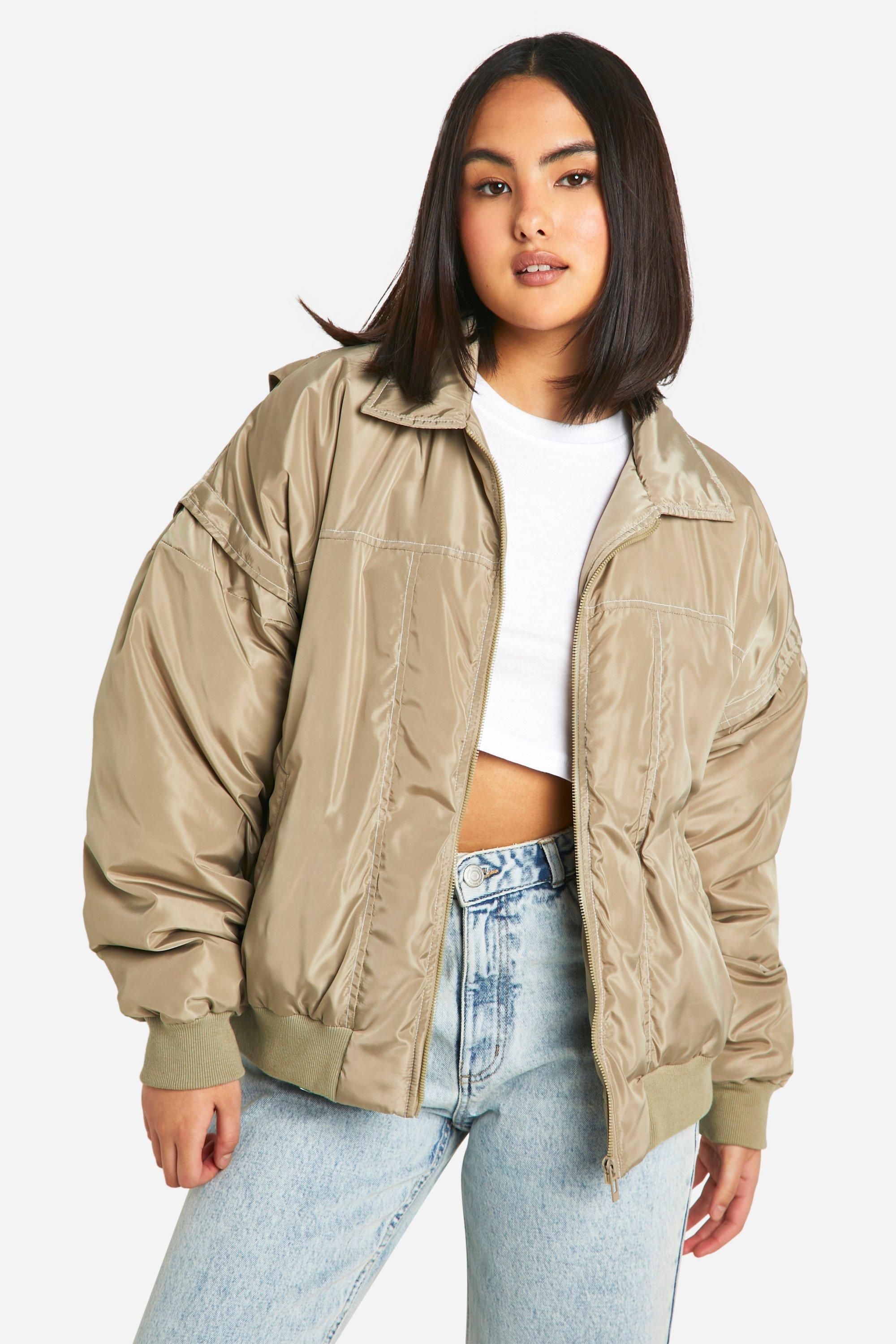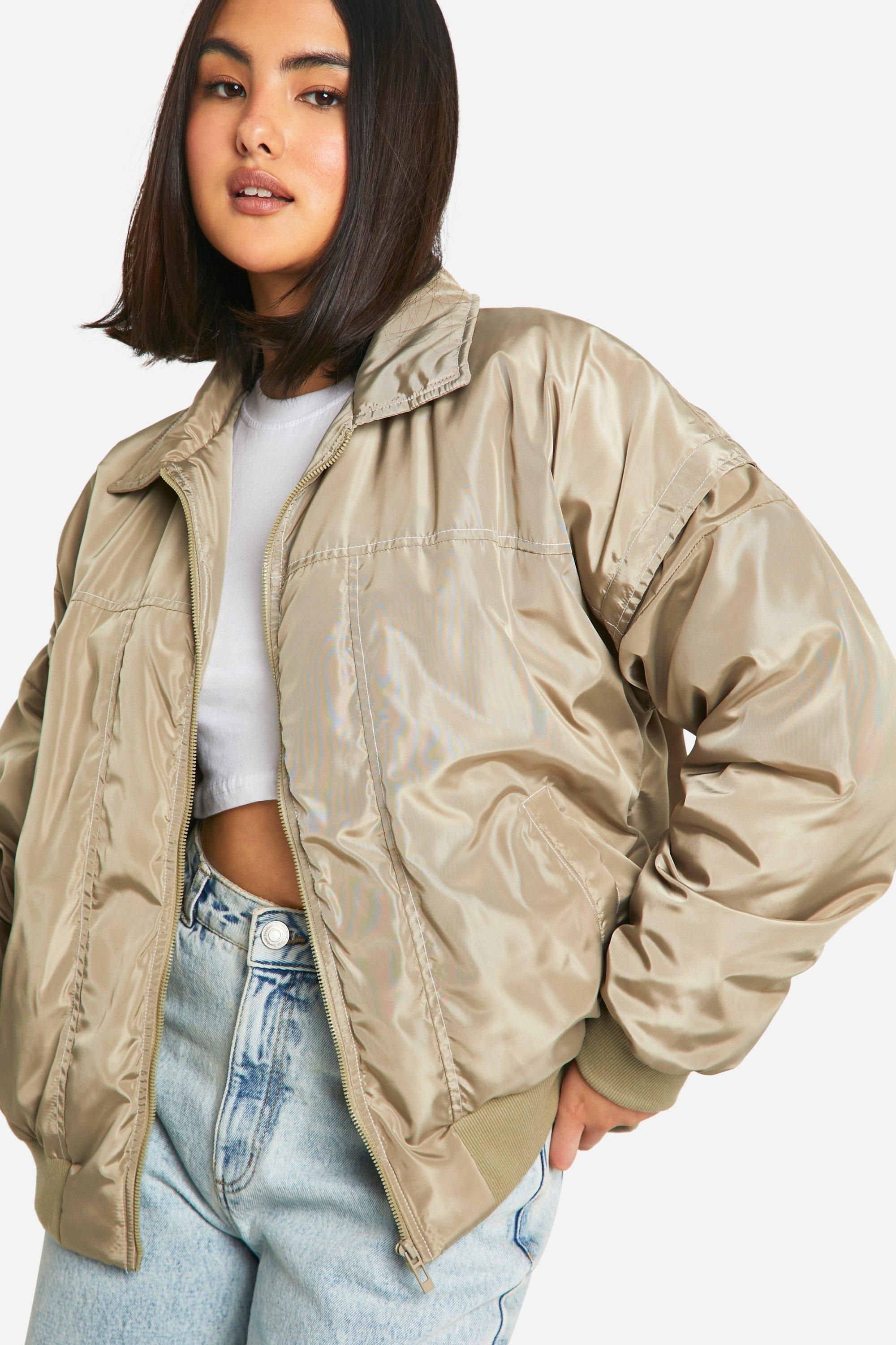 - Keep things casual but always on-trend with a piece of outerwear perfection, the bomber jacket. A light jacket featuring a gathered, ribbed waistband and matching cuffs, a bomber jacket is versatile, timeless, and the perfect way to edge up your casual wear. Wear your new women's bomber jacket with a shirt and stripe joggers for the hottest look of the moment: sports luxe, or layer a varsity jacket over a t shirt dress for a fresh new-season look.Style: Bomber JacketFabric: PolyesterSleeve Length: Long Sleeve