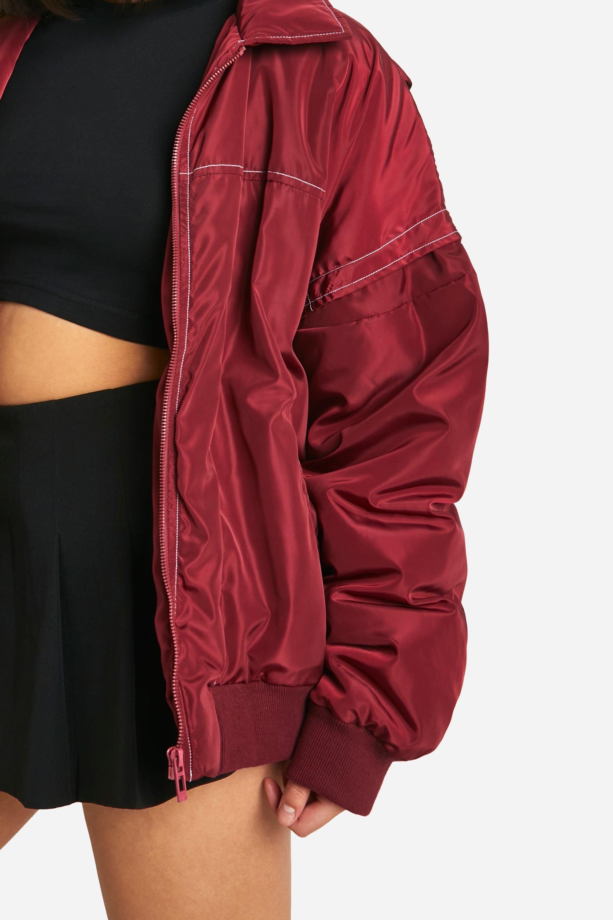 • Contrast Stitch Detail Oversized Bomber Jacket